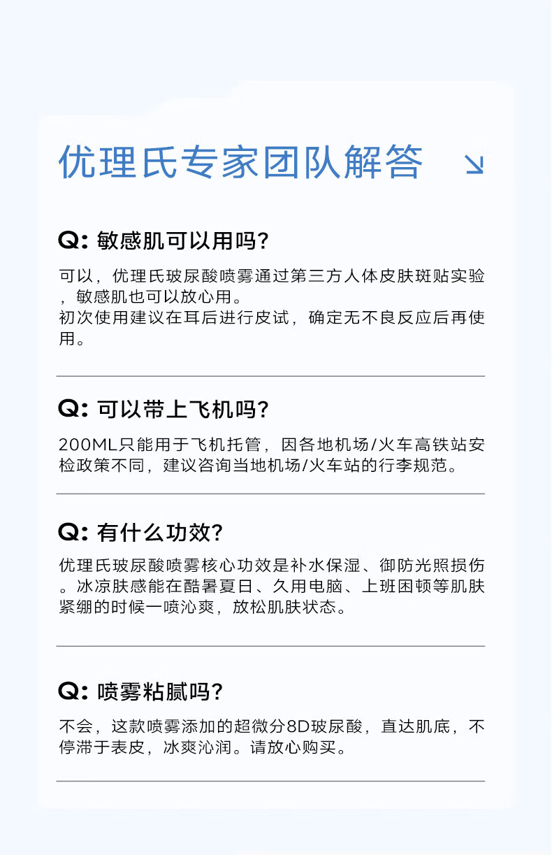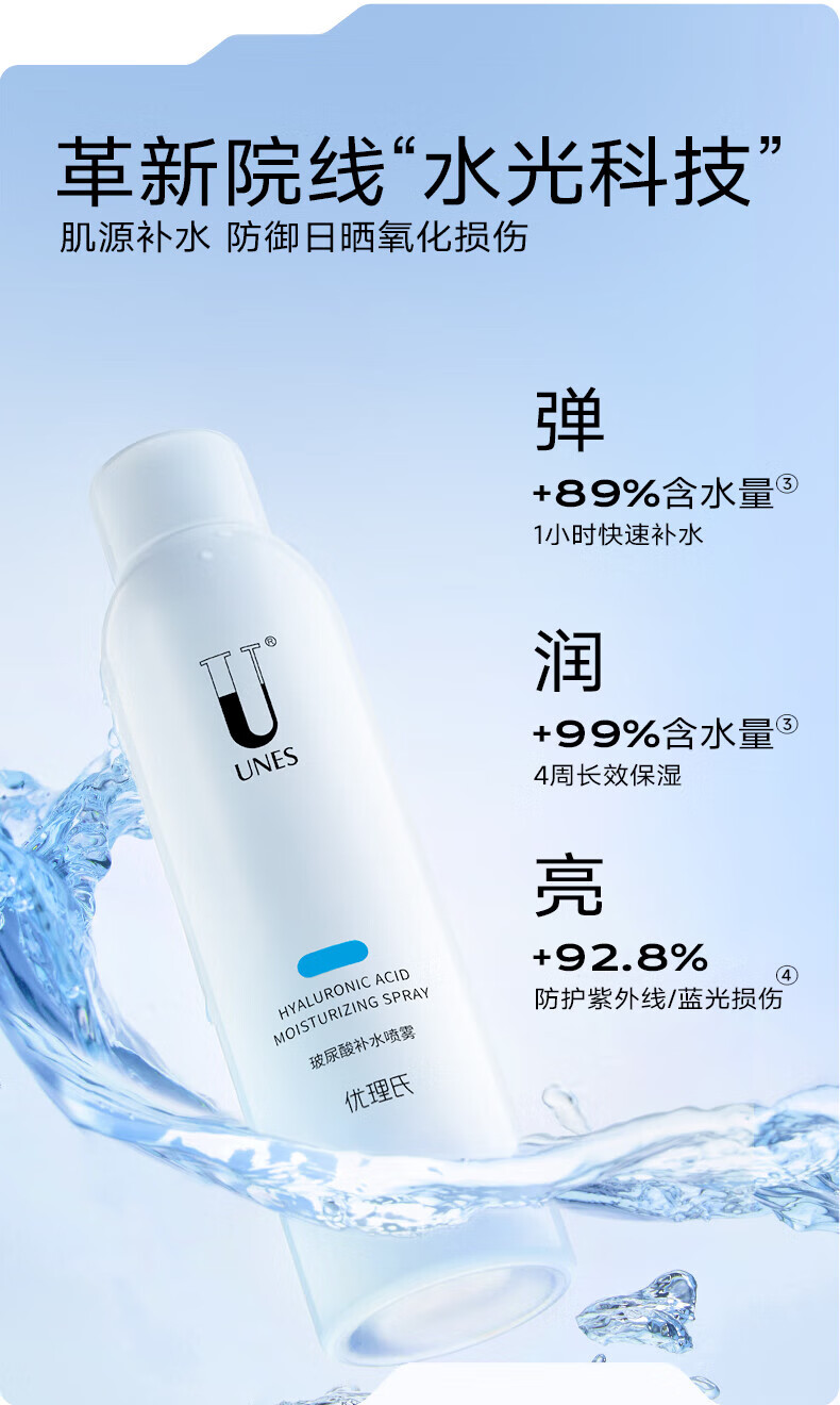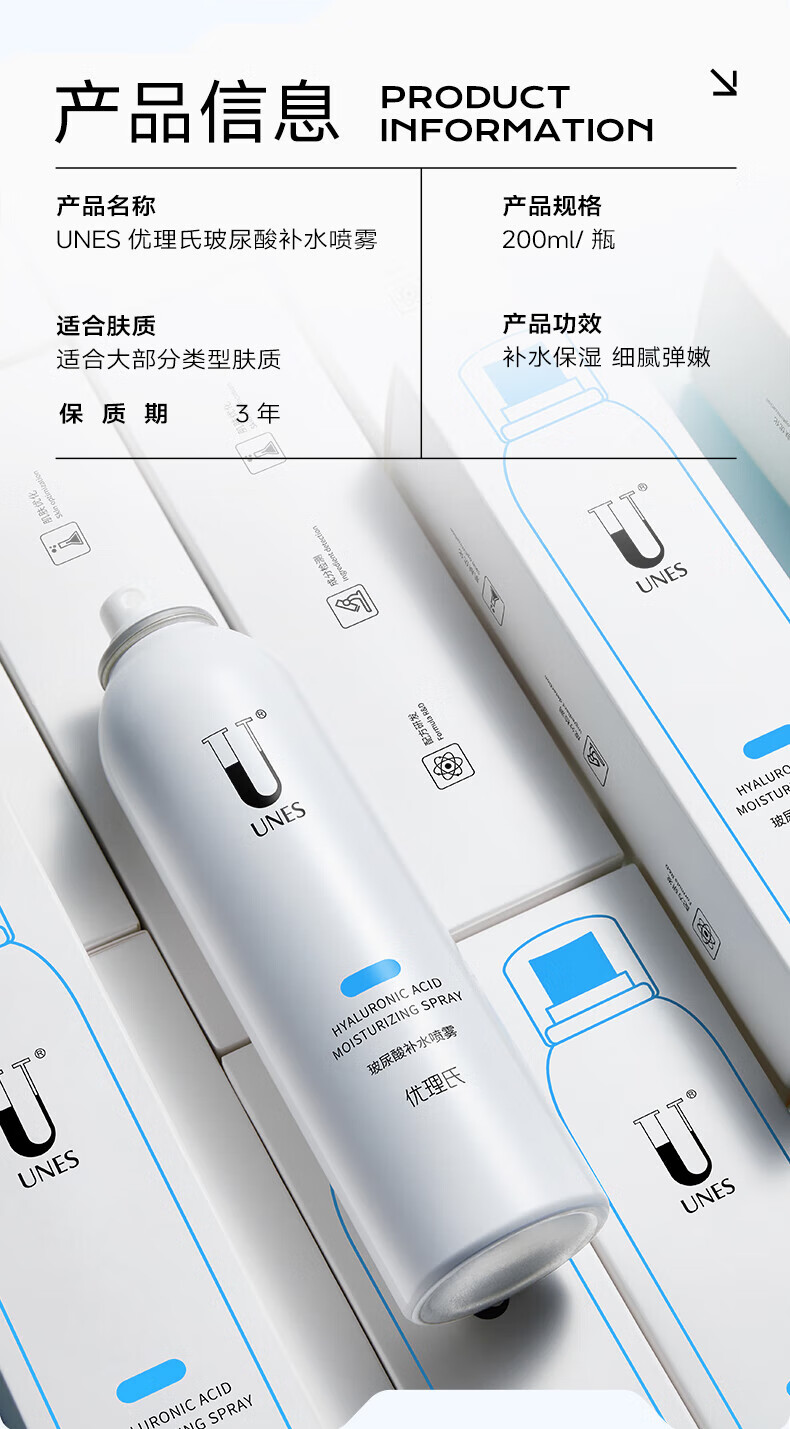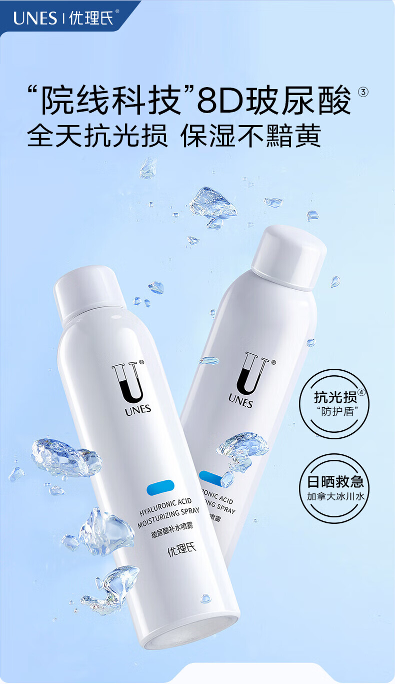 优理氏(UNES)玻尿酸原液补水喷雾男女补水保湿喷雾水妆前定妆水清透爽肤水 补水喷雾200ml*2瓶