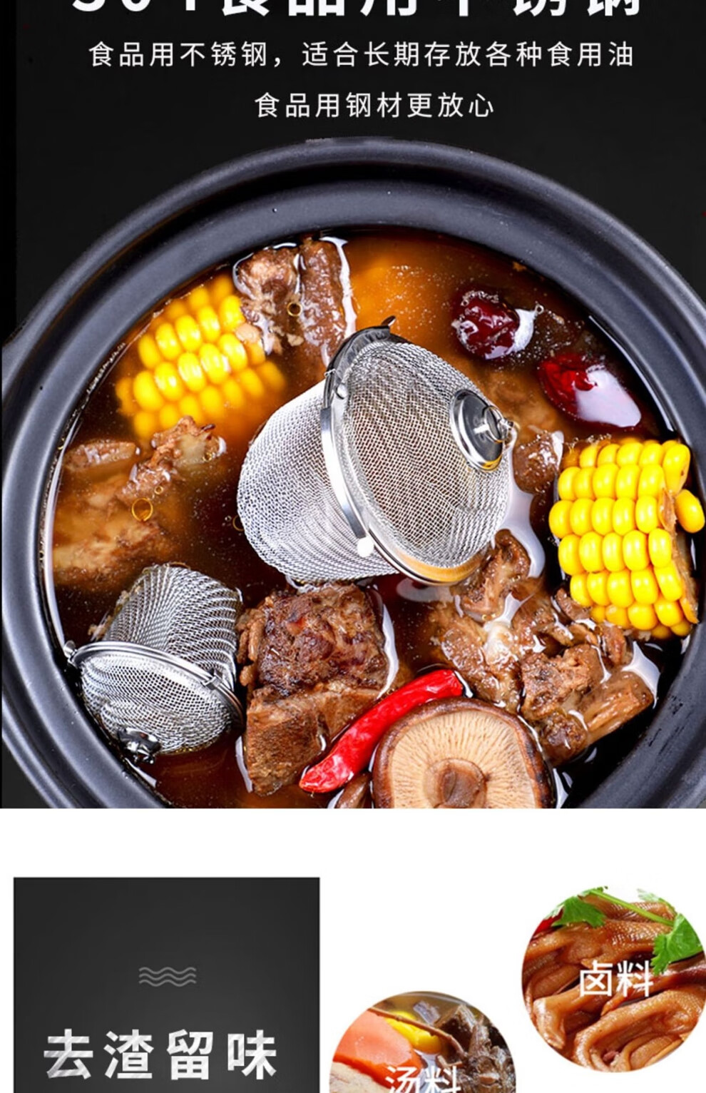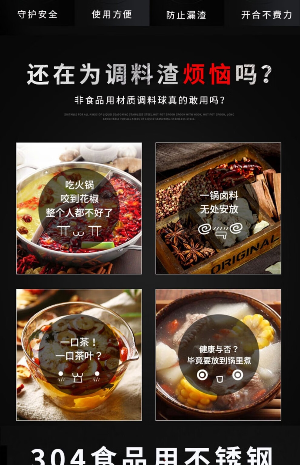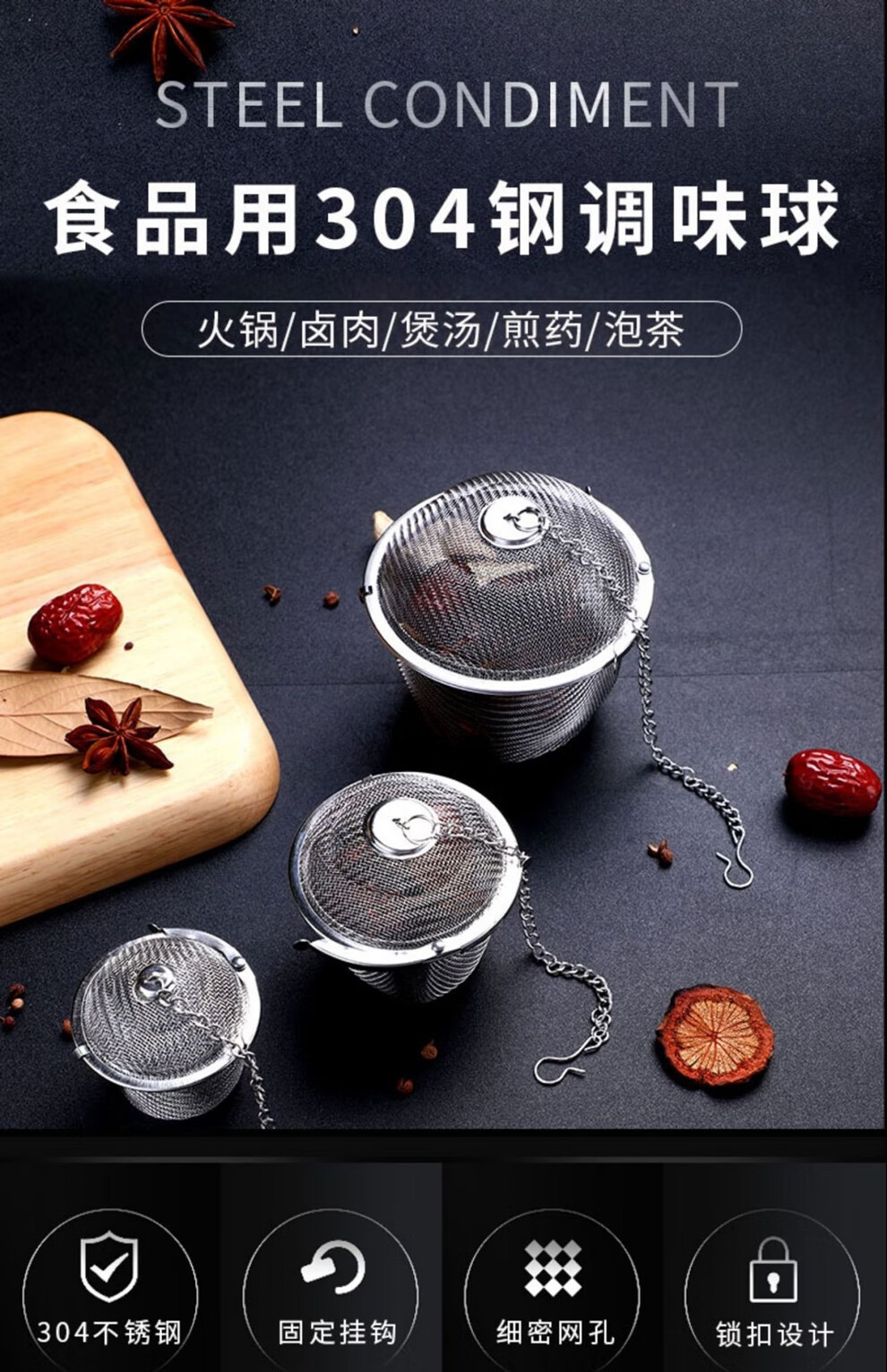 日禾盛唐304不锈钢调料球家用卤料炖肉料煲汤调味盒过滤网茶叶泡球包卤肉 升级款调味球【4.5*5.1cm】中号