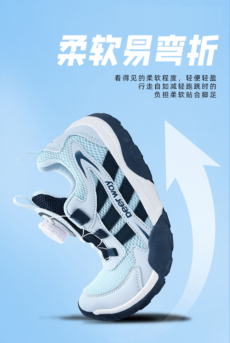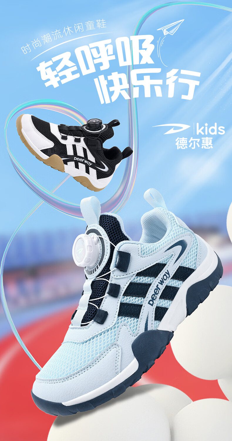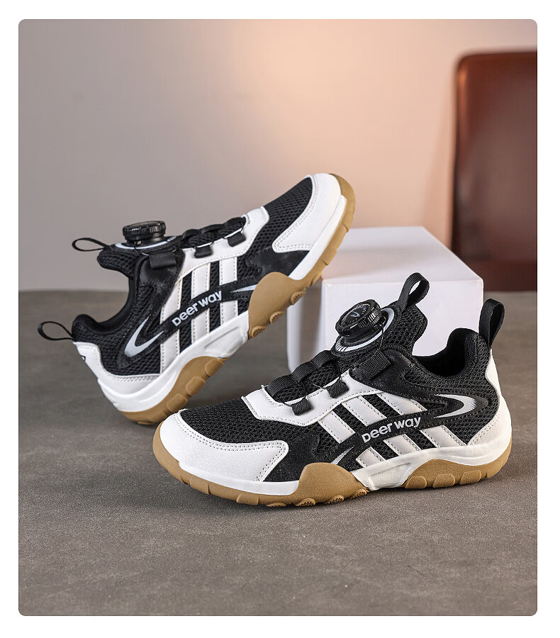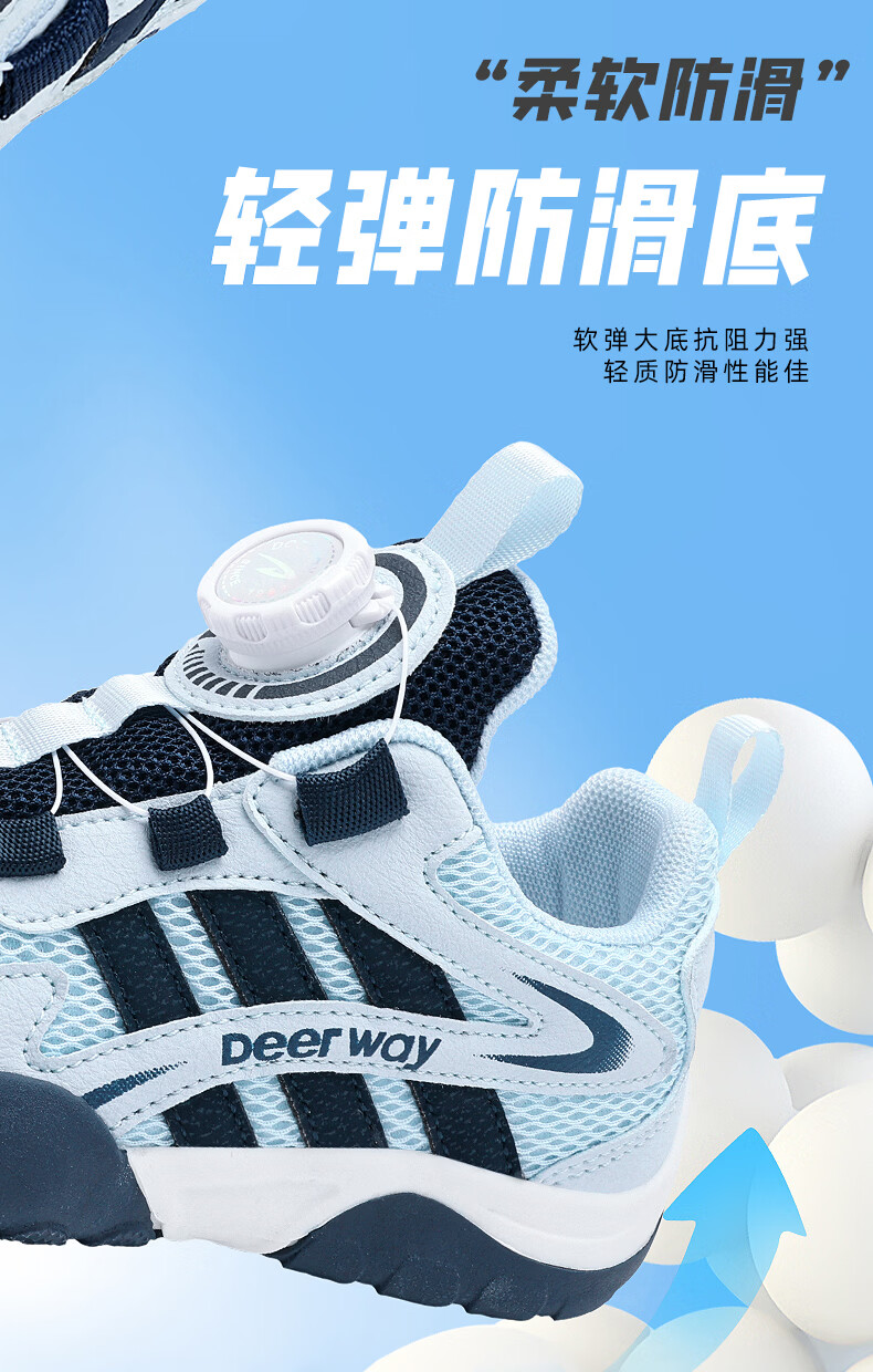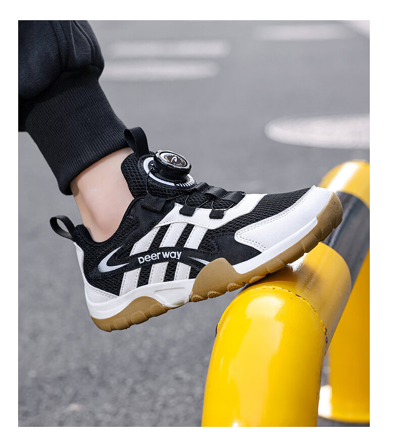 德尔惠童鞋春夏季男童运动鞋网面透气旋转扣女童儿童百搭休闲户外跑步鞋 D2603黑白色【春秋双网】 28 内长17.8/脚16.8