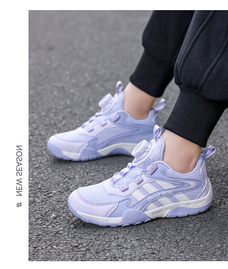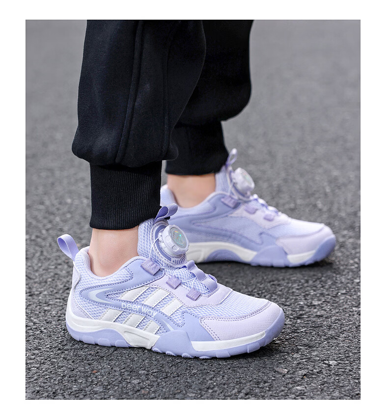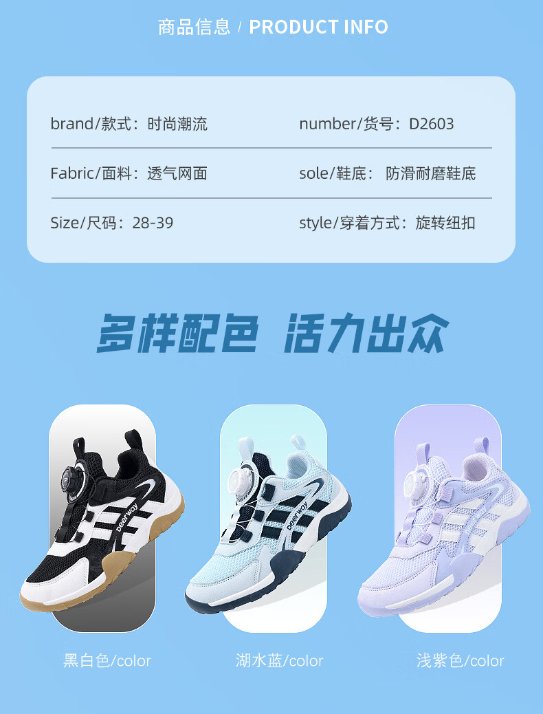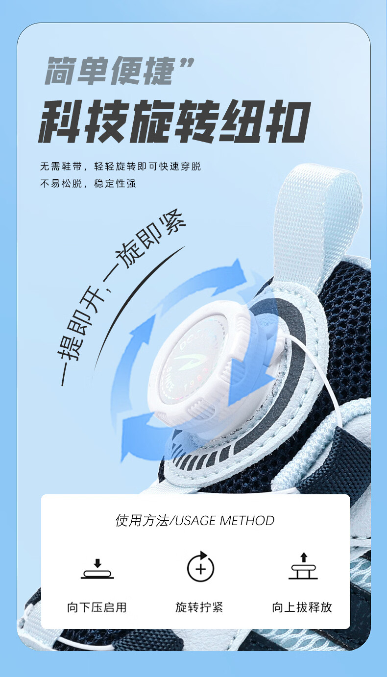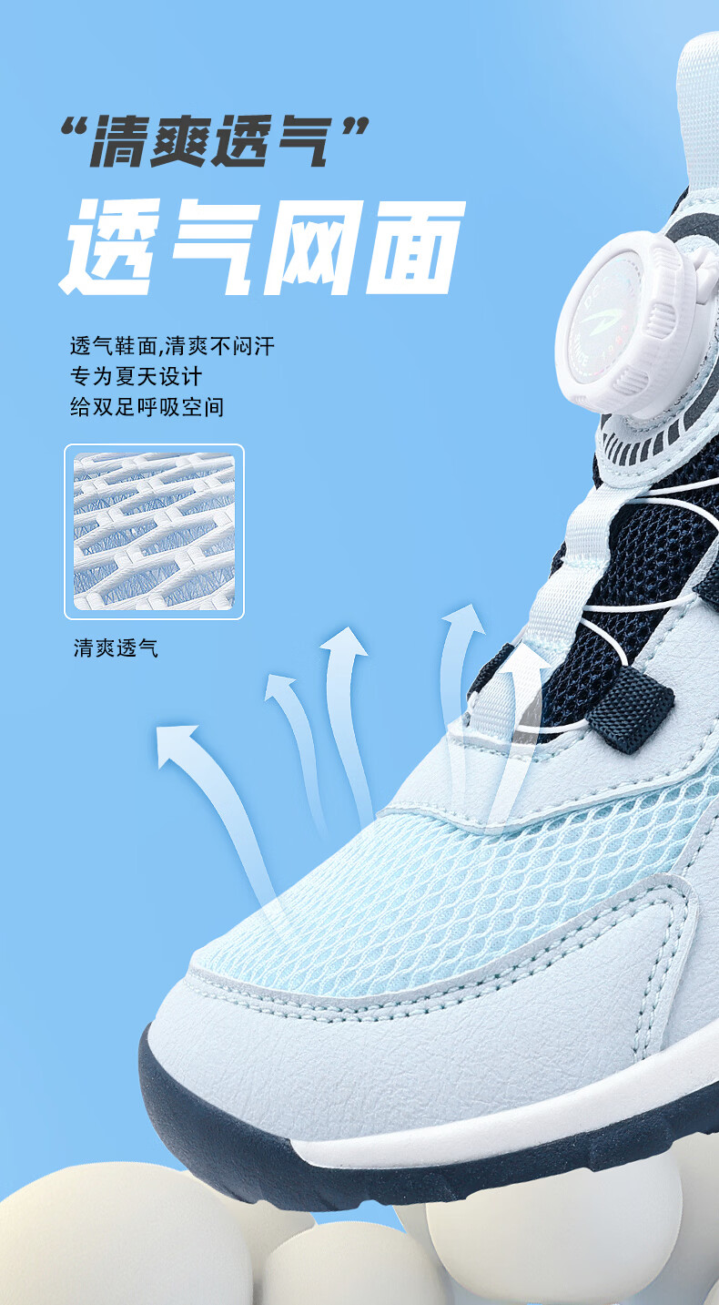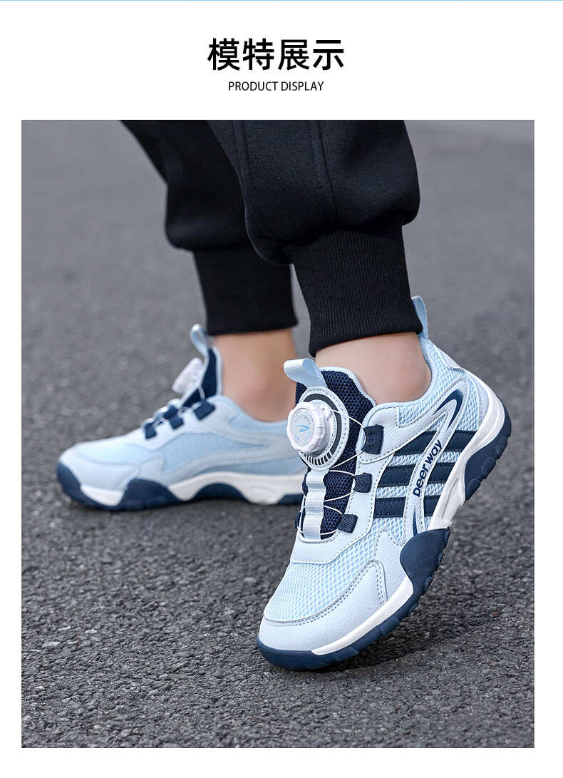 德尔惠童鞋春夏季男童运动鞋网面透气旋转扣女童儿童百搭休闲户外跑步鞋 D2603黑白色【春秋双网】 28 内长17.8/脚16.8
