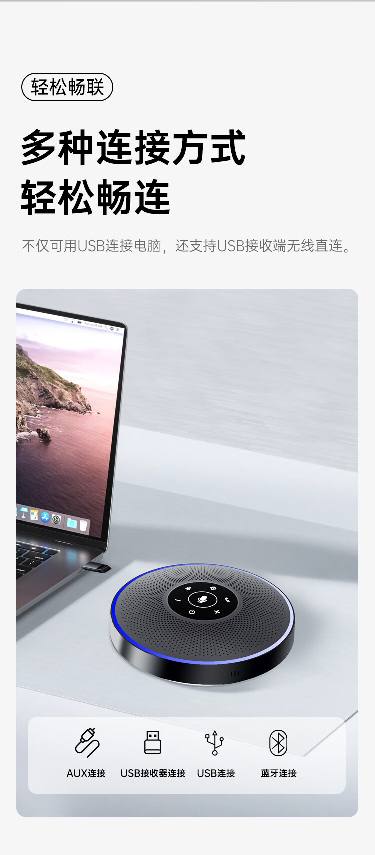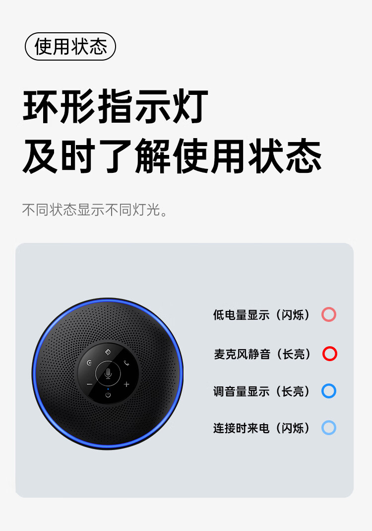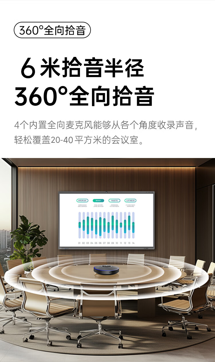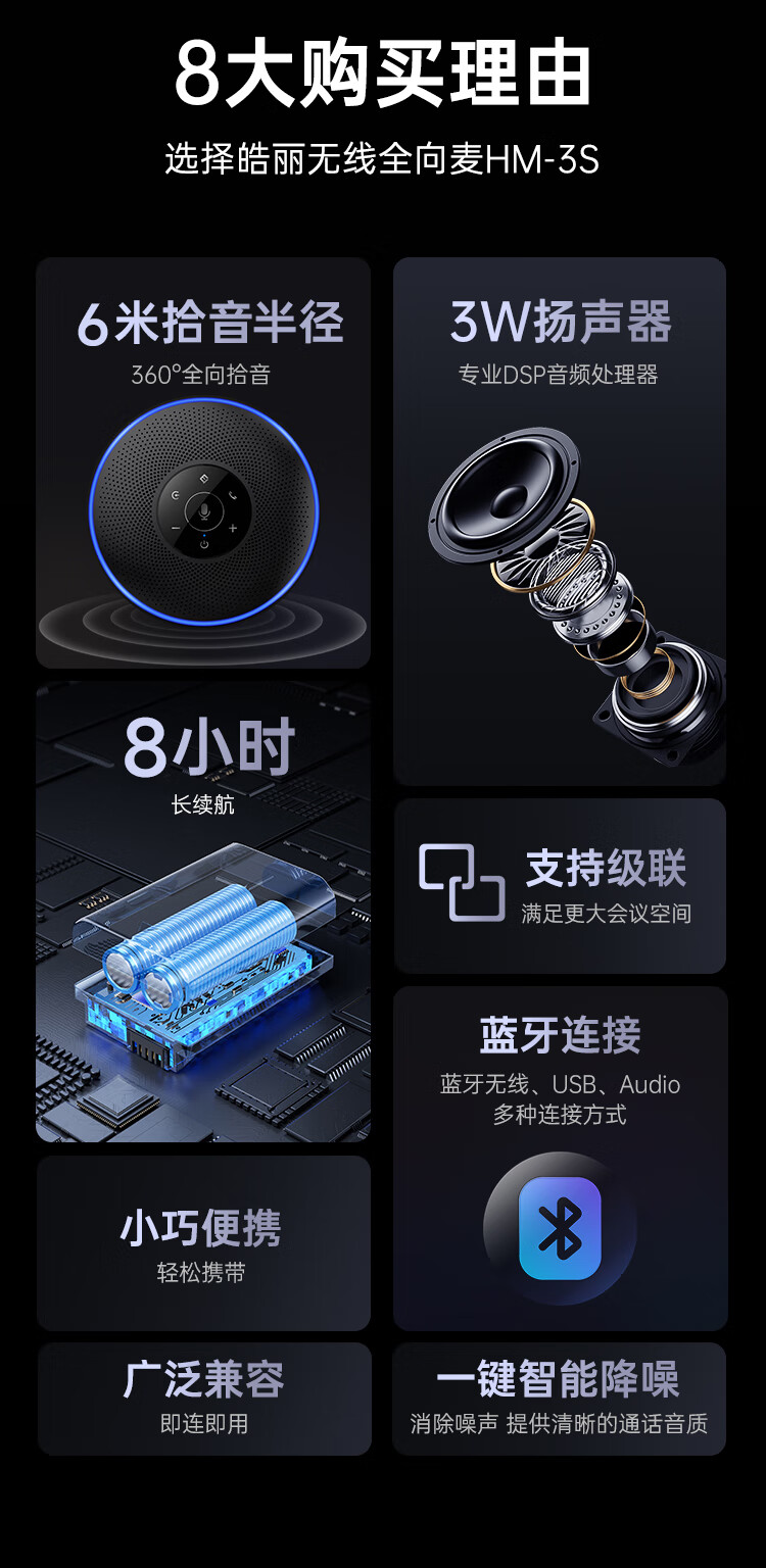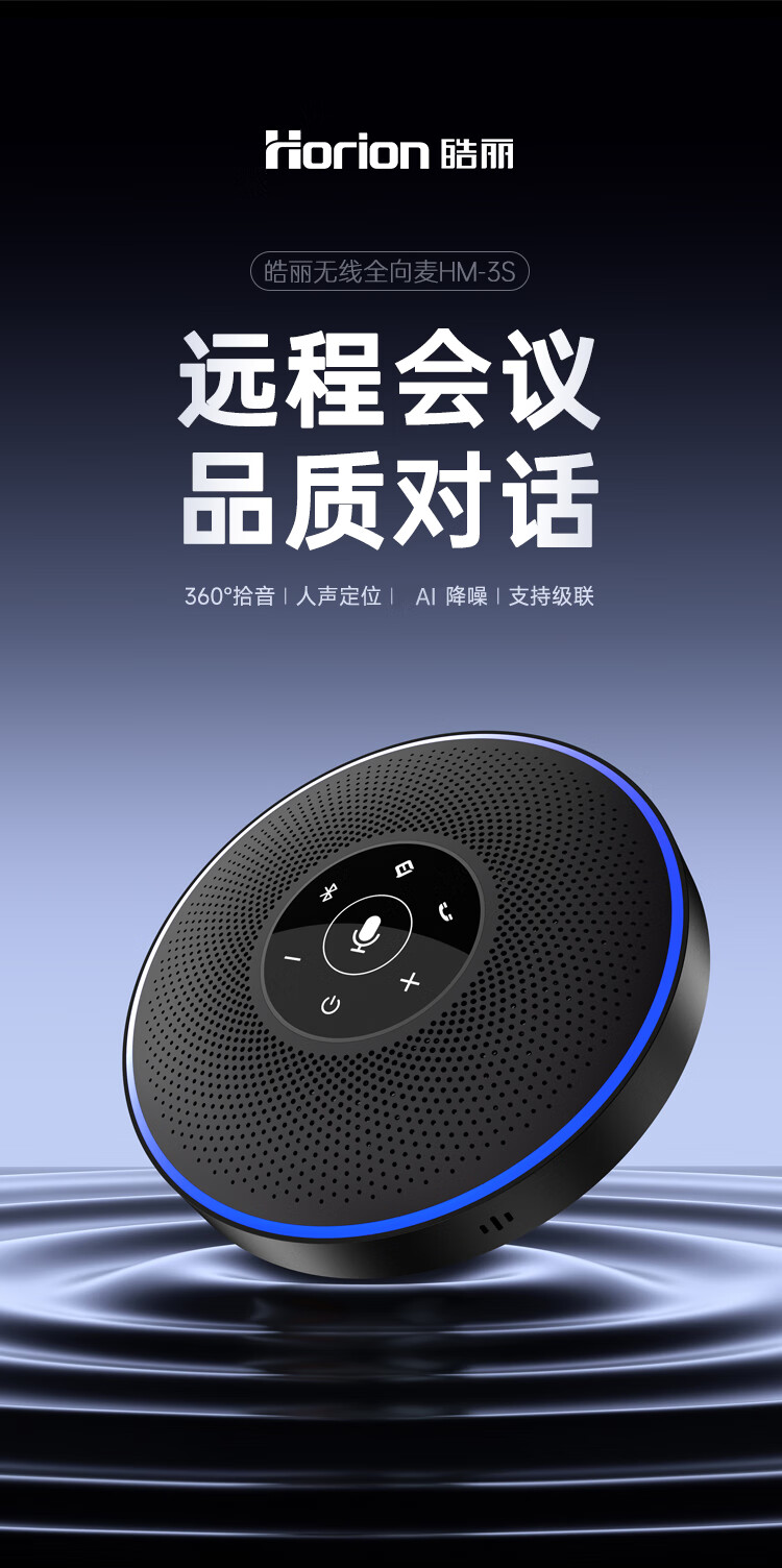 皓丽会议全向麦克风视频会议专用桌面视频会议麦克风蓝牙音响一体 HM-5E(10米拾音直径 2台无线级联)