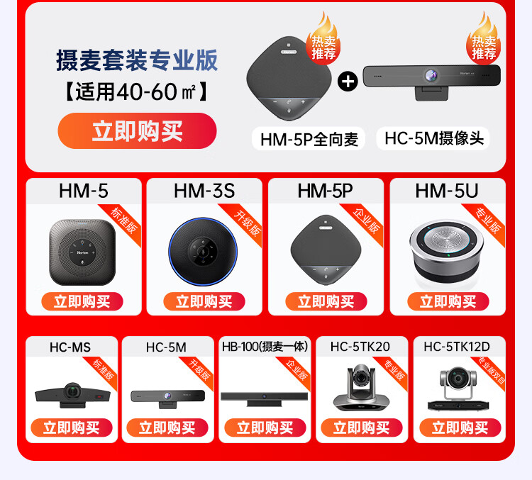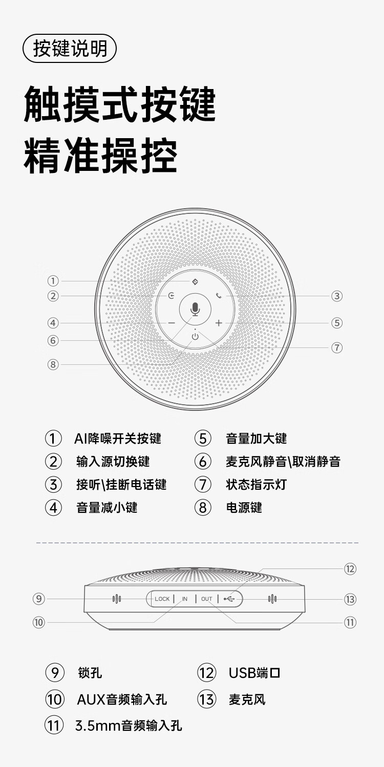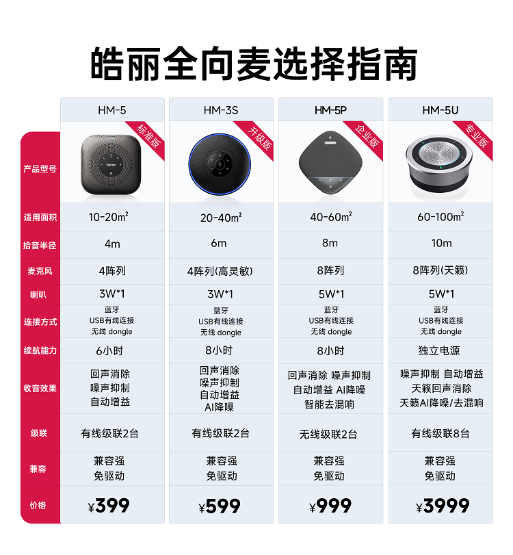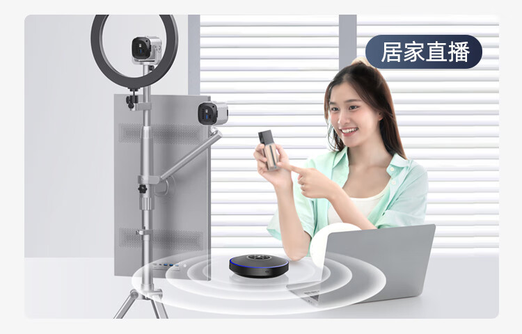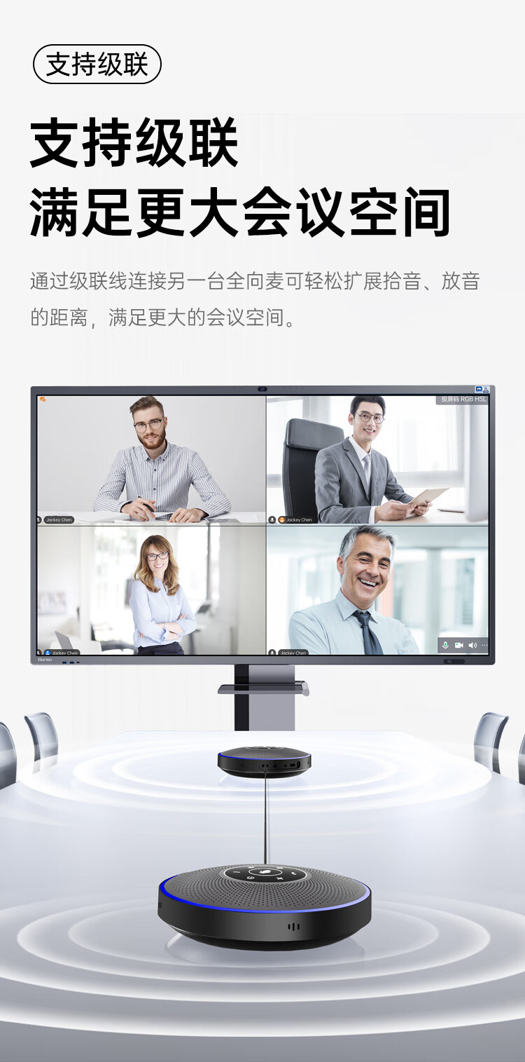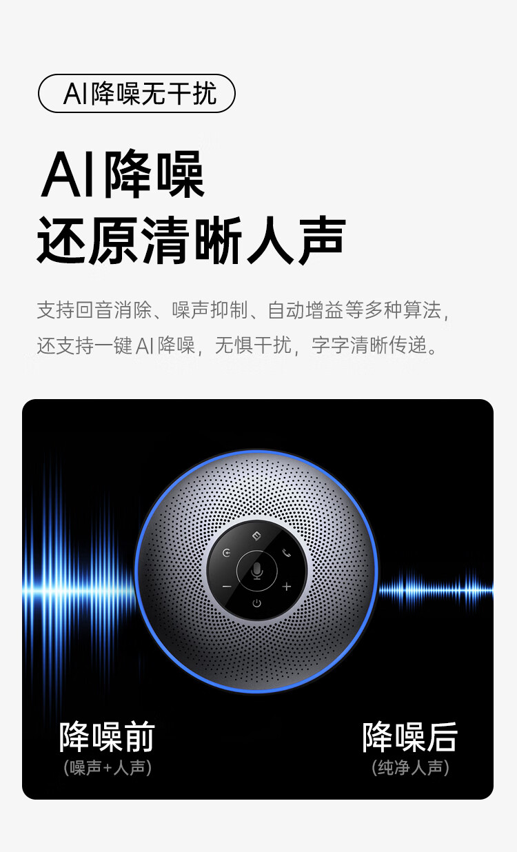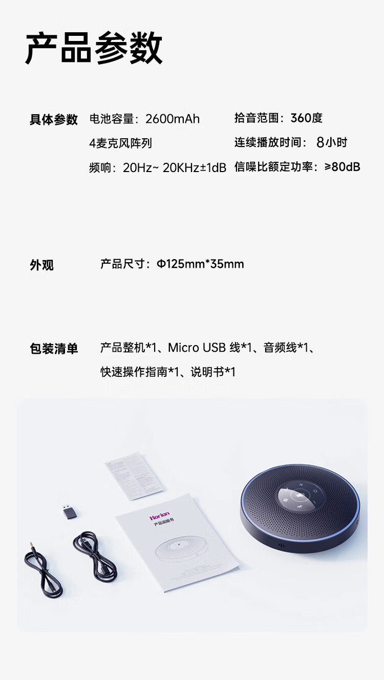 皓丽会议全向麦克风视频会议专用桌面视频会议麦克风蓝牙音响一体 HM-5E(10米拾音直径 2台无线级联)