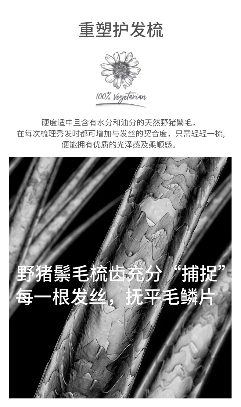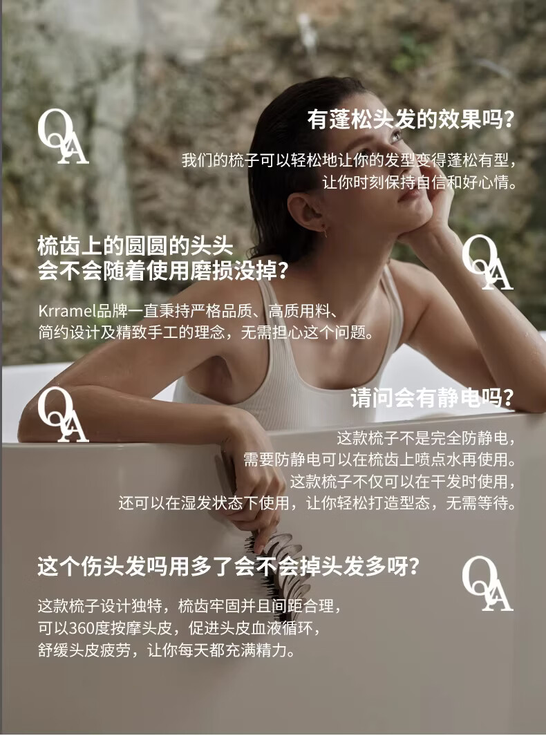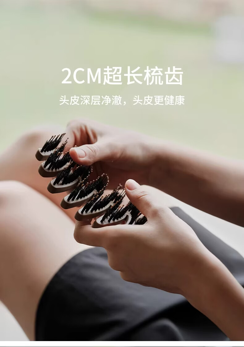 KRRAMEL生日礼物女士梳子防静电进口醋酸扁平发夹盘发实用送妈妈送闺蜜 中号[松塔梳]-原木色+椭圆[醋酸发夹】-云岫灰