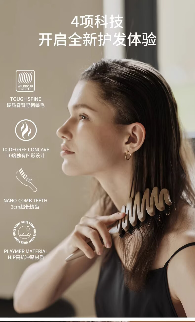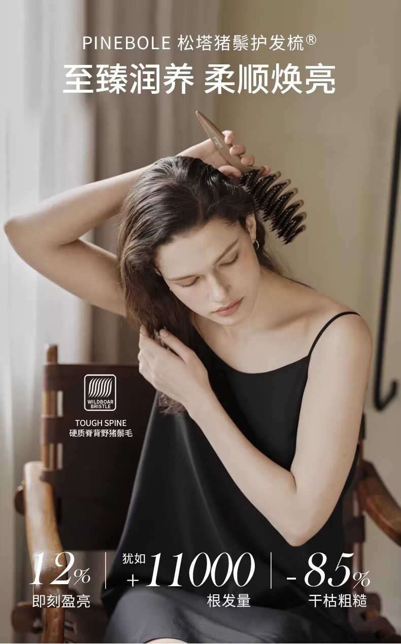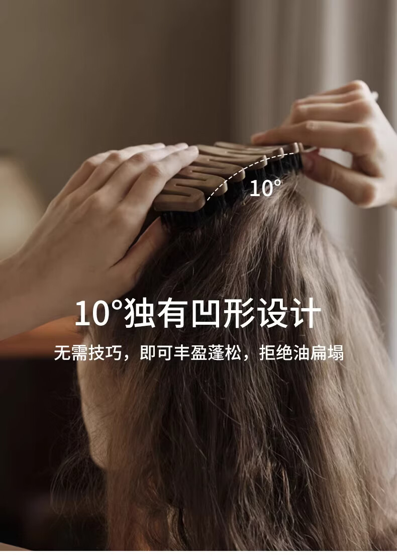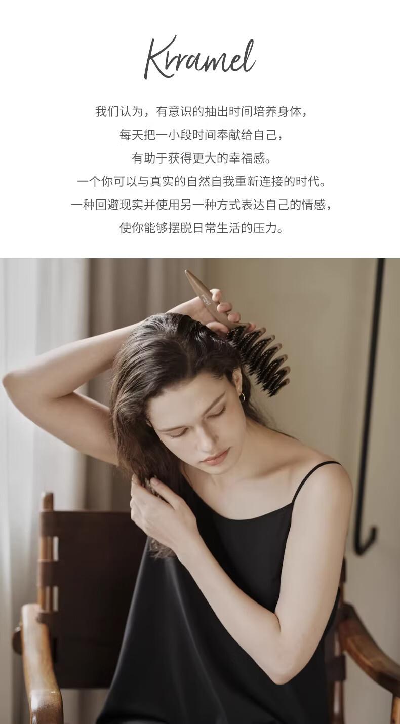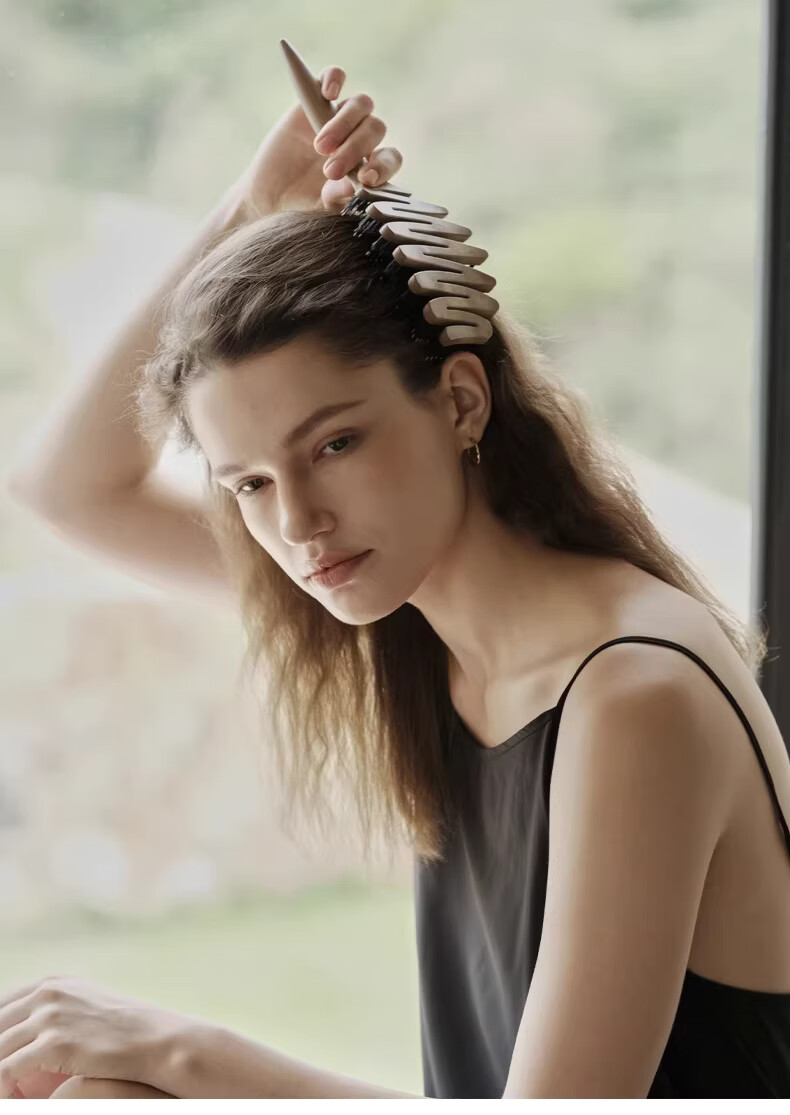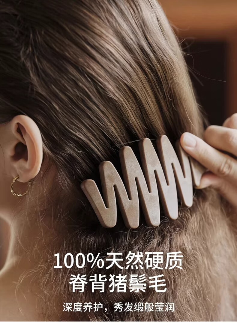 KRRAMEL生日礼物士梳子防静电进口醋酸扁平发夹盘发实用送妈妈 中号【松塔梳】-原木色+椭圆【醋酸发夹】-云岫灰