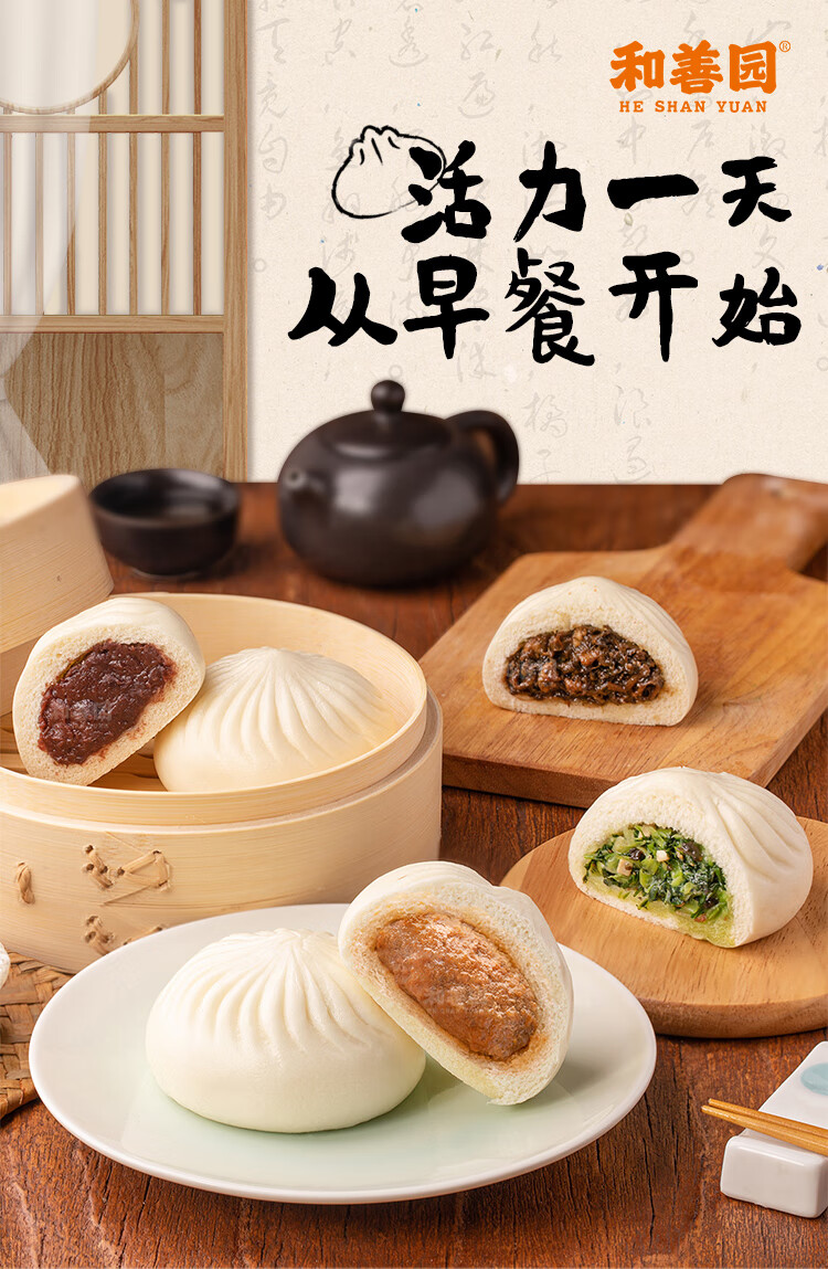 和善园【58.9元任选6件】粉丝包肉包馒头花卷早饭包子懒人食品儿童生鲜 招牌鲜肉包300g(6只)