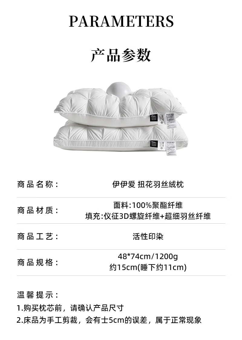 伊伊爱助眠深睡枕 护颈枕羽丝绒酒店枕头枕芯 释压颈椎枕 枕头芯 【基础款】扭花枕 单只