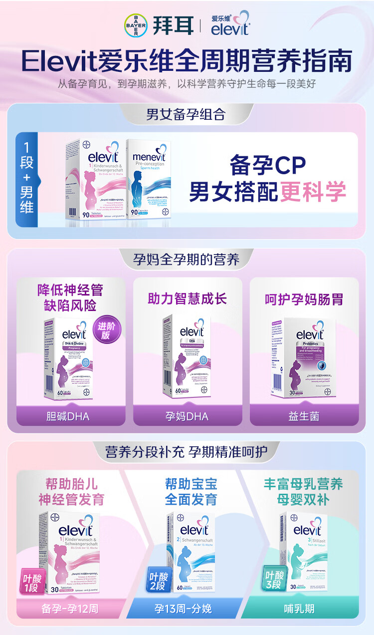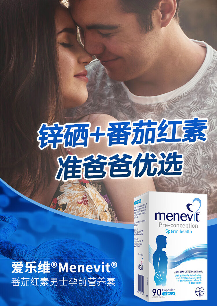 Elevit爱乐维叶酸男士 复合维生素90粒 备孕锌硒片番茄红素补充男性活力