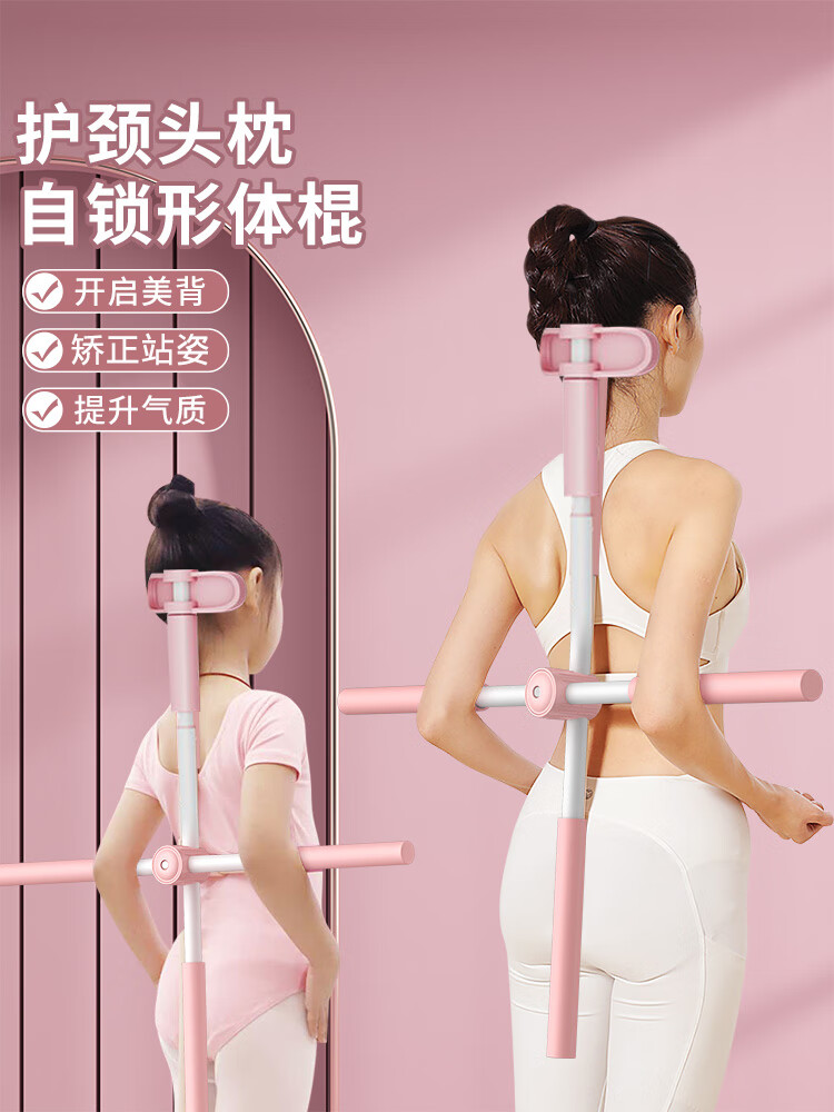 奥克欧(AoKeou)形体棍瑜伽棍开背棍站姿矫正十字架成人儿童体态训练器材 【2只装粉+绿】其他颜色组合请备注|防滑泡棉|全家可用