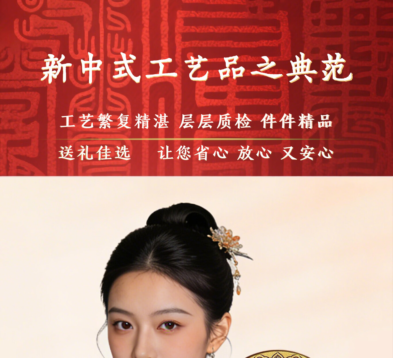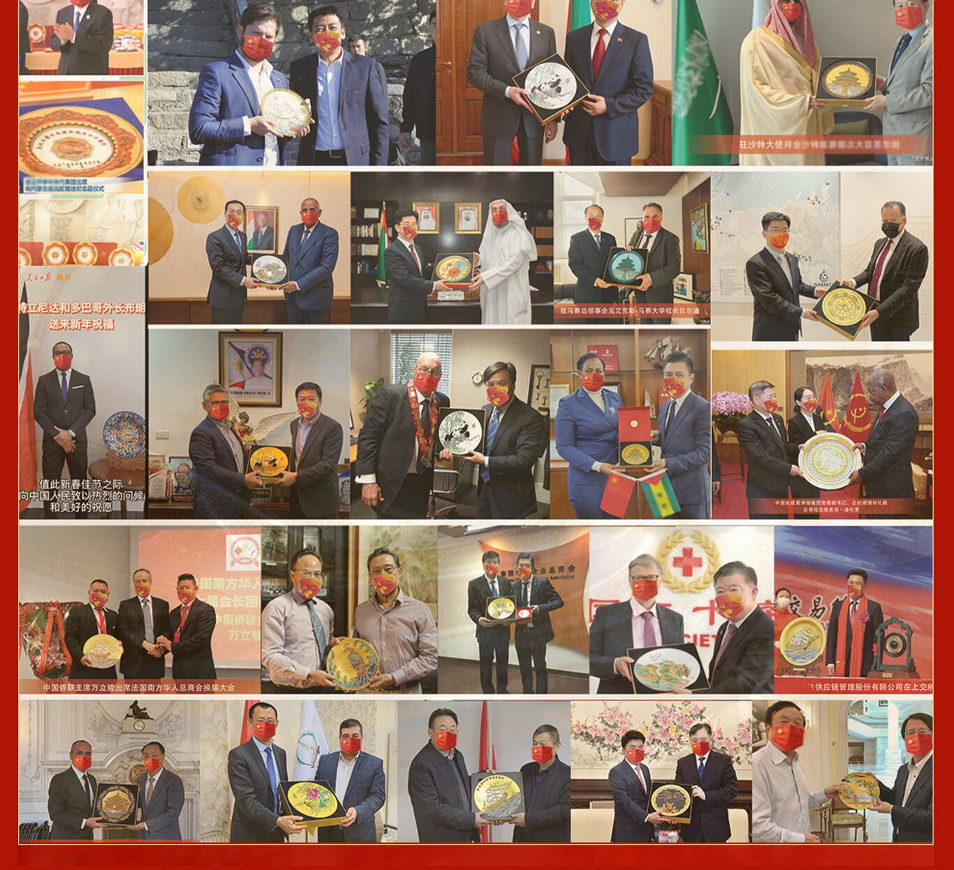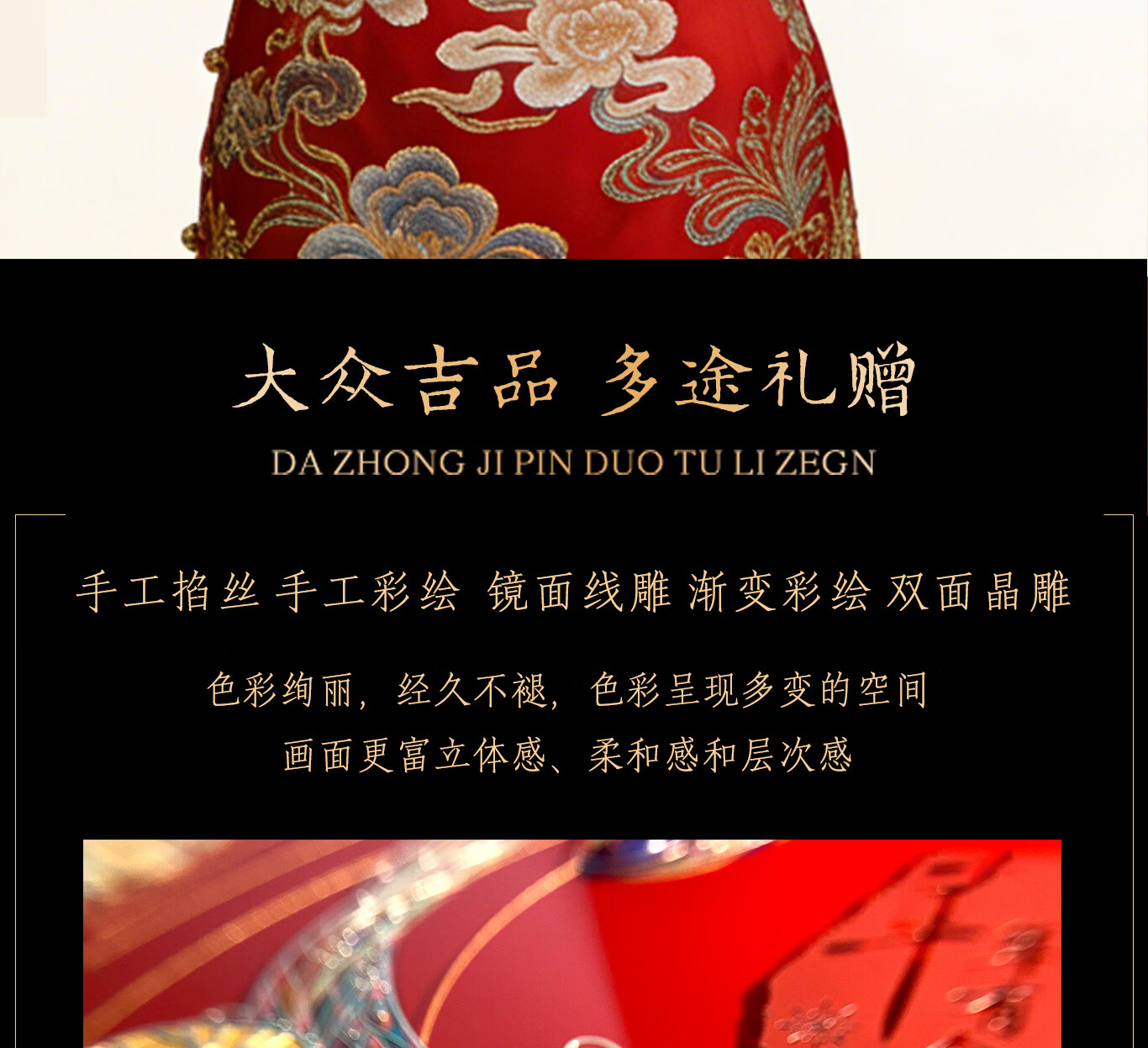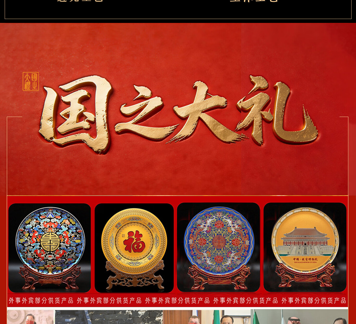雅琅晶国宝熊猫摆件中国特色桌面工艺创意礼物办公室玄关装饰伴手纪念品 国宝熊猫晶雕手绘盘-金Φ17.5cm