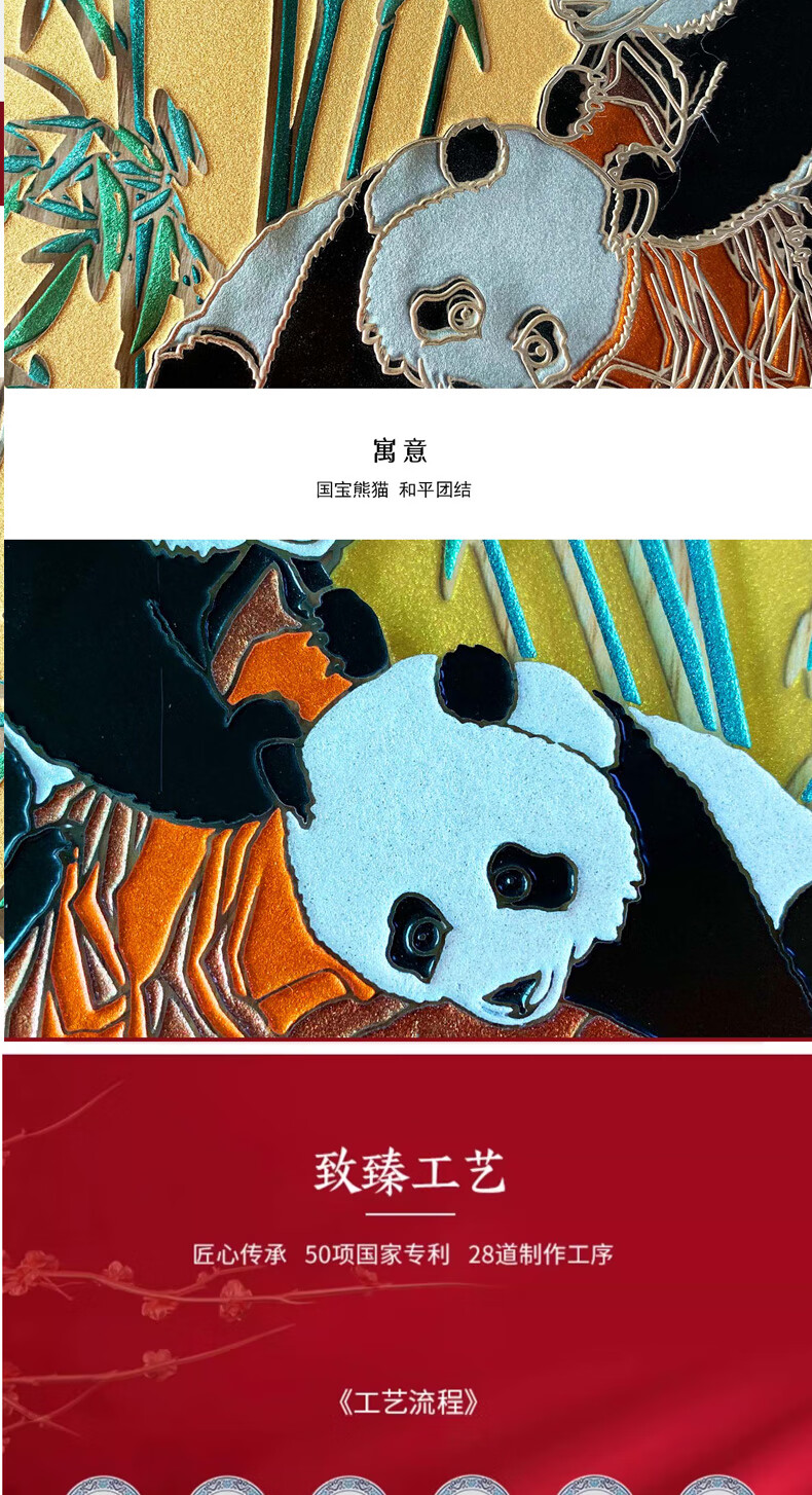 卓誉造物蜀绣熊猫双面绣屏风桌面摆件中国风高级感轻奢刺绣礼物送老外 守望熊猫