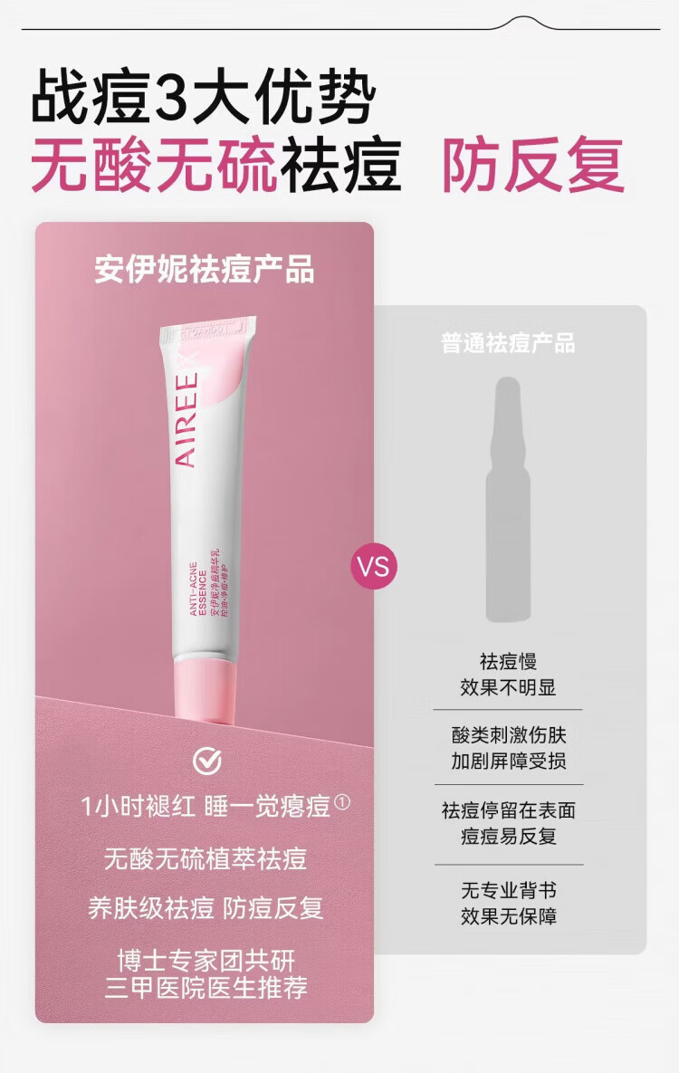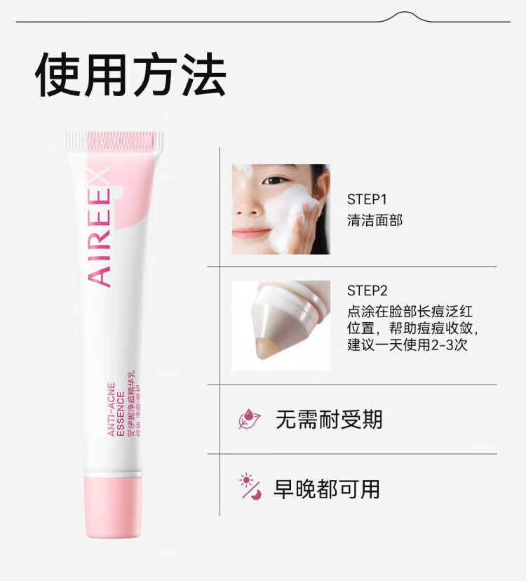 AIREE安伊妮青少年净痘乳控油修护舒缓祛痘快速祛泛红痘印小白管 15g