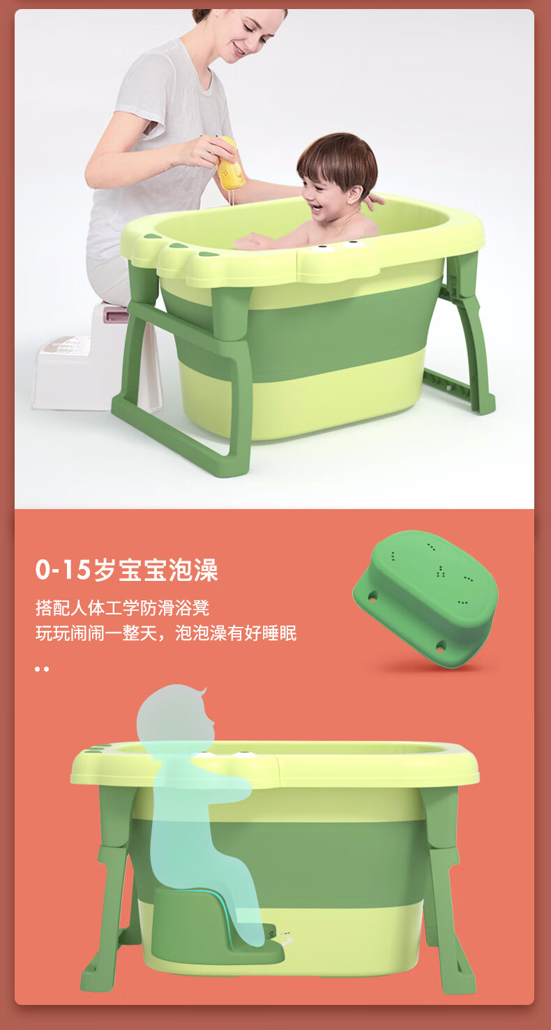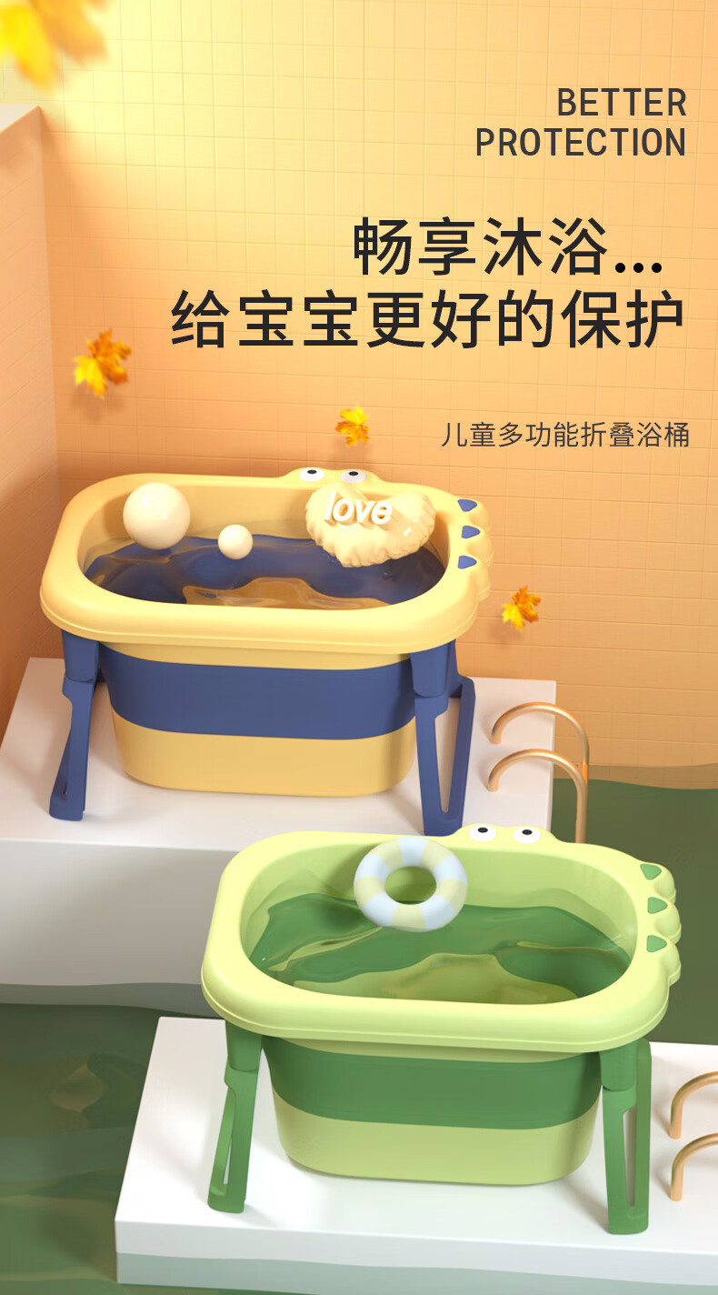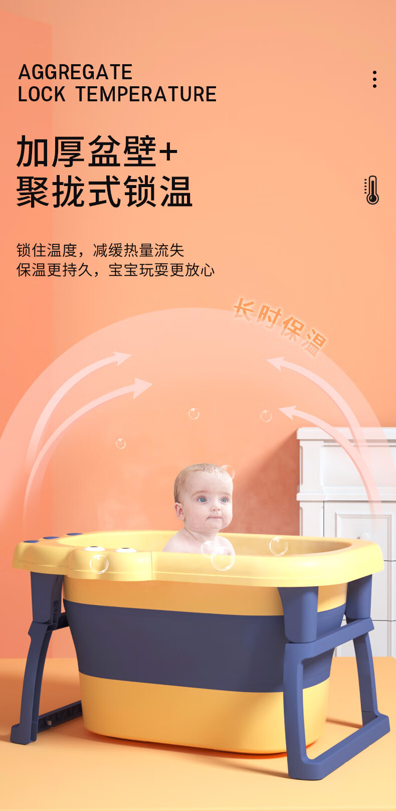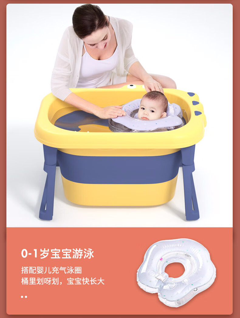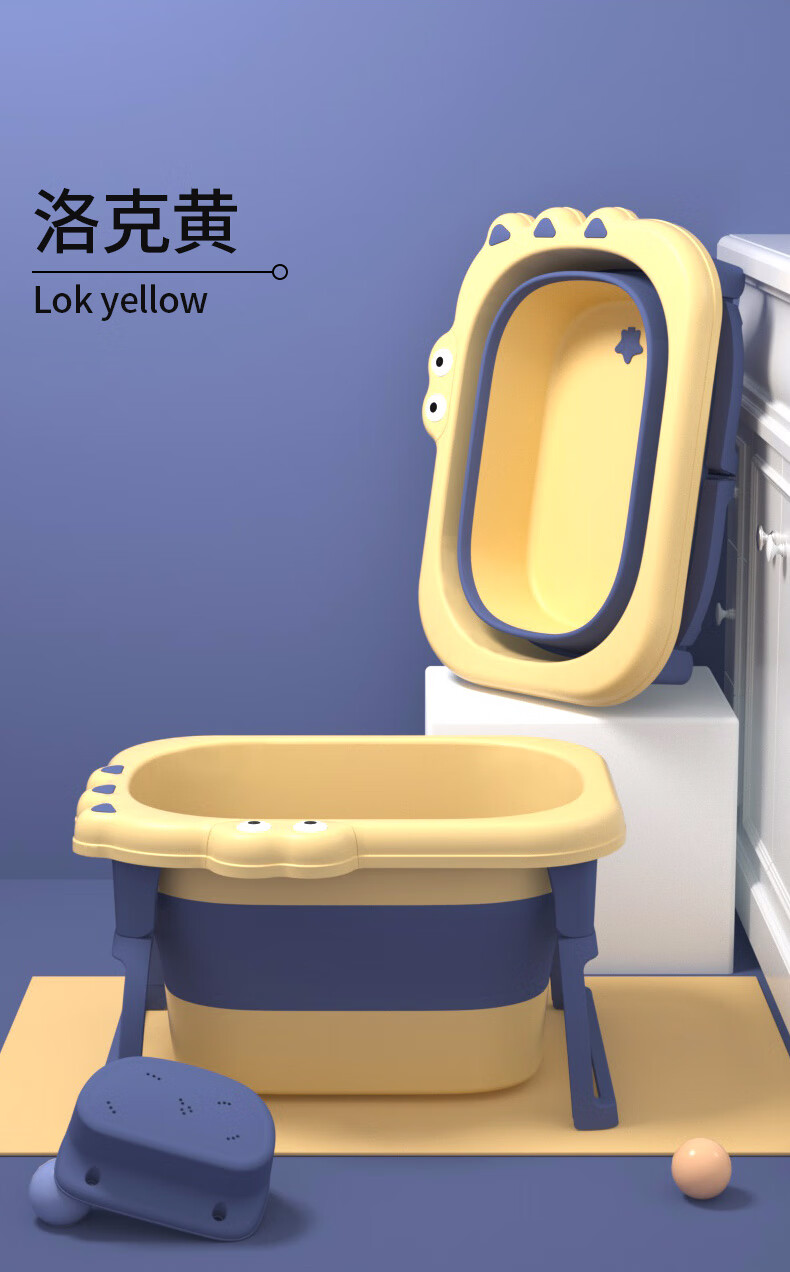 世纪宝贝(babyhood)婴儿洗澡盆泡澡桶可折叠浴桶宝宝游泳桶大号新生儿童用品 洛克黄(单桶)【送礼包+浴凳】