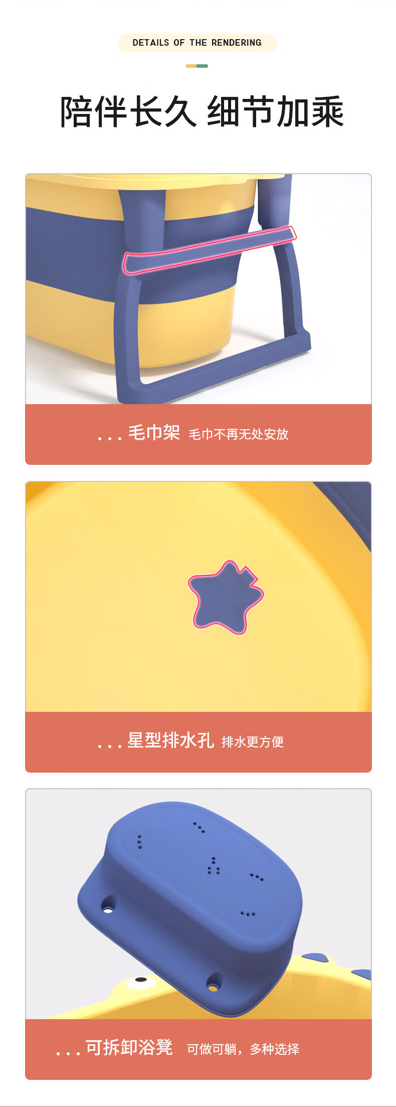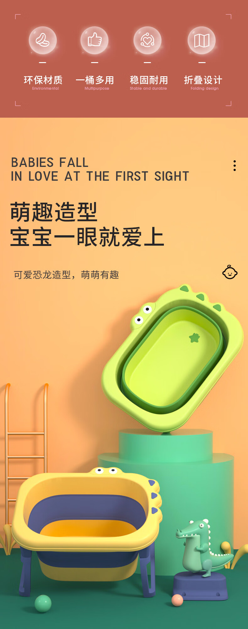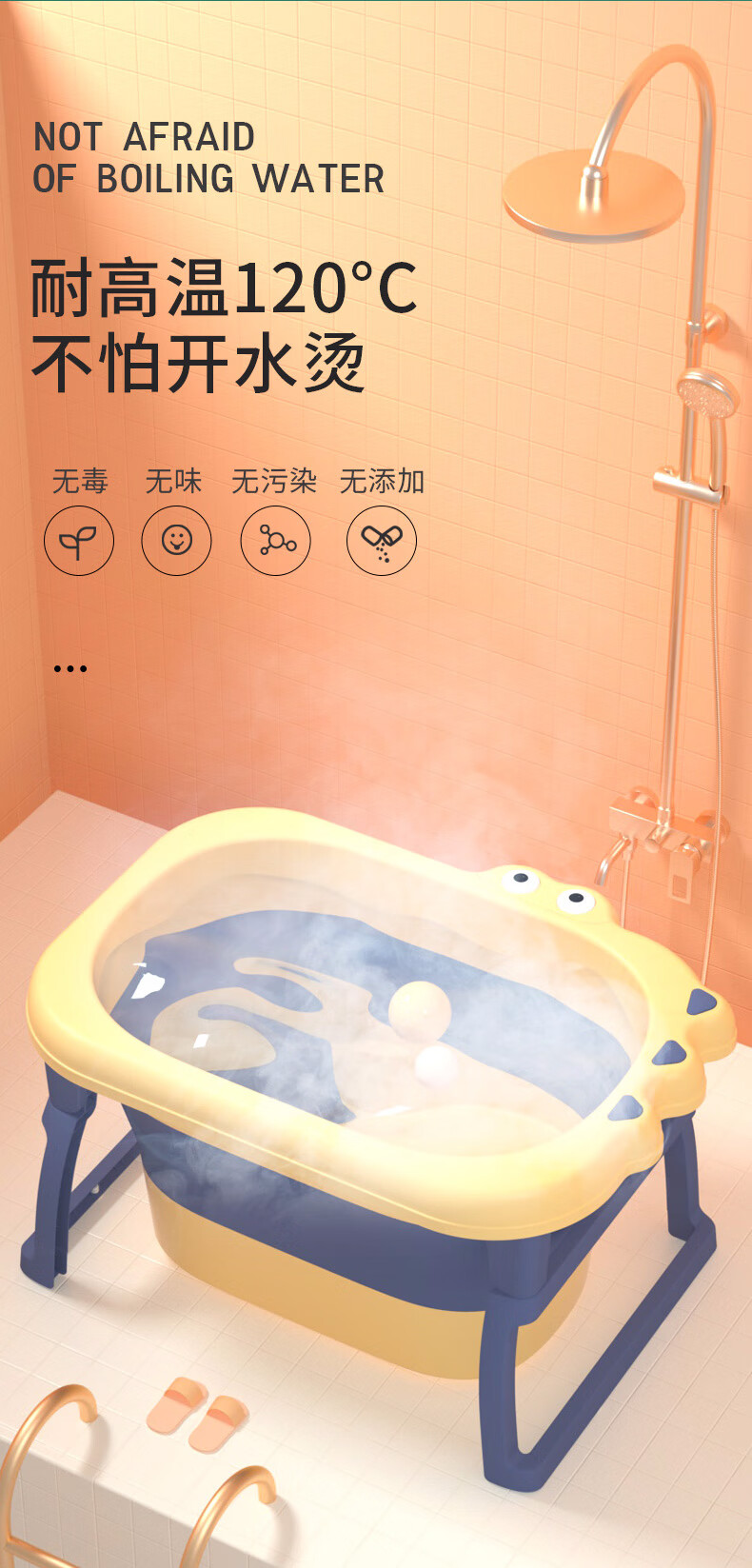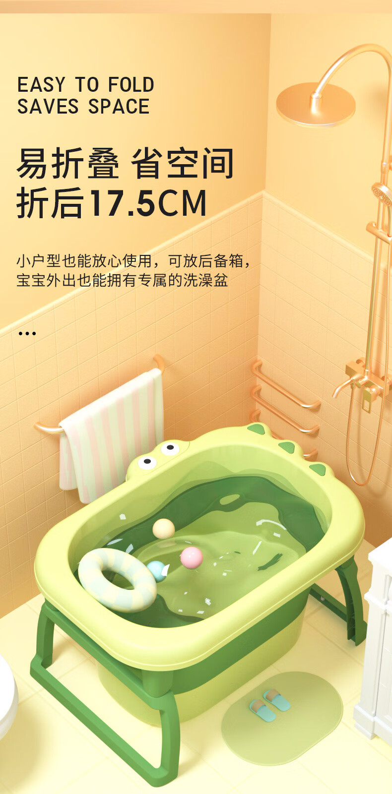 世纪宝贝(babyhood)婴儿洗澡盆泡澡桶可折叠浴桶宝宝游泳桶大号新生儿童用品 洛克黄(单桶)【送礼包+浴凳】