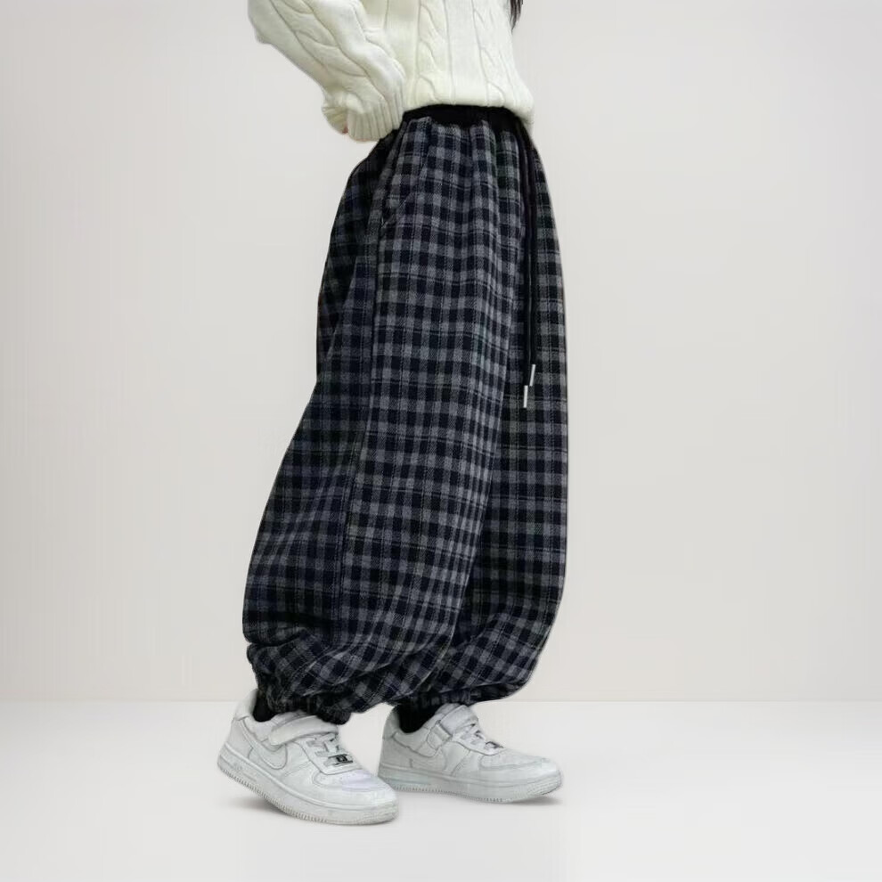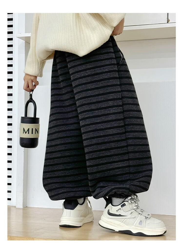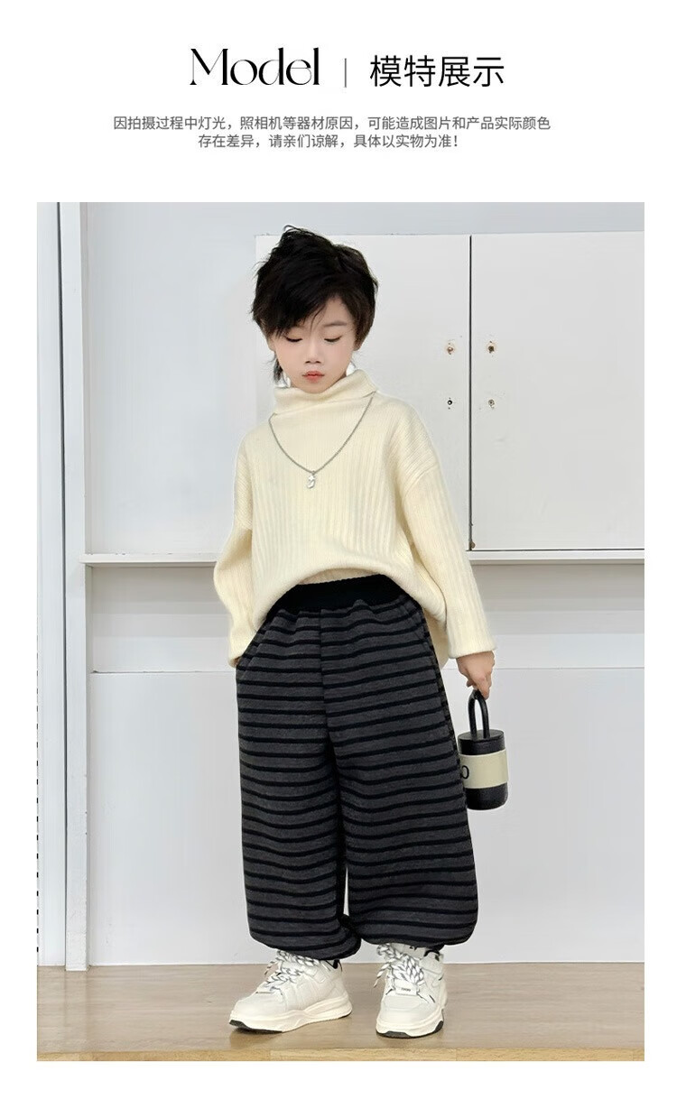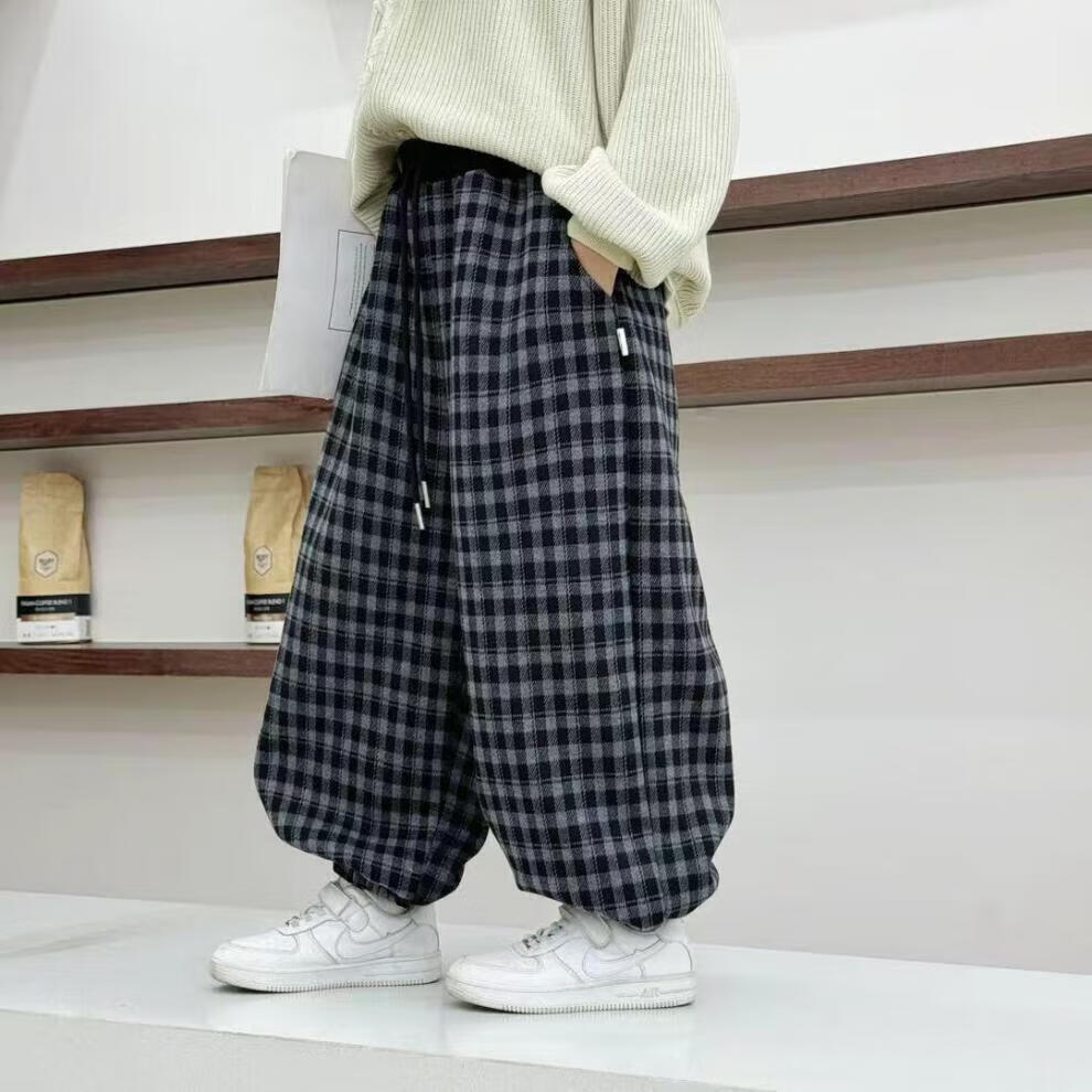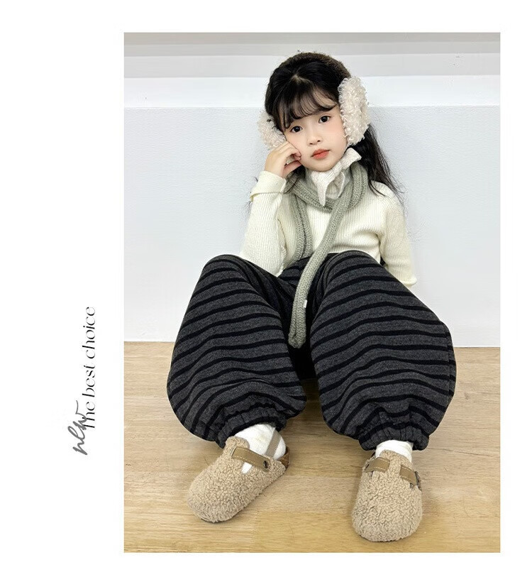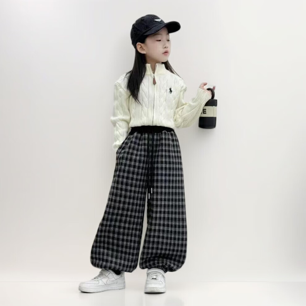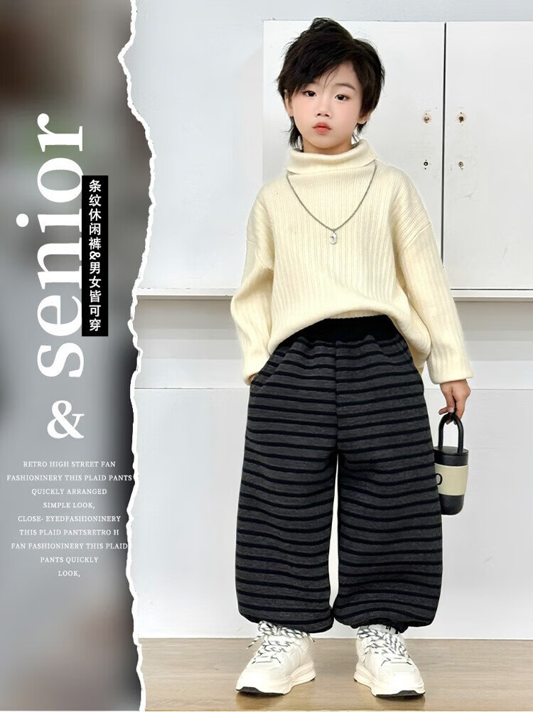 小猪班纳(PEPCO)儿童2025年冬装男女童拼腰格子加绒保暖休闲韩版束口长裤运动裤 拼腰格子加绒裤-黑色 100 cm