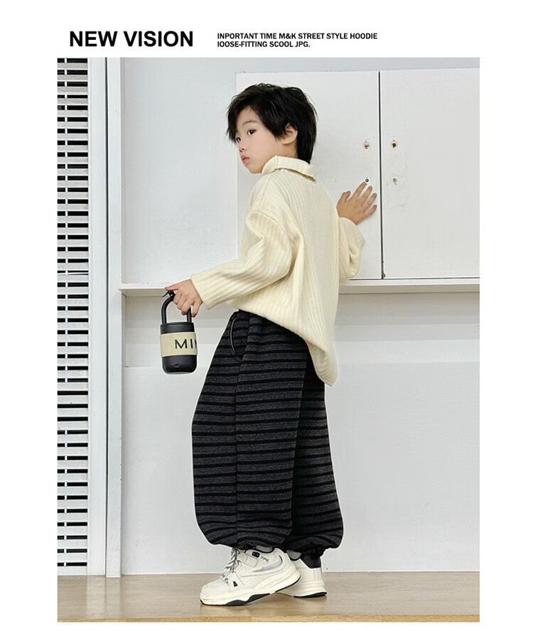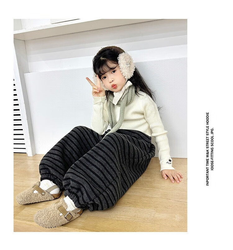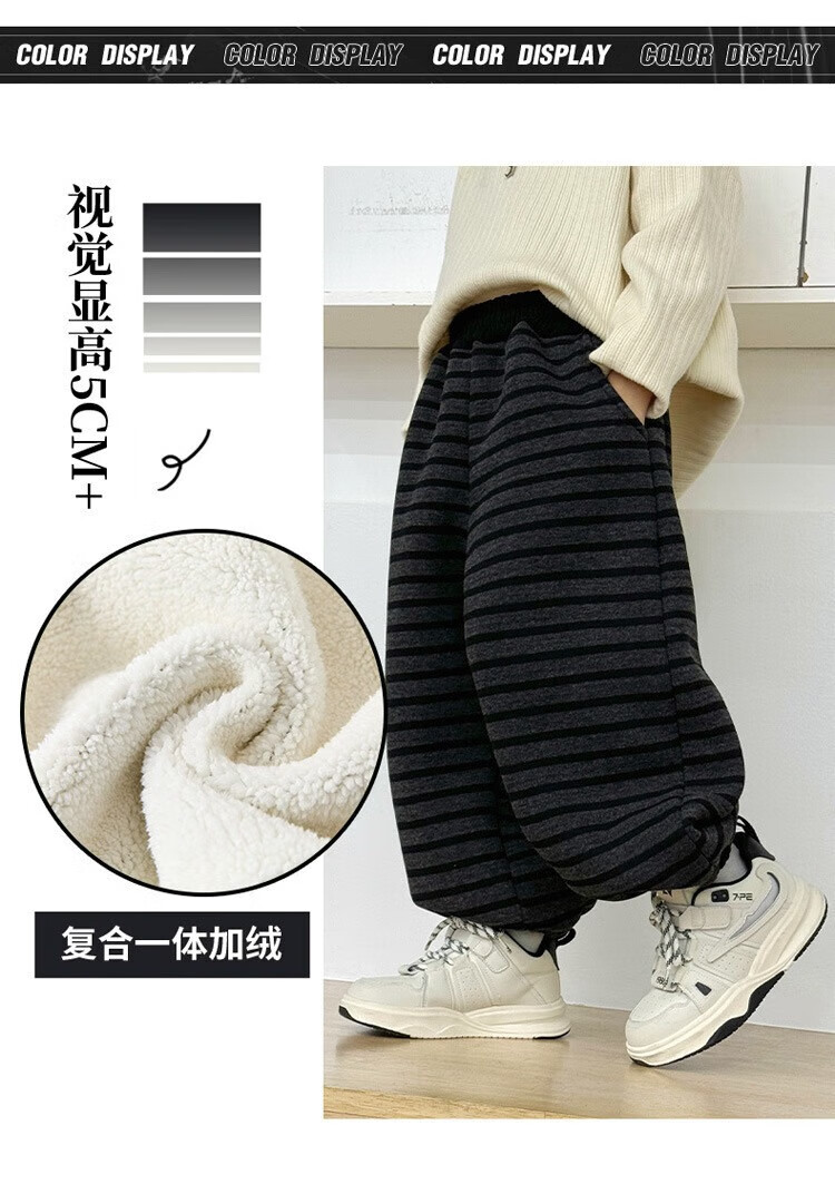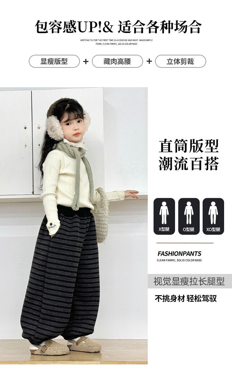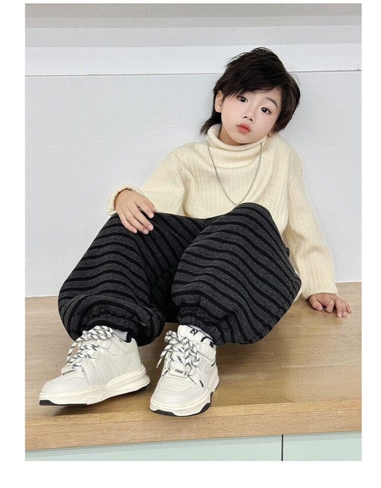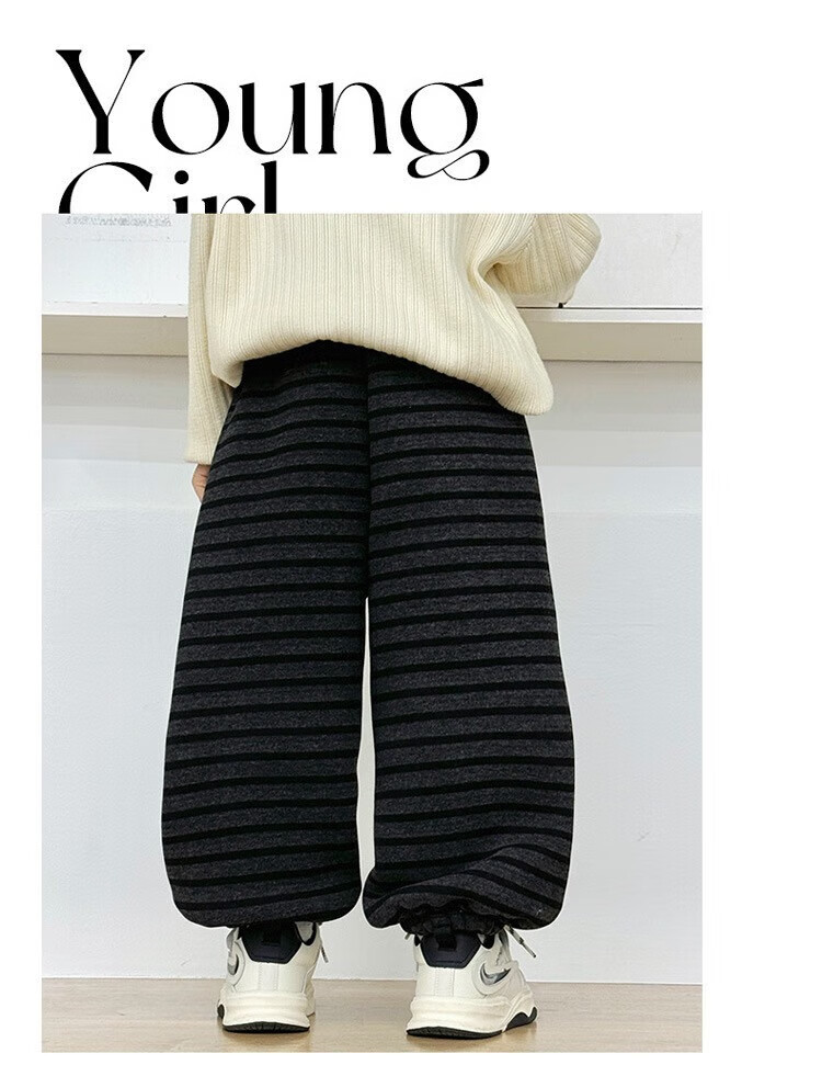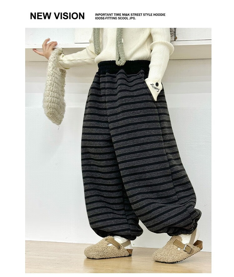 小猪班纳(PEPCO)儿童2025年冬装男女童拼腰格子加绒保暖休闲韩版束口长裤运动裤 拼腰格子加绒裤-黑色 100 cm