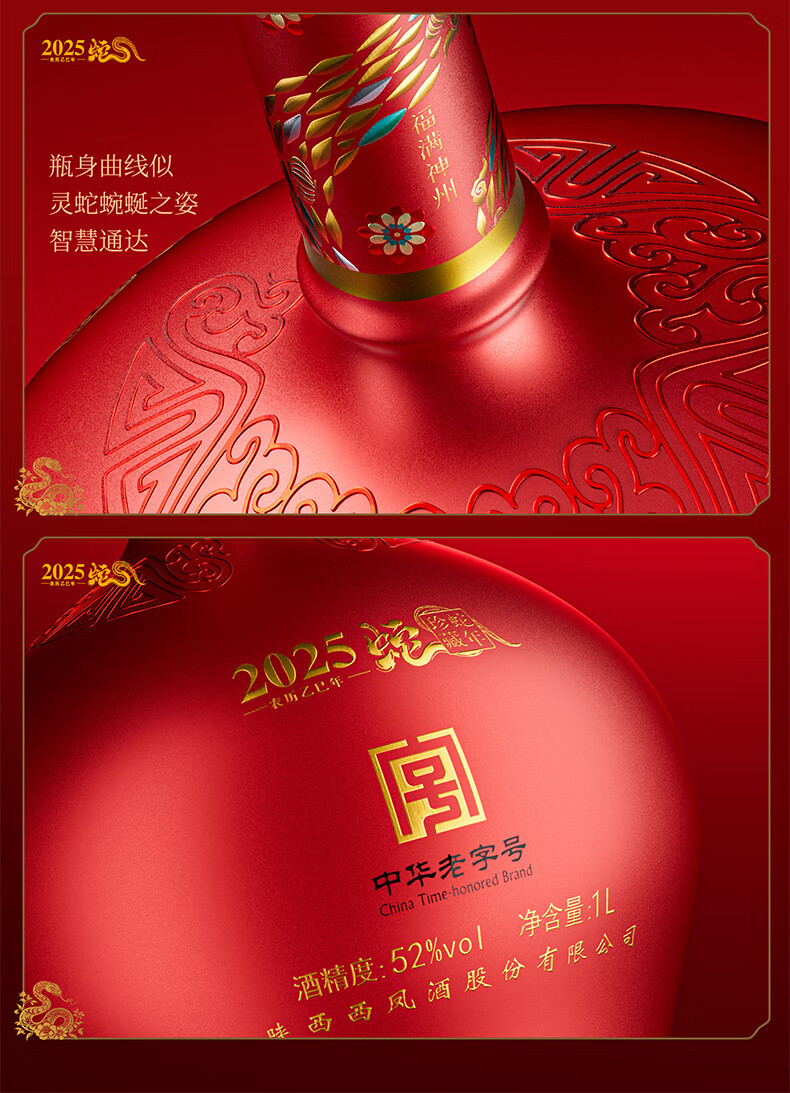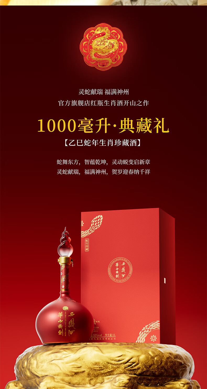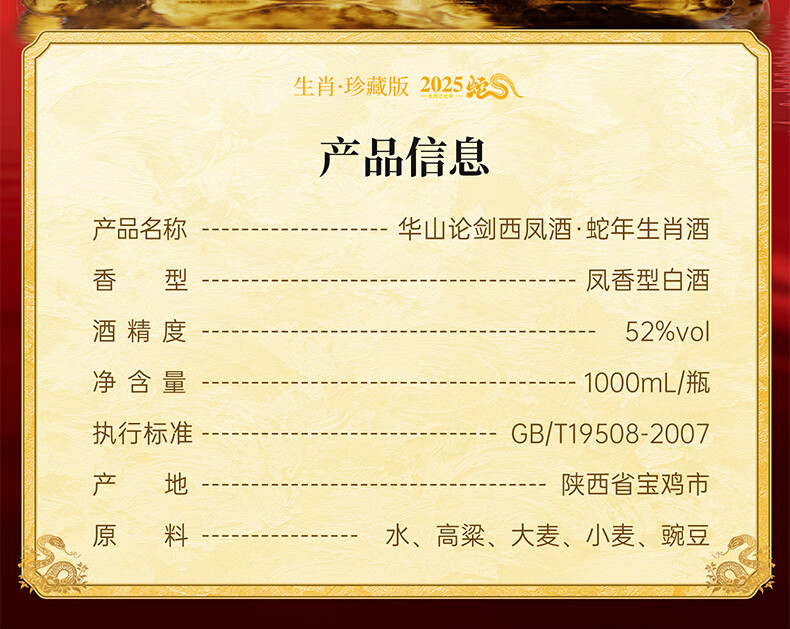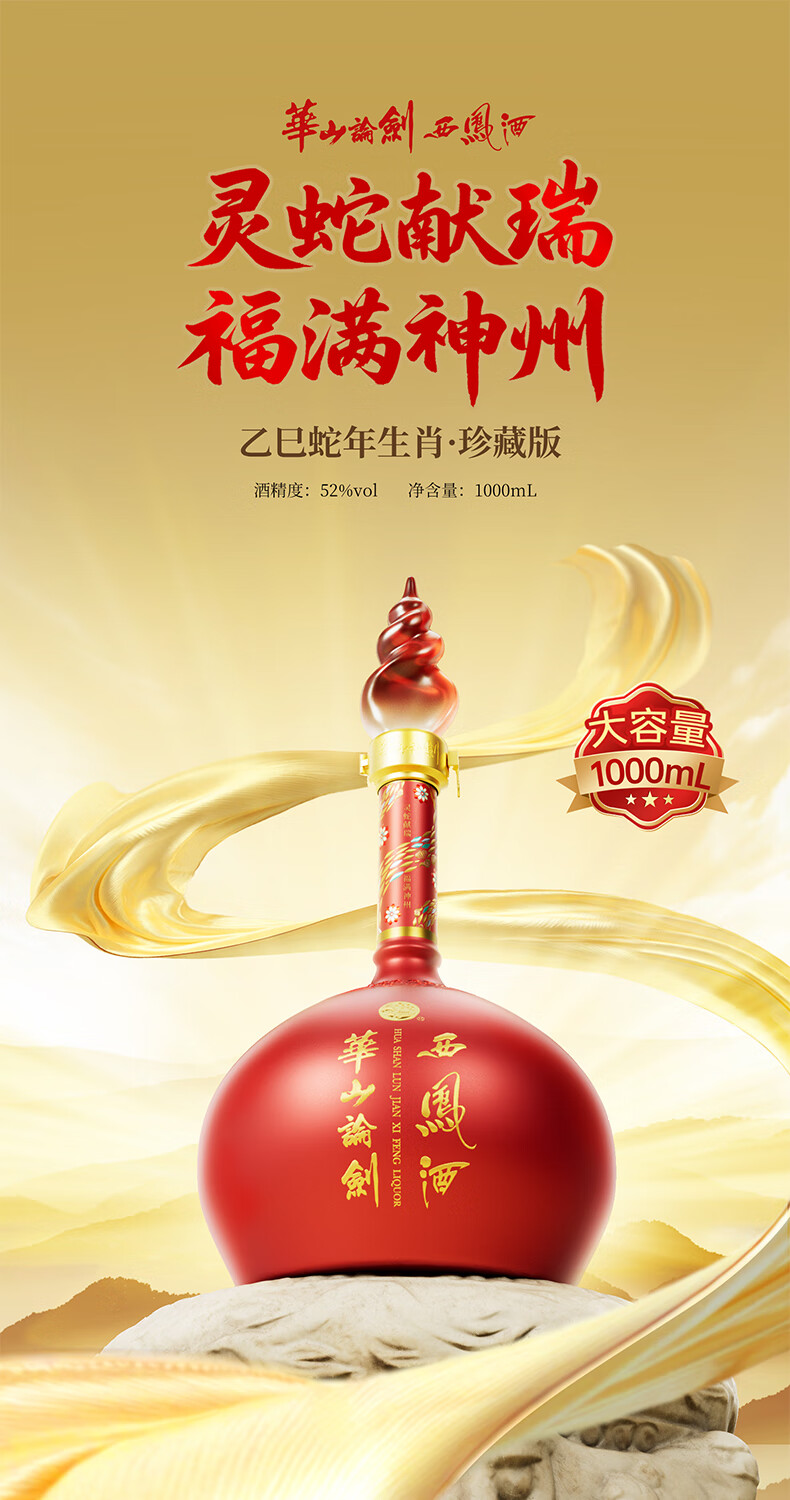 西凤华山论剑52度蛇年纪念酒经典凤香型白酒名酒聚餐送礼礼盒 52度 1000mL 1瓶 单瓶