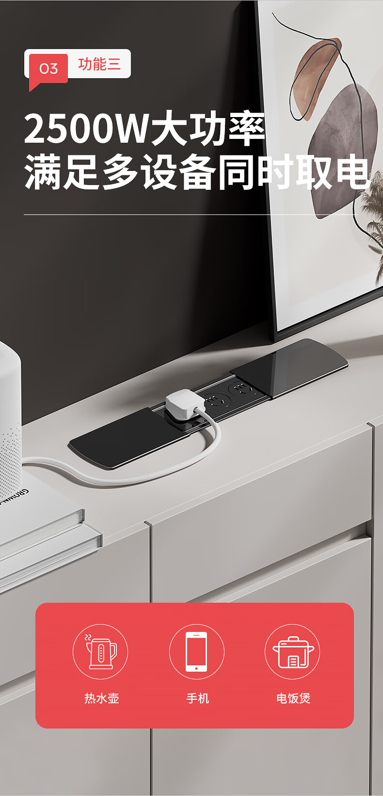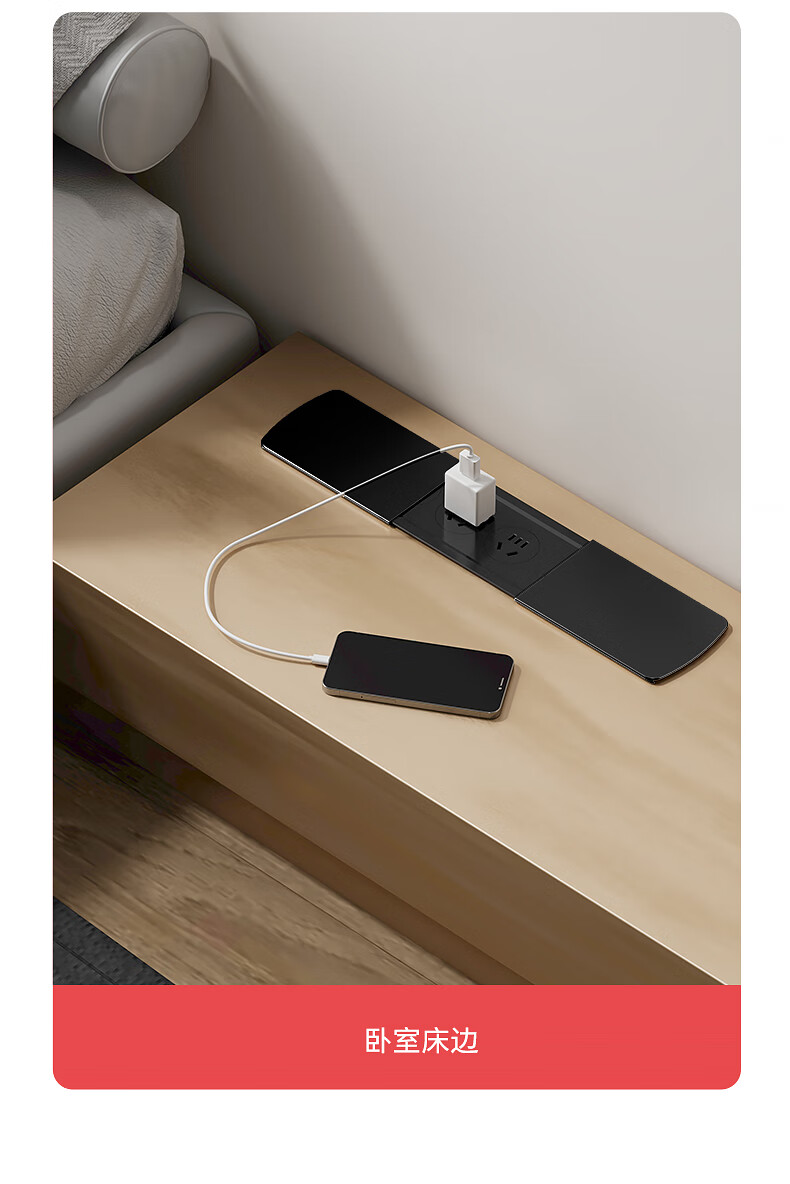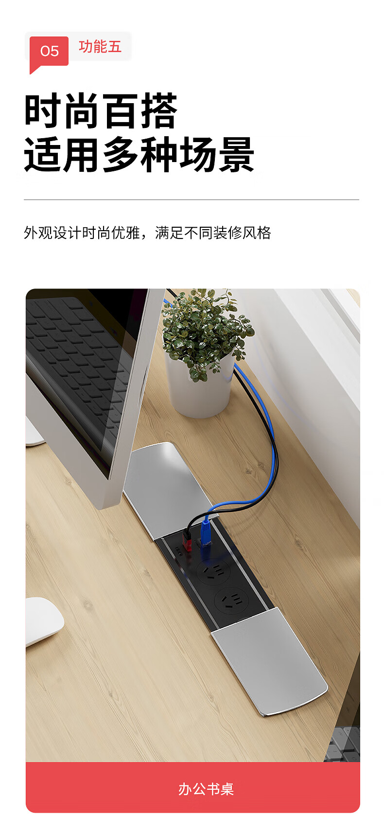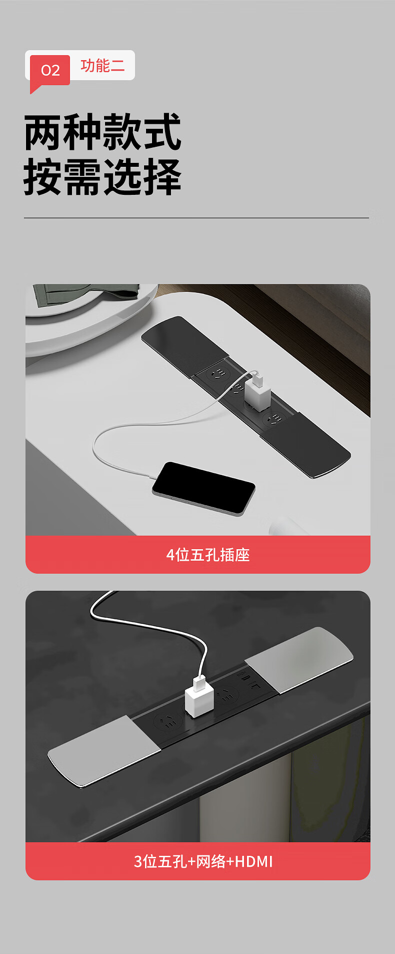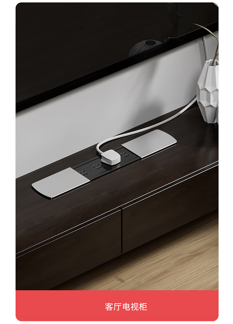 国际电工滑盖嵌入式插座插排桌面插座台面拖线板餐边柜办公书桌超薄排插 银色双开 3五孔+高清网络【带电源线/底座】