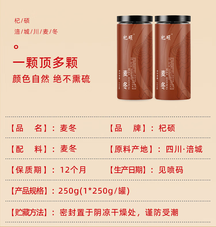 杞硕川麦冬京选四川涪城正品麦冬煲汤材料 滋补食材养生茶佳品 无硫熏麦冬(250g*1罐)