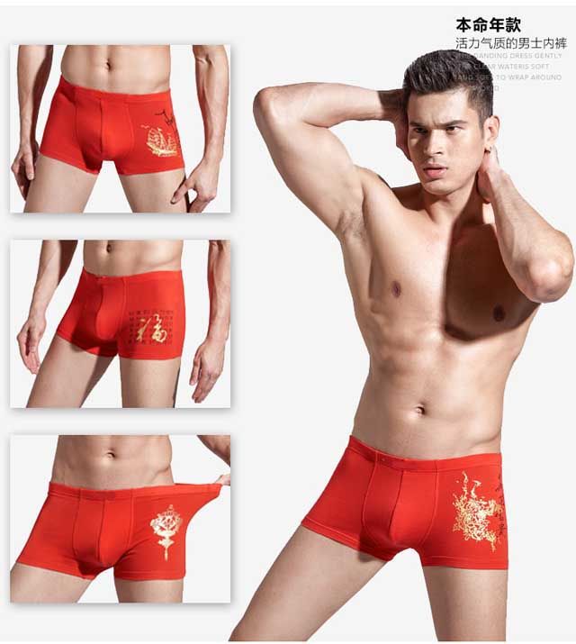 【优选百货】【现货现发】男士内裤亲肤本命年内裤有弹性内裤平角 【金龙款】 4条 L 90斤以内