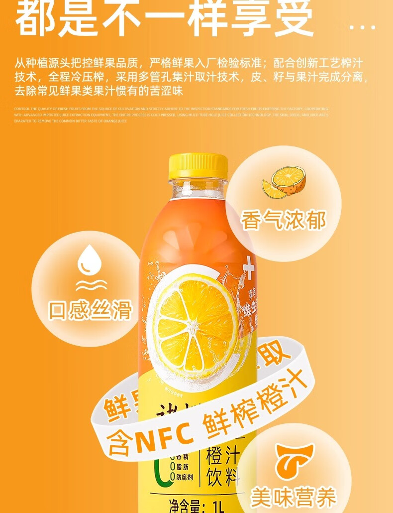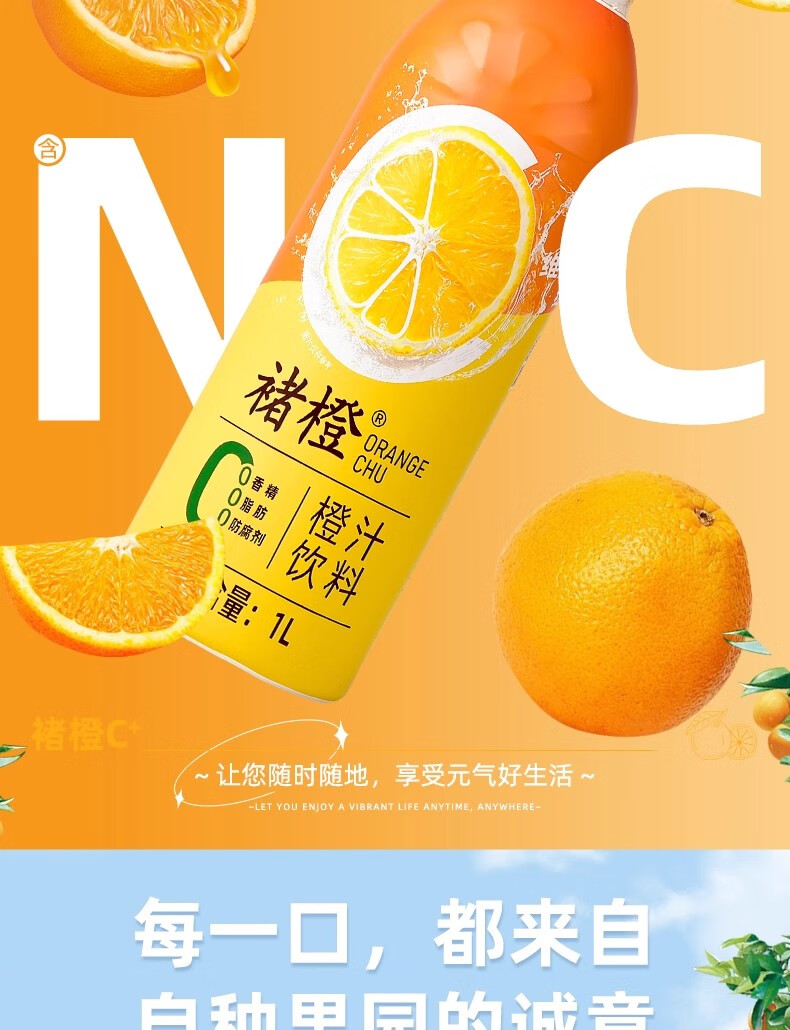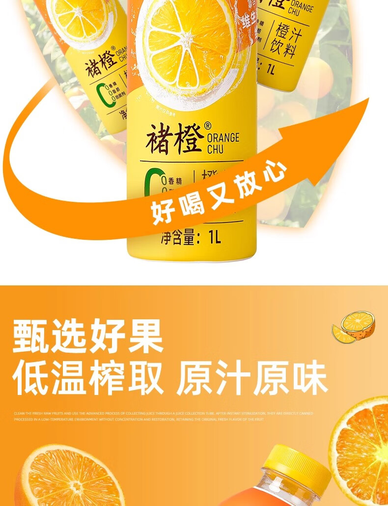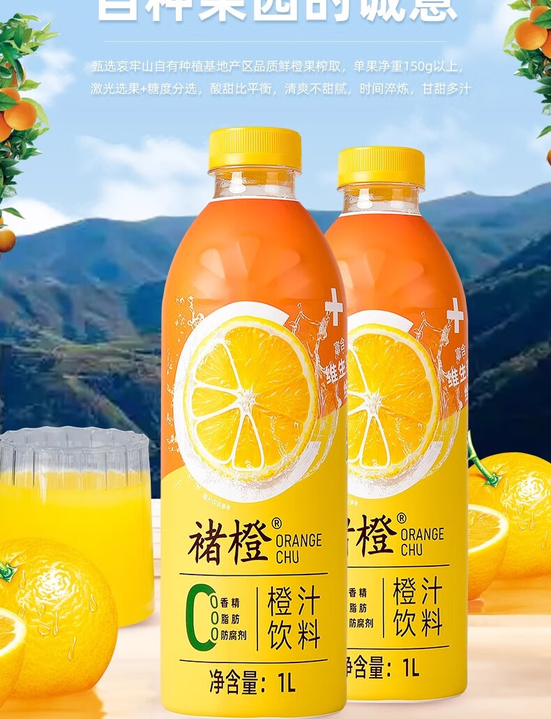 褚橙云南褚橙橙汁鲜榨果蔬汁饮料维C维新大瓶整箱饮品褚橙果汁橙子汁 褚橙橙汁大瓶装1L*1瓶