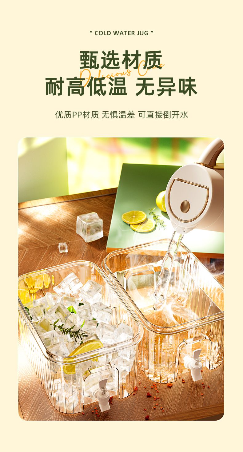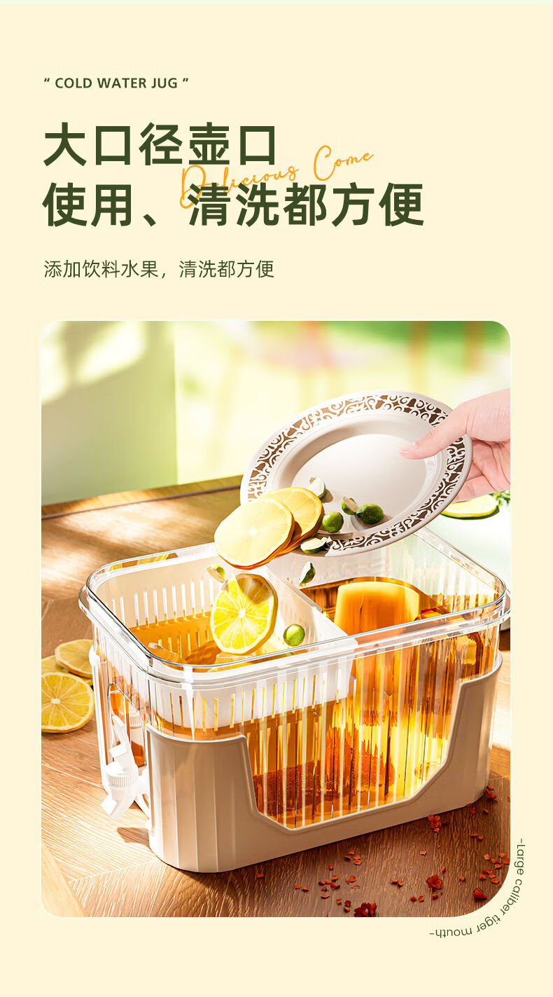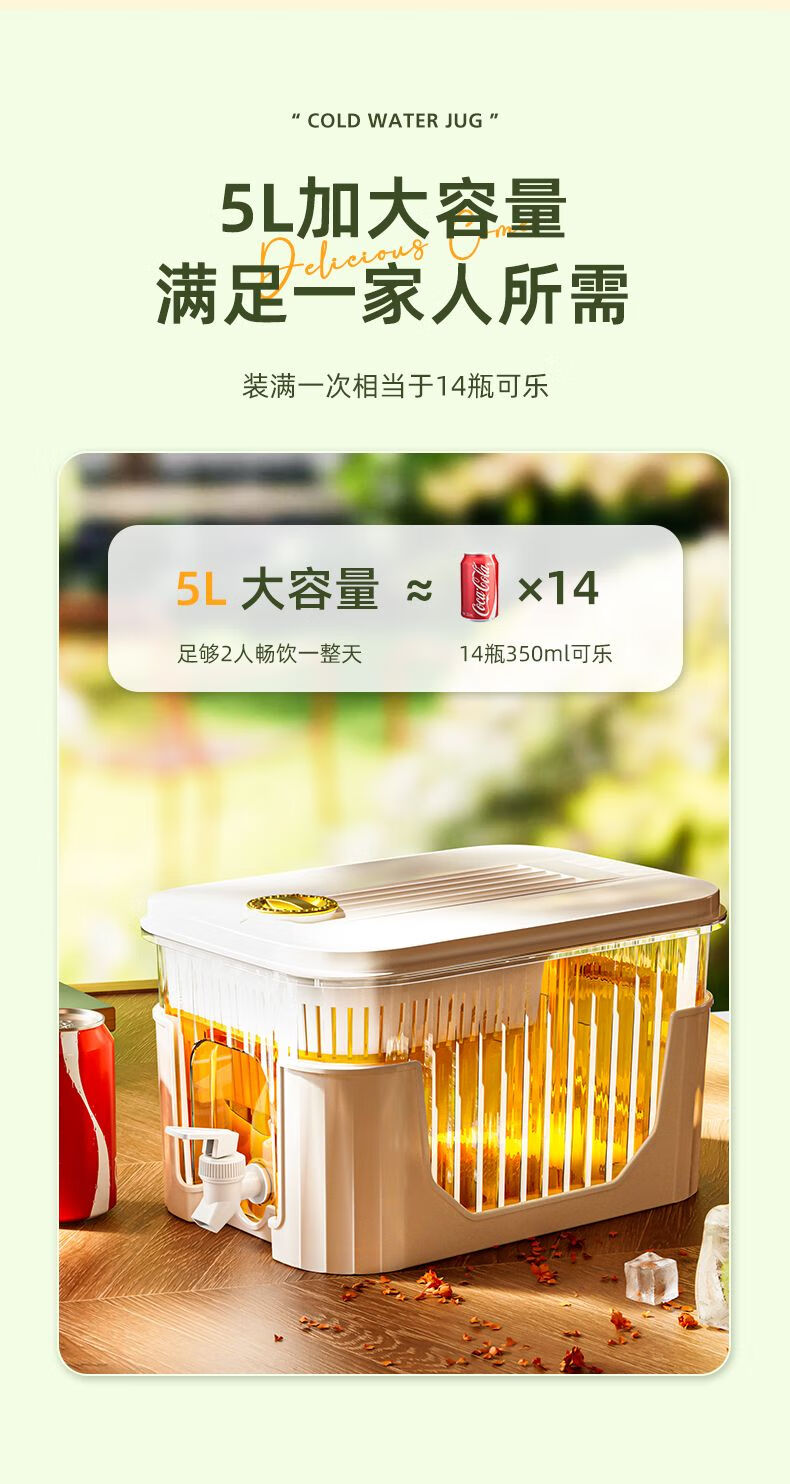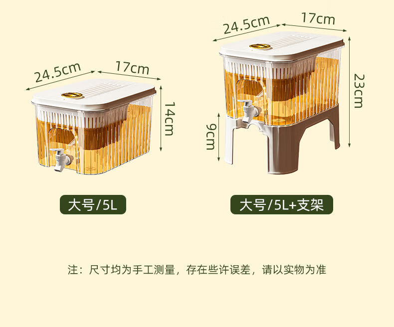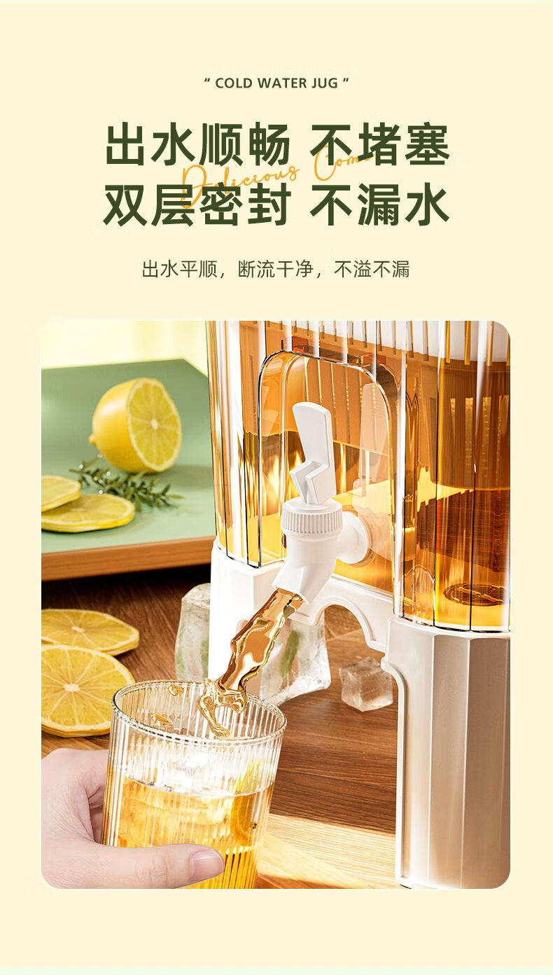 PJ带龙头储水桶冰箱冷水壶家用水果柠檬茶食物收纳盒果汁饮料桶 龙头+滤网+支架5l3-4人开怀畅5L