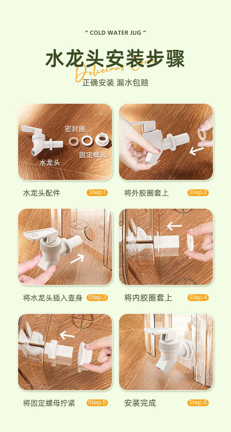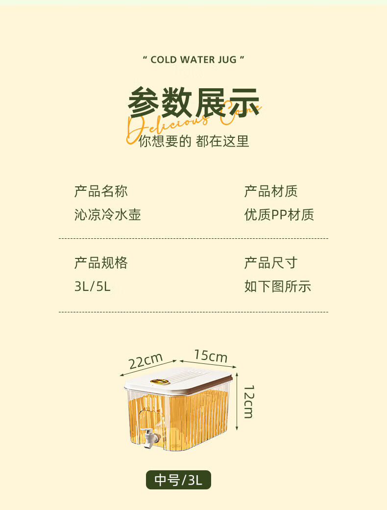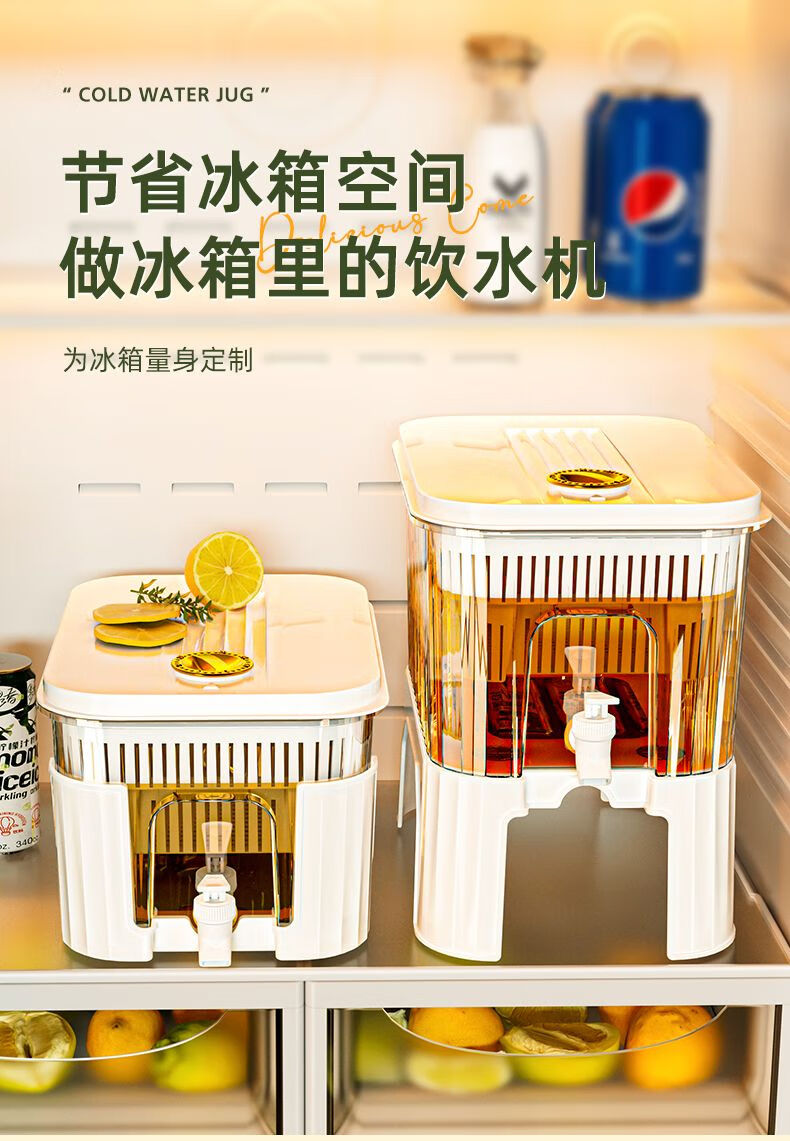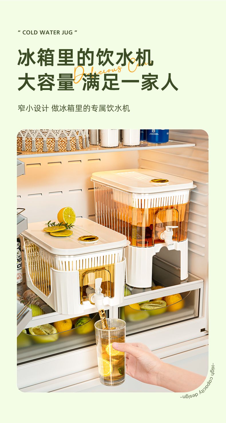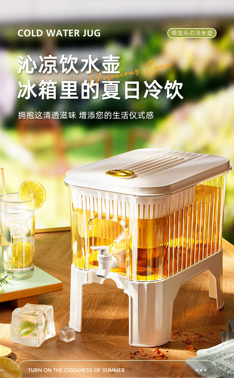 PJ带龙头储水桶冰箱冷水壶家用水果柠檬茶食物收纳盒果汁饮料桶 龙头+滤网+支架5l3-4人开怀畅5L