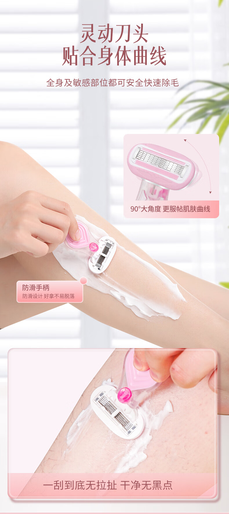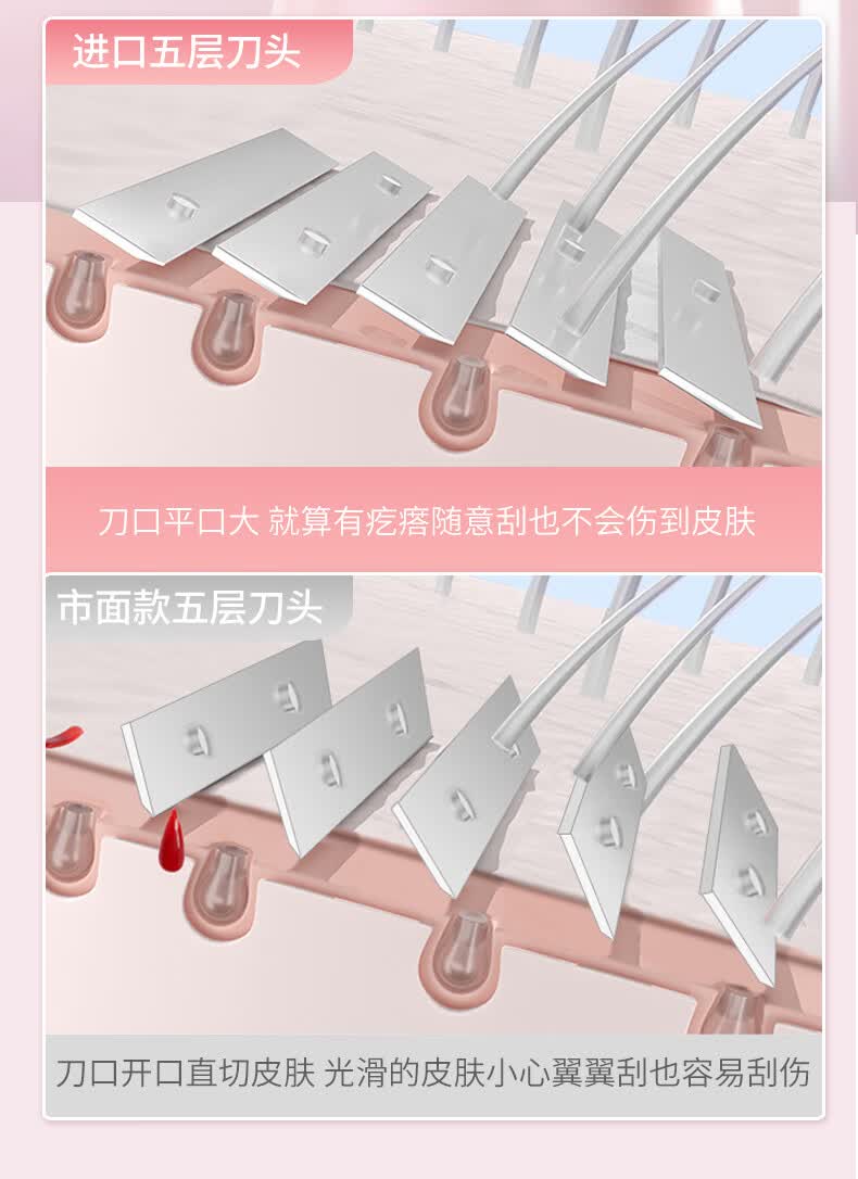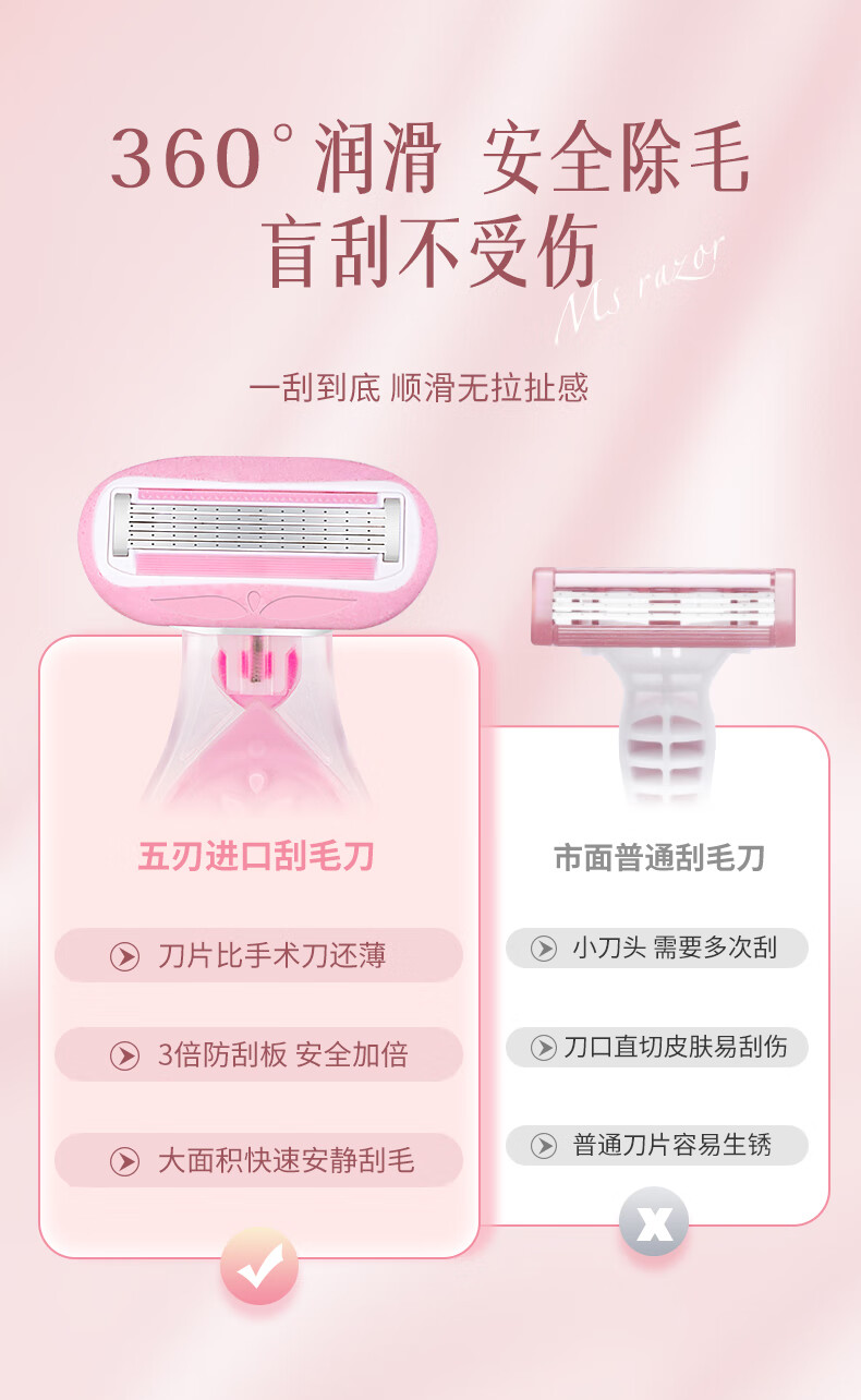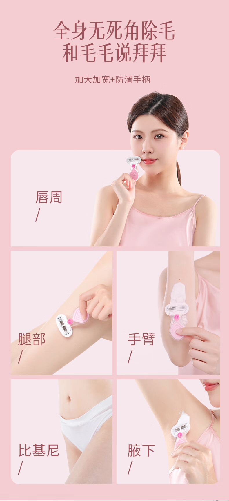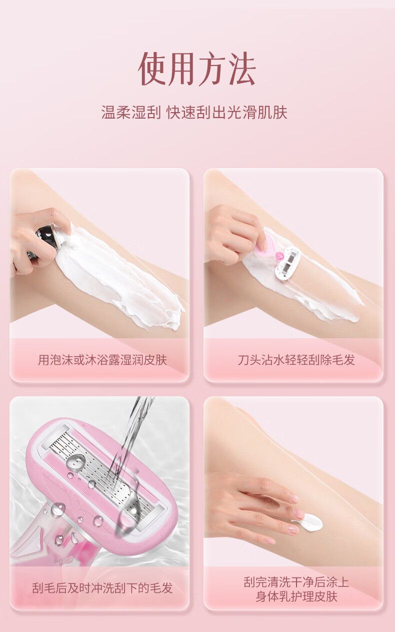 吉耏利女士刮毛刀腋下私密处专用脱毛刀剃毛刀女款除毛刀女士去毛神器 1刀架+2刀头送收纳盒+30g剃毛膏