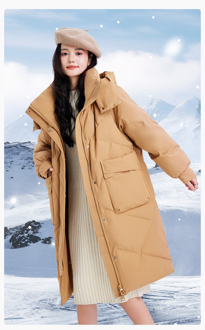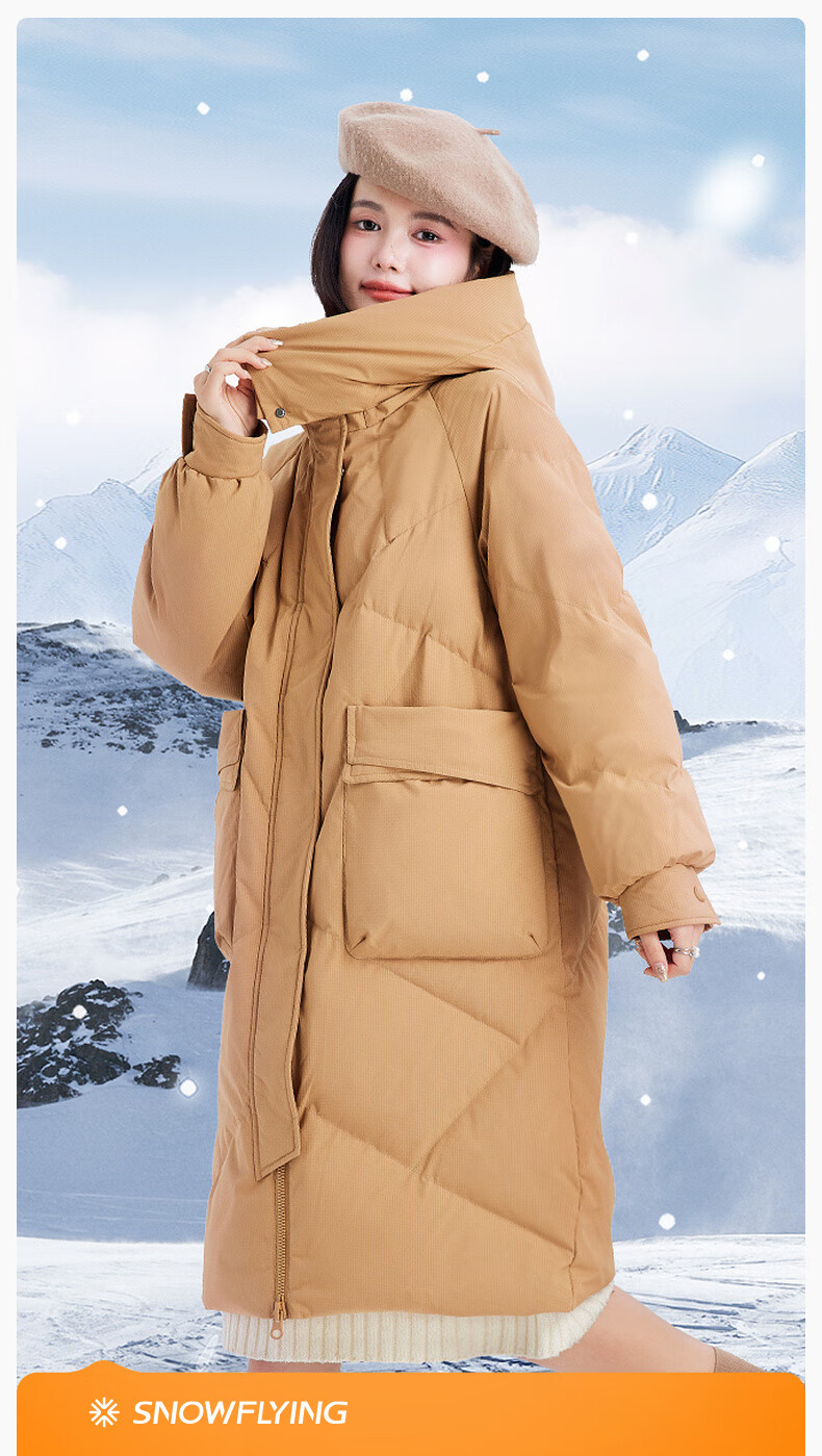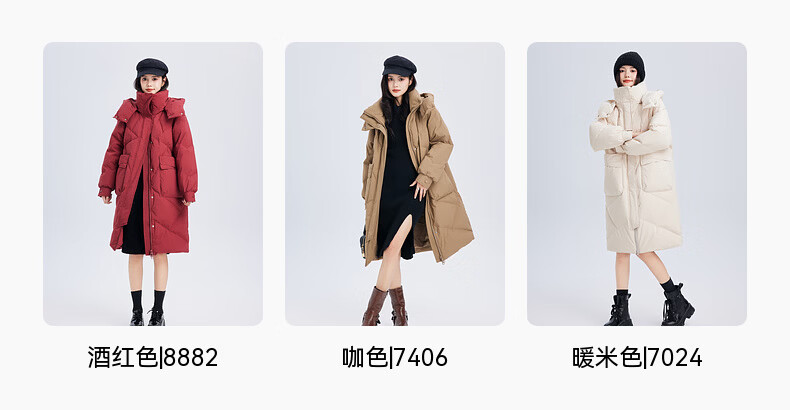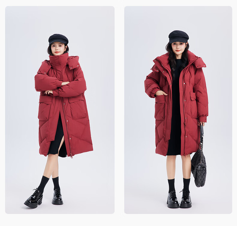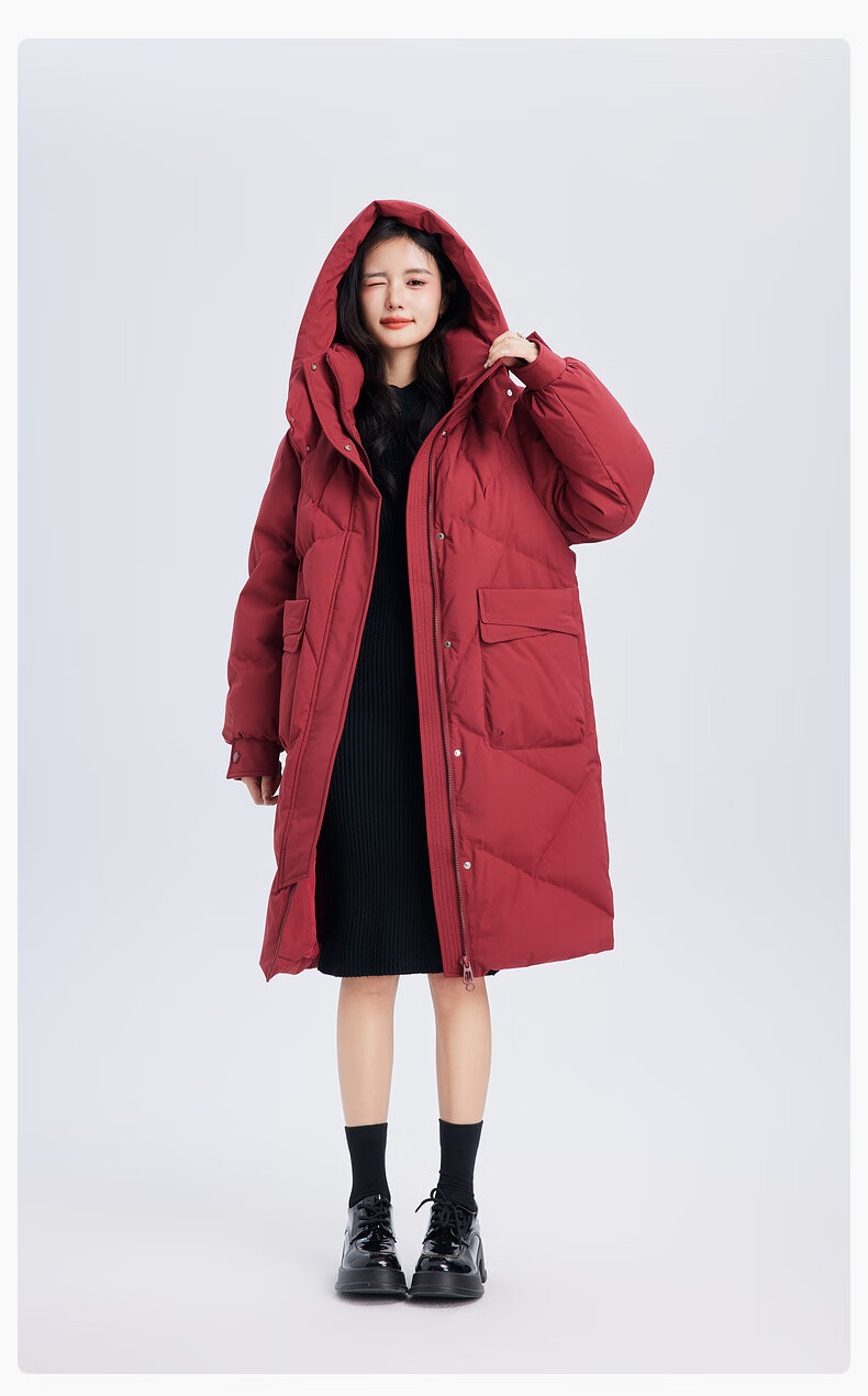 雪中飞2025冬新款女士中长款羽绒服百搭时尚休闲气质大口袋保暖舒适 酒红色|8882 M /160/84A
