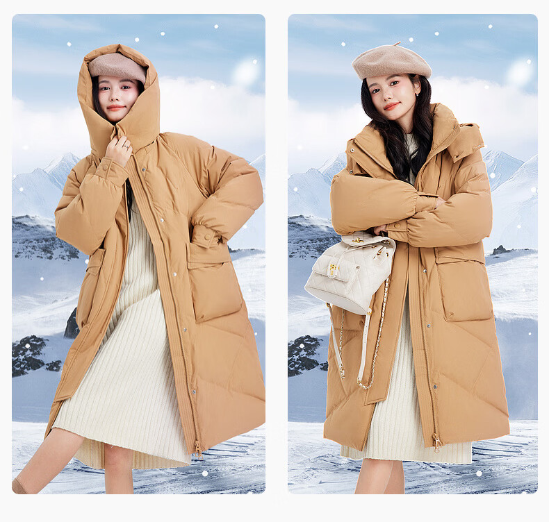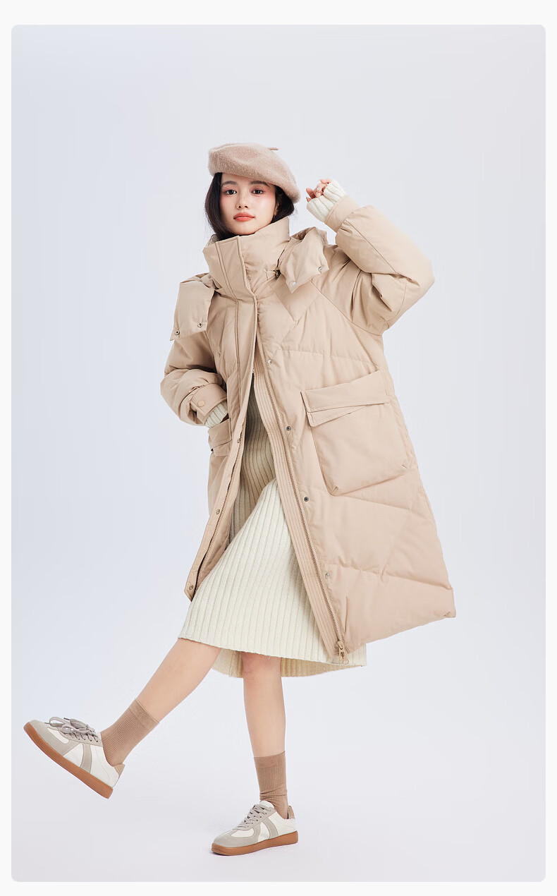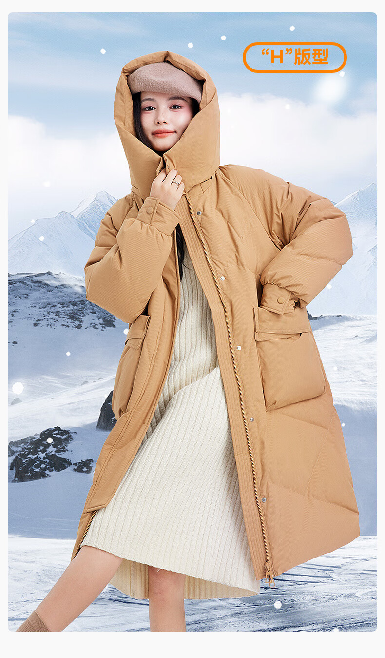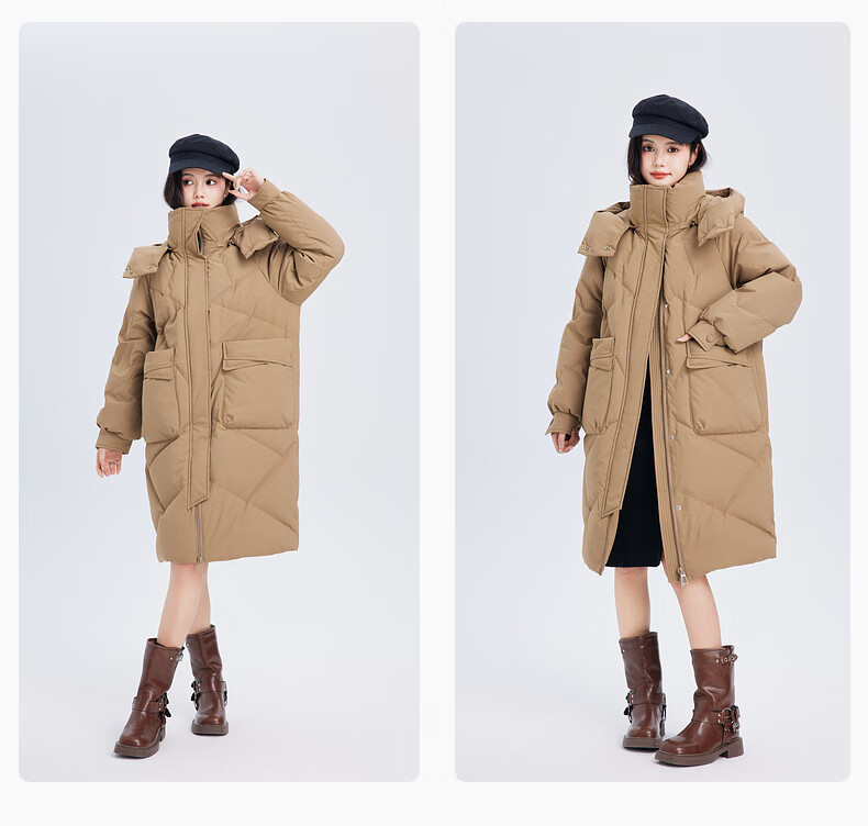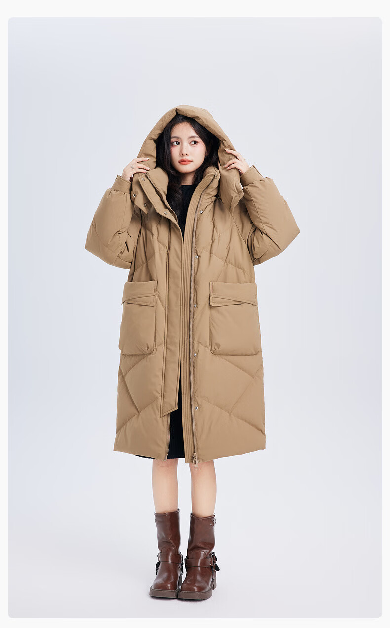 雪中飞2025冬新款女士中长款羽绒服百搭时尚休闲气质大口袋保暖舒适 酒红色|8882 M /160/84A
