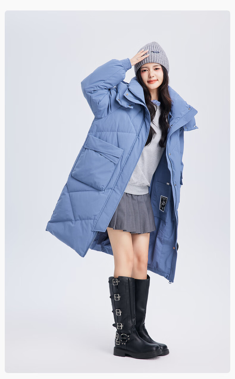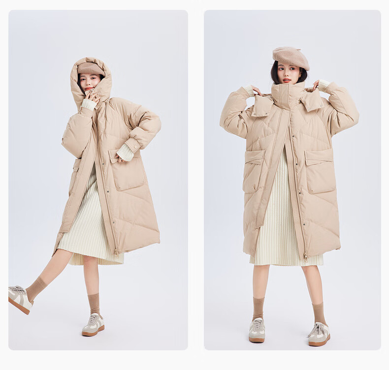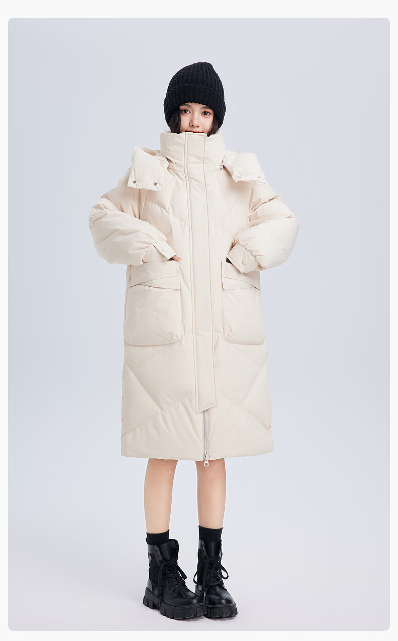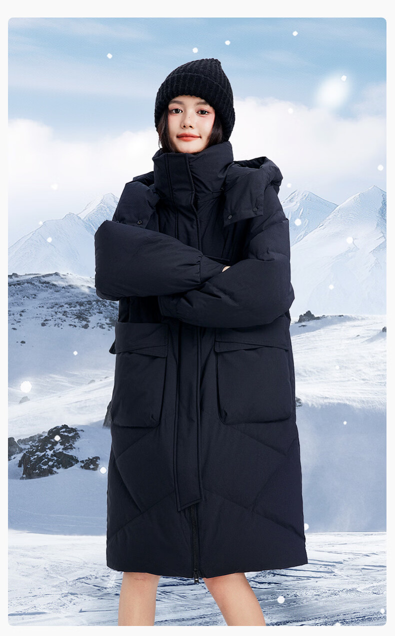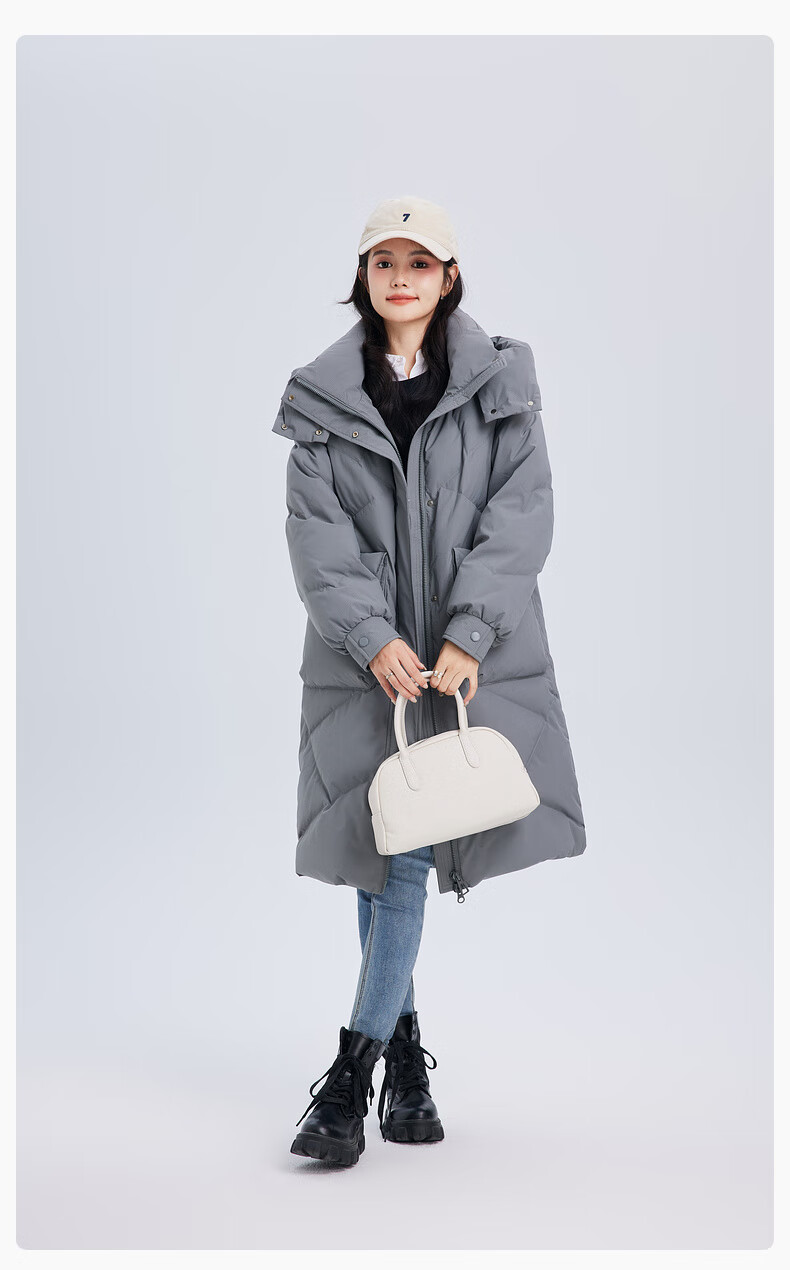 雪中飞2025冬新款女士中长款羽绒服百搭时尚休闲气质大口袋保暖舒适 酒红色|8882 M /160/84A