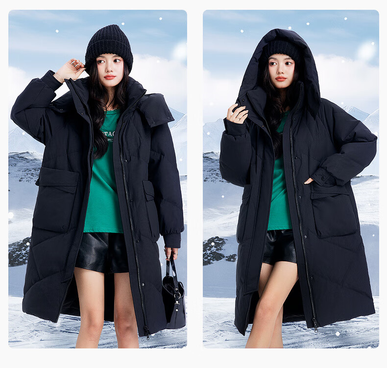 高梵黑金鹅绒服女王3.0八格收腰羽绒服女士热力感中长款冬厚外套黑色L