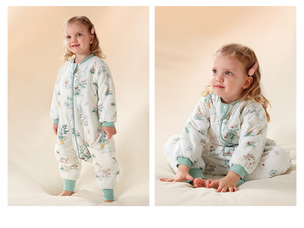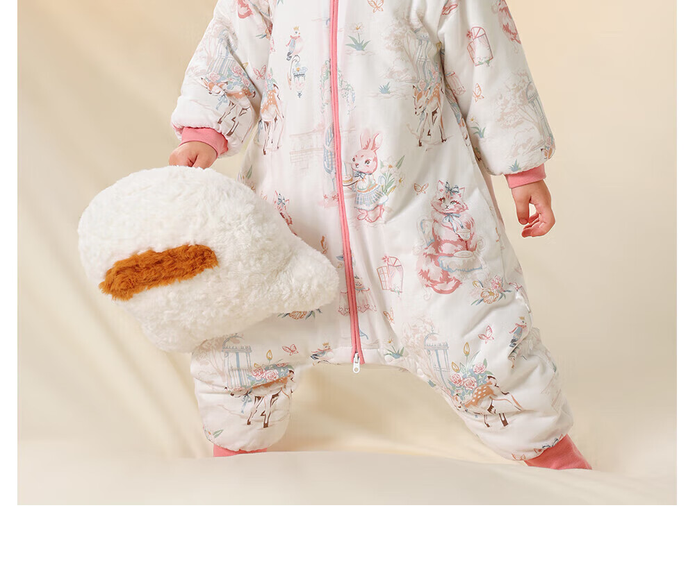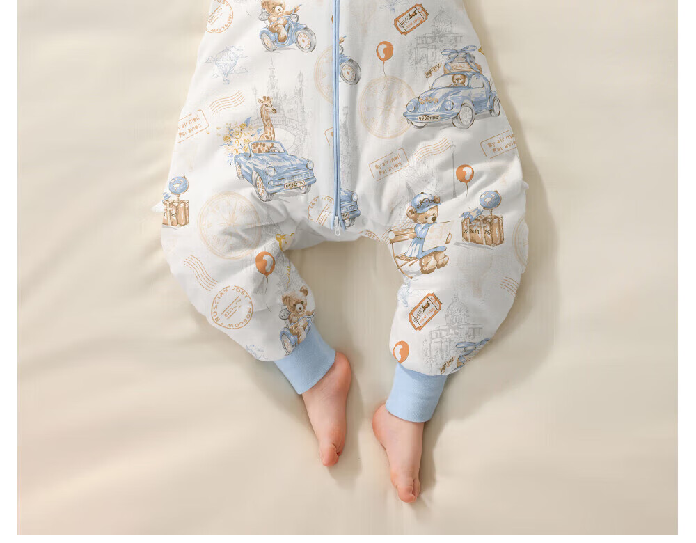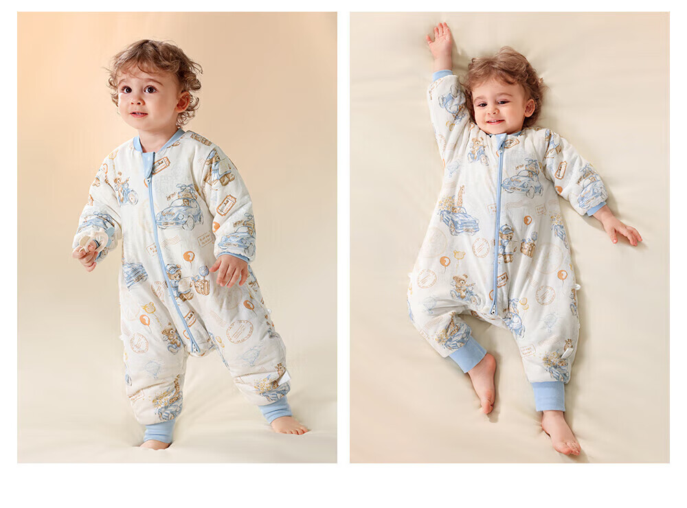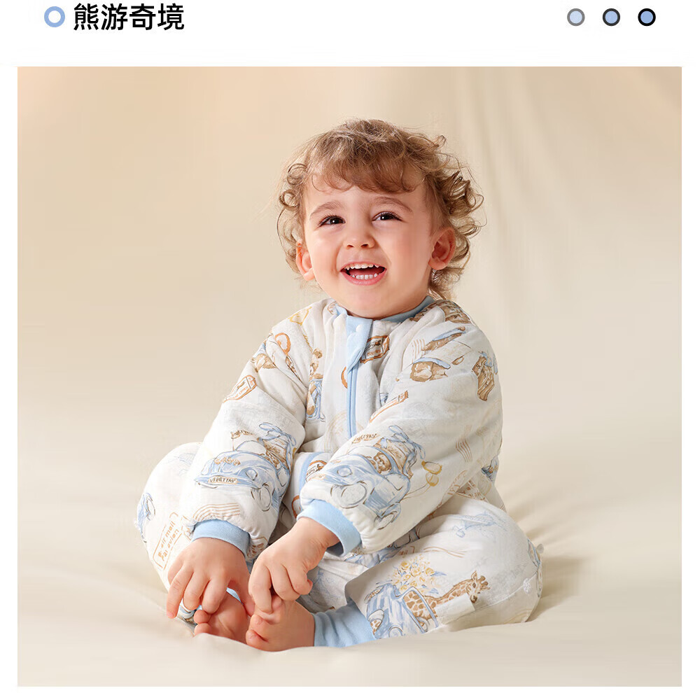 贝肽斯睡袋婴儿春秋季儿童宝宝3-6岁纯棉分腿式防踢被保暖防惊跳连体衣 熊游奇境【冬季加厚 0-15°C】猫肚棉 M码 建议身高80-95cm建议1.5-2.5岁