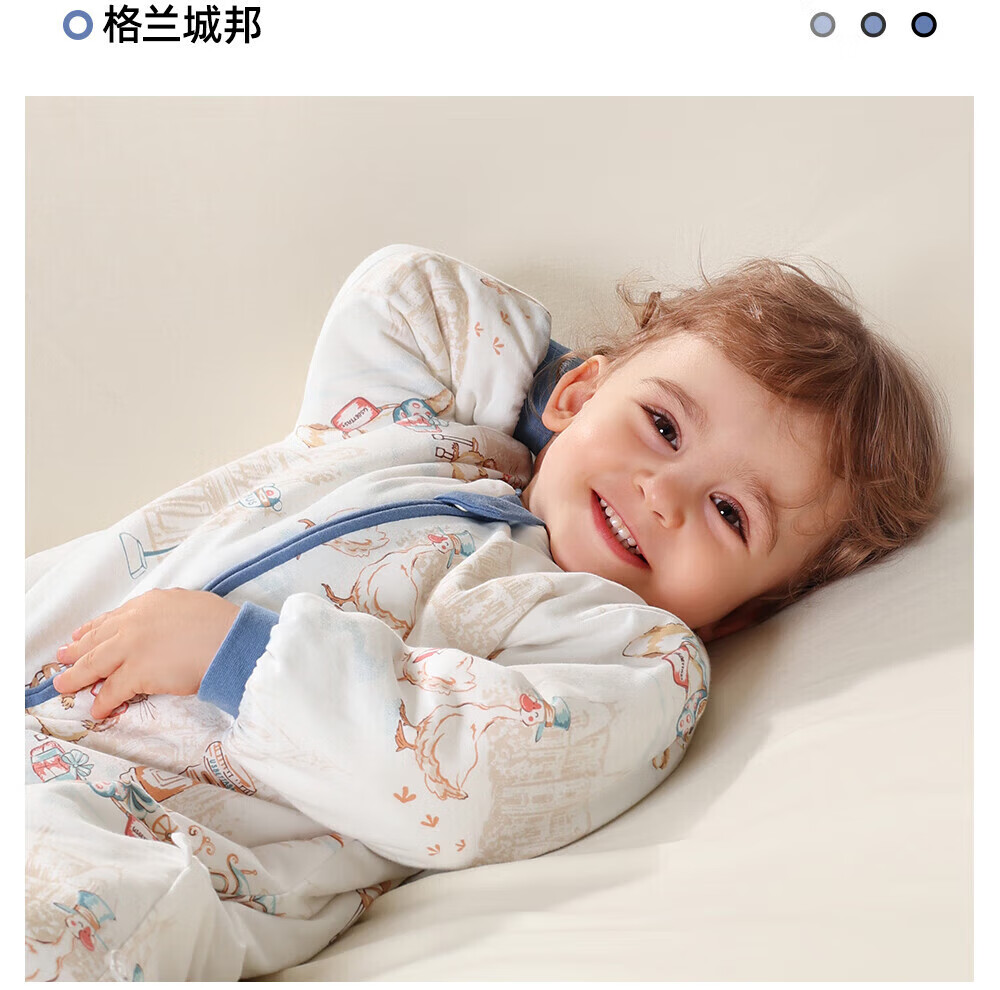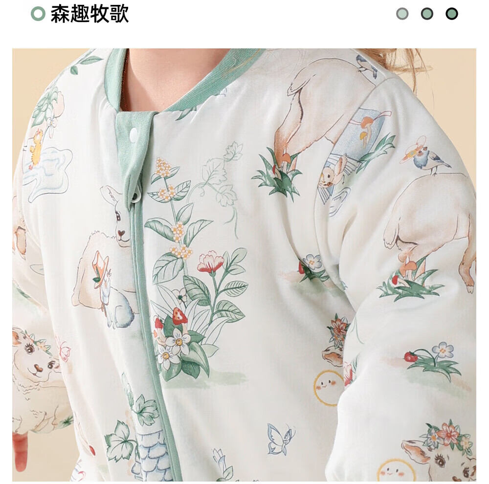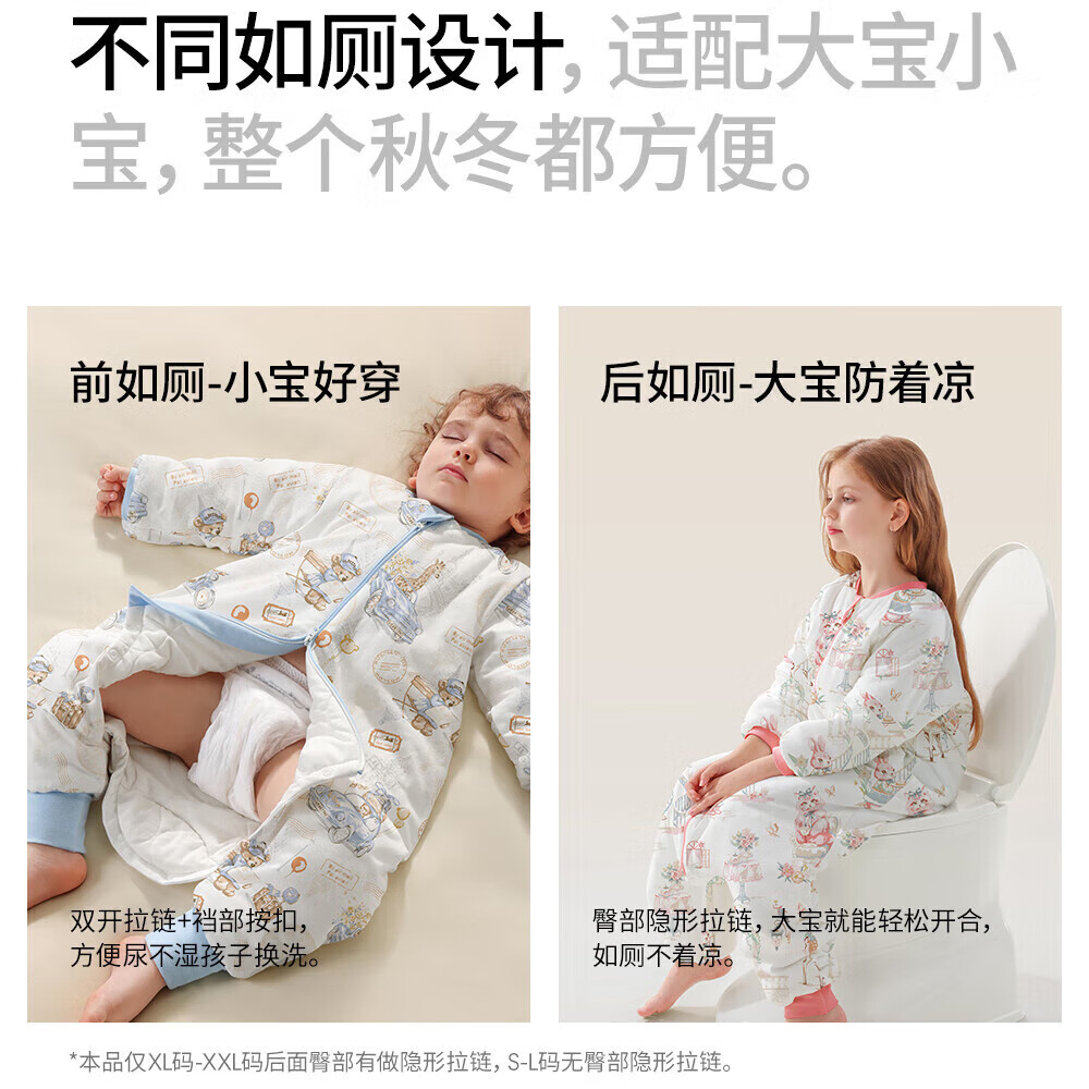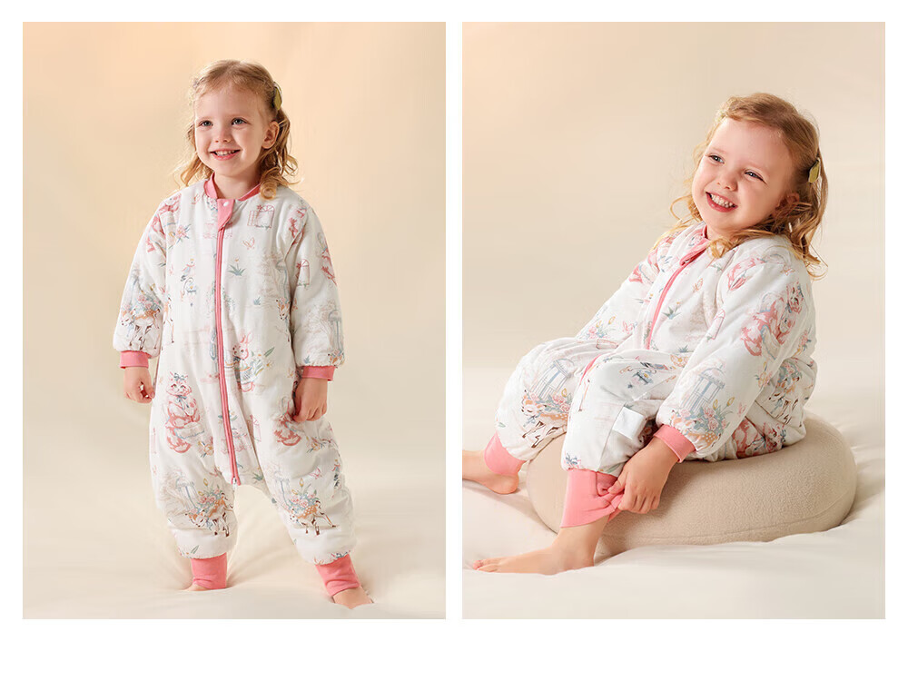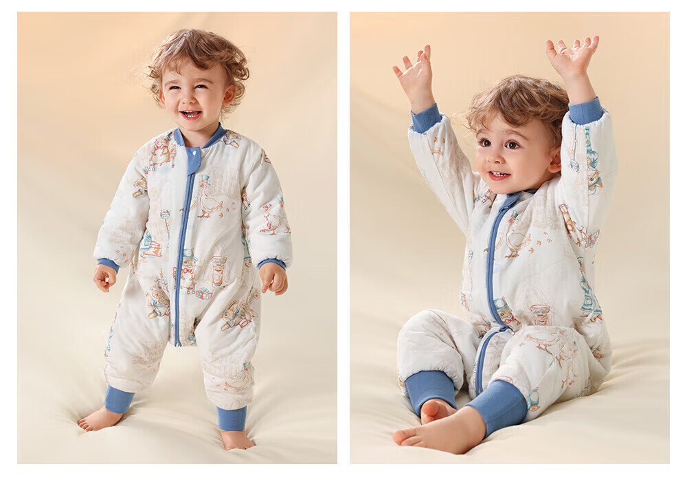 贝肽斯睡袋婴儿春秋季儿童宝宝3-6岁纯棉分腿式防踢被保暖防惊跳连体衣 熊游奇境【冬季加厚 0-15°C】猫肚棉 M码 建议身高80-95cm建议1.5-2.5岁