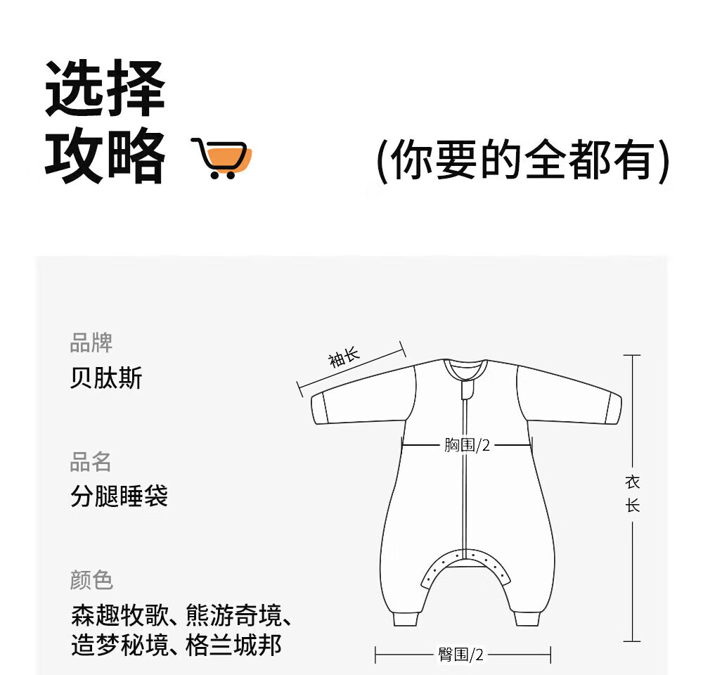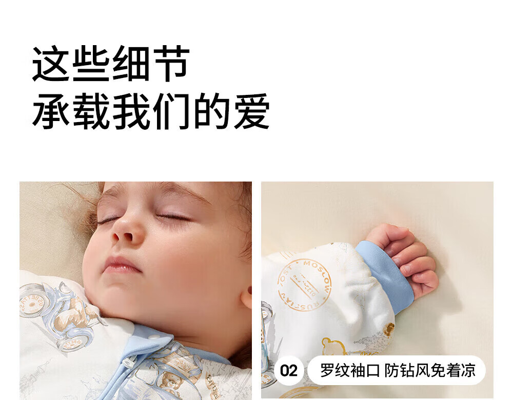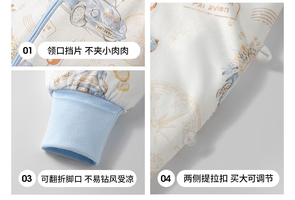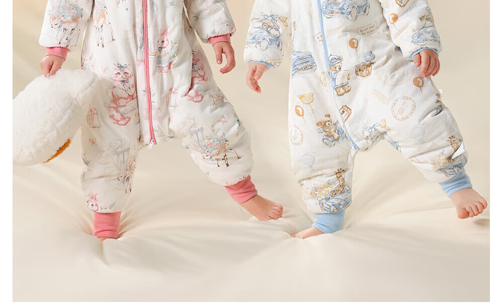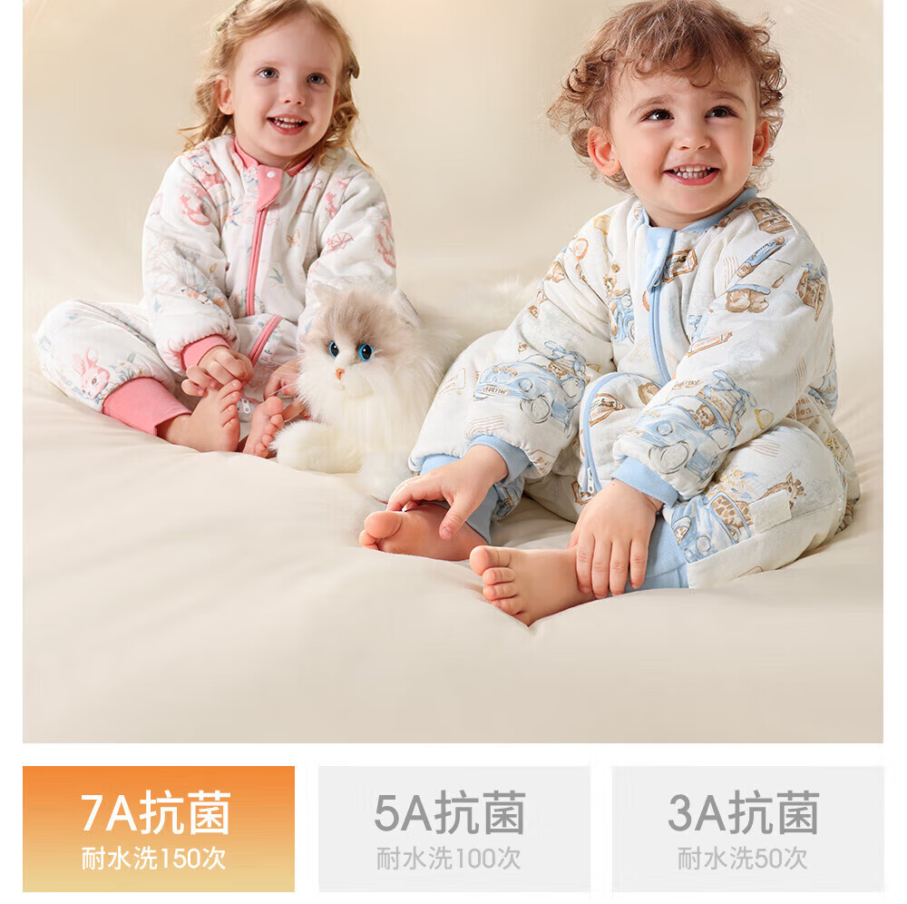 贝肽斯睡袋婴儿春秋季儿童宝宝3-6岁纯棉分腿式防踢被保暖防惊跳连体衣 熊游奇境【冬季加厚 0-15°C】猫肚棉 M码 建议身高80-95cm建议1.5-2.5岁