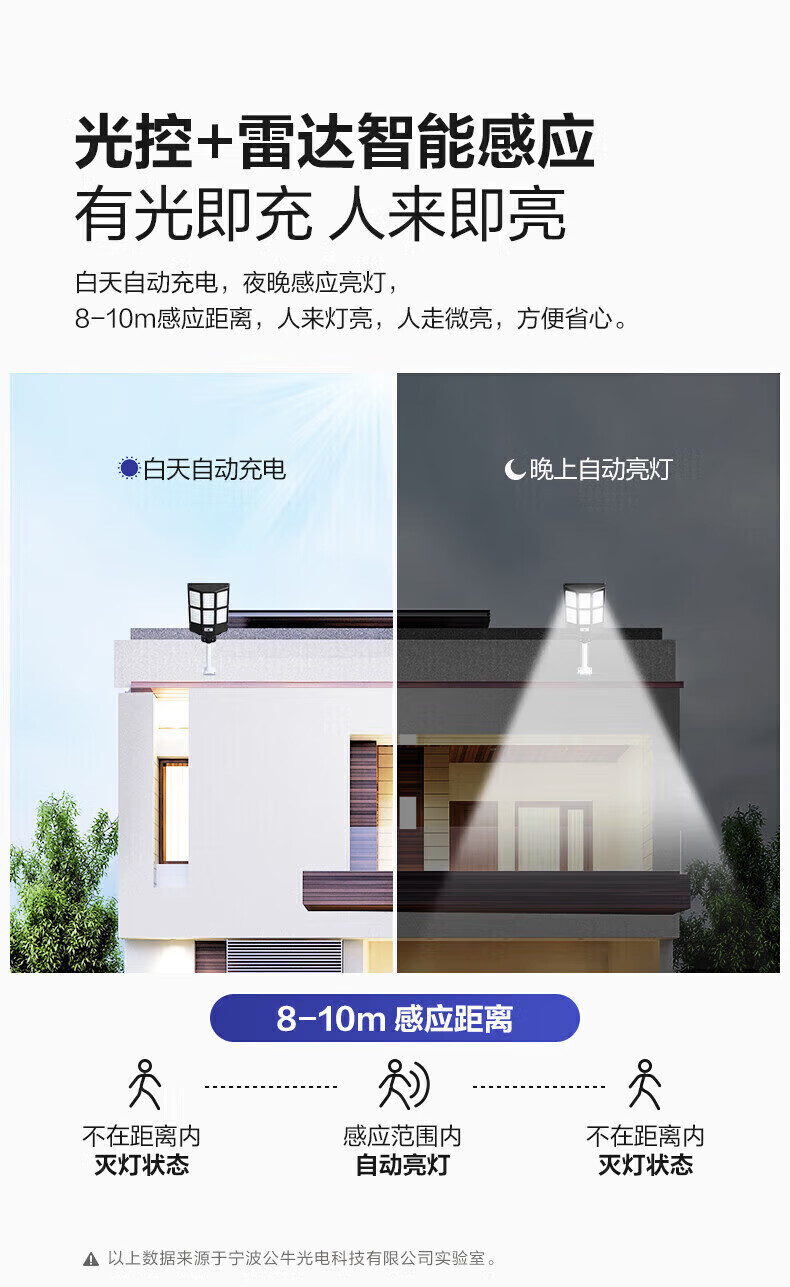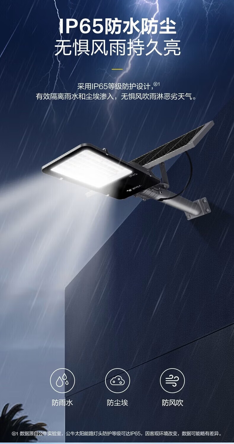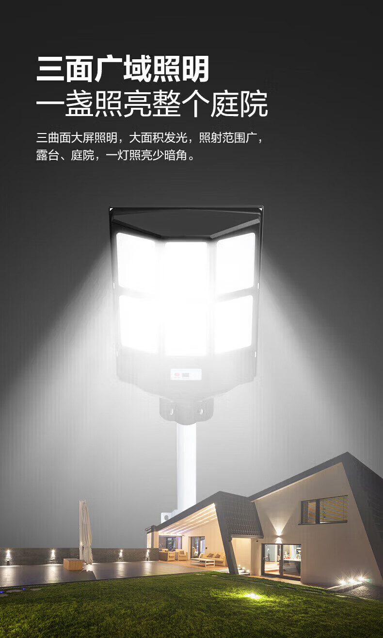 公牛2026新款太阳能户外庭院灯农村家用防水室内LED照明人体感应路灯 标亮500W型+光感+遥控+照约150平