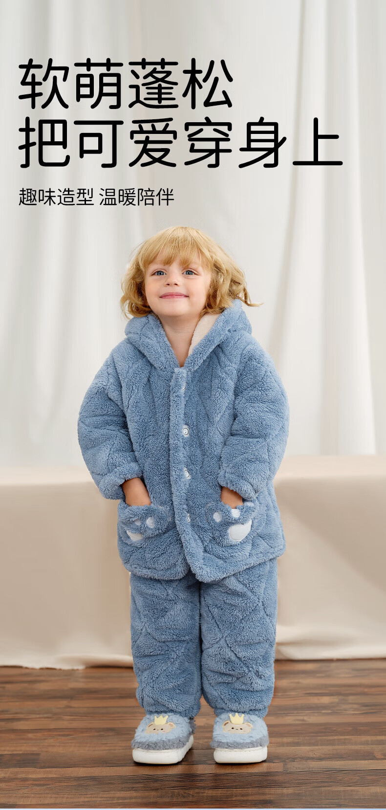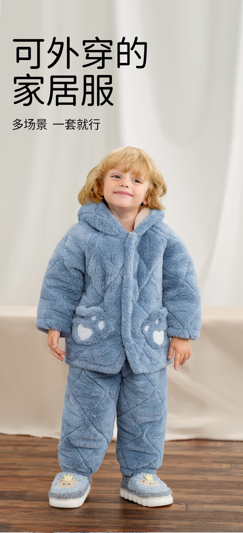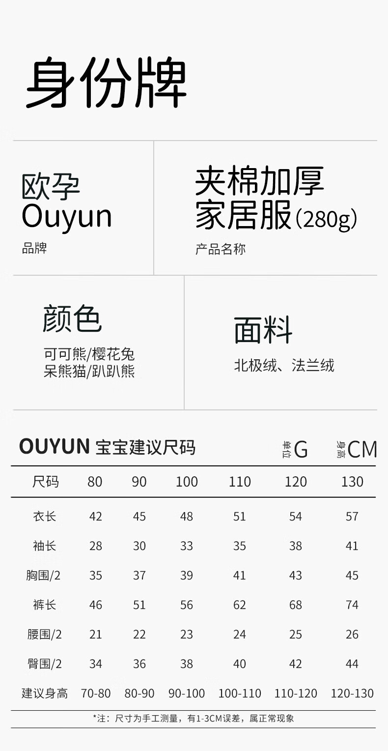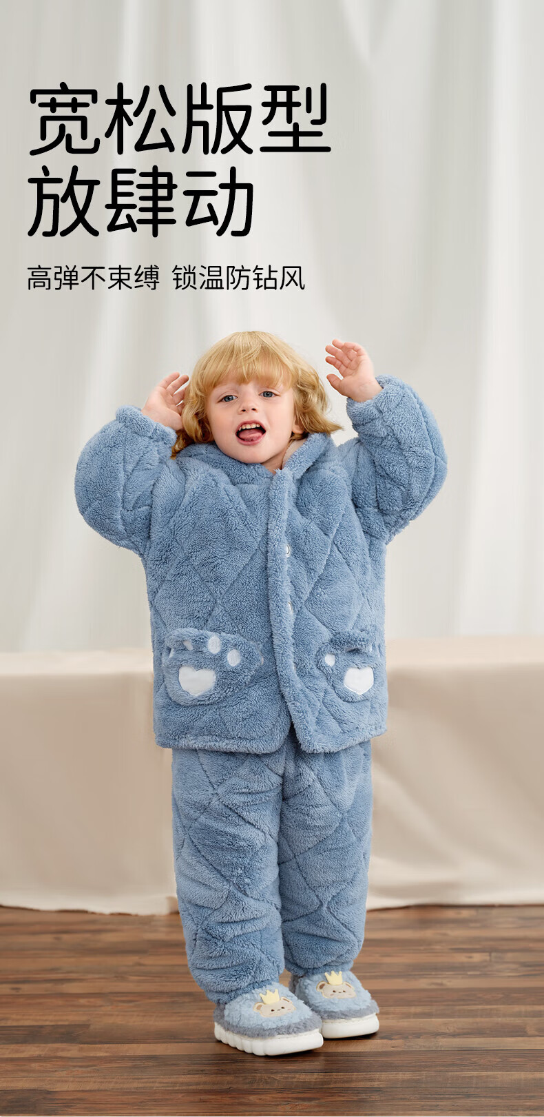 欧孕(OUYUN)儿童家居服宝宝睡衣新款秋冬季男女童法兰绒加厚外出套装 呆熊猫 升级三层绒 防风锁暖 100cm 抗静电 舒适耐穿