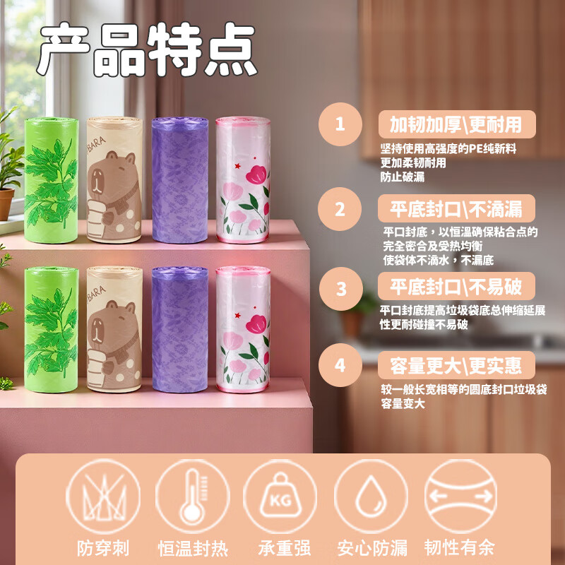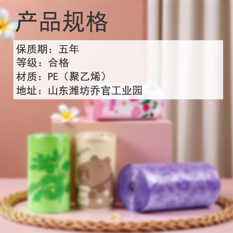 祥盈升超大加厚自动收口家用厨房卫生间拉绳式垃圾袋45*50cm 随机色300只