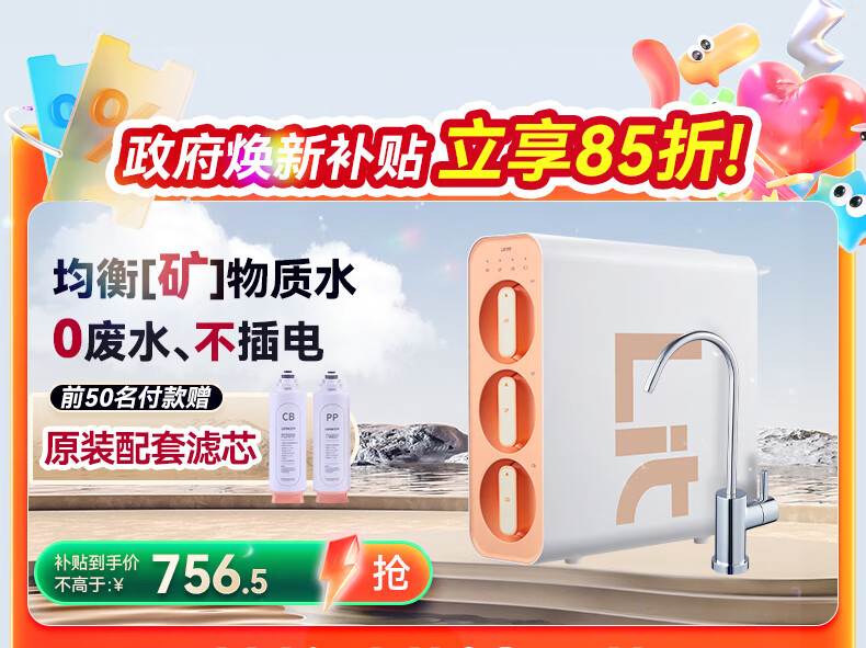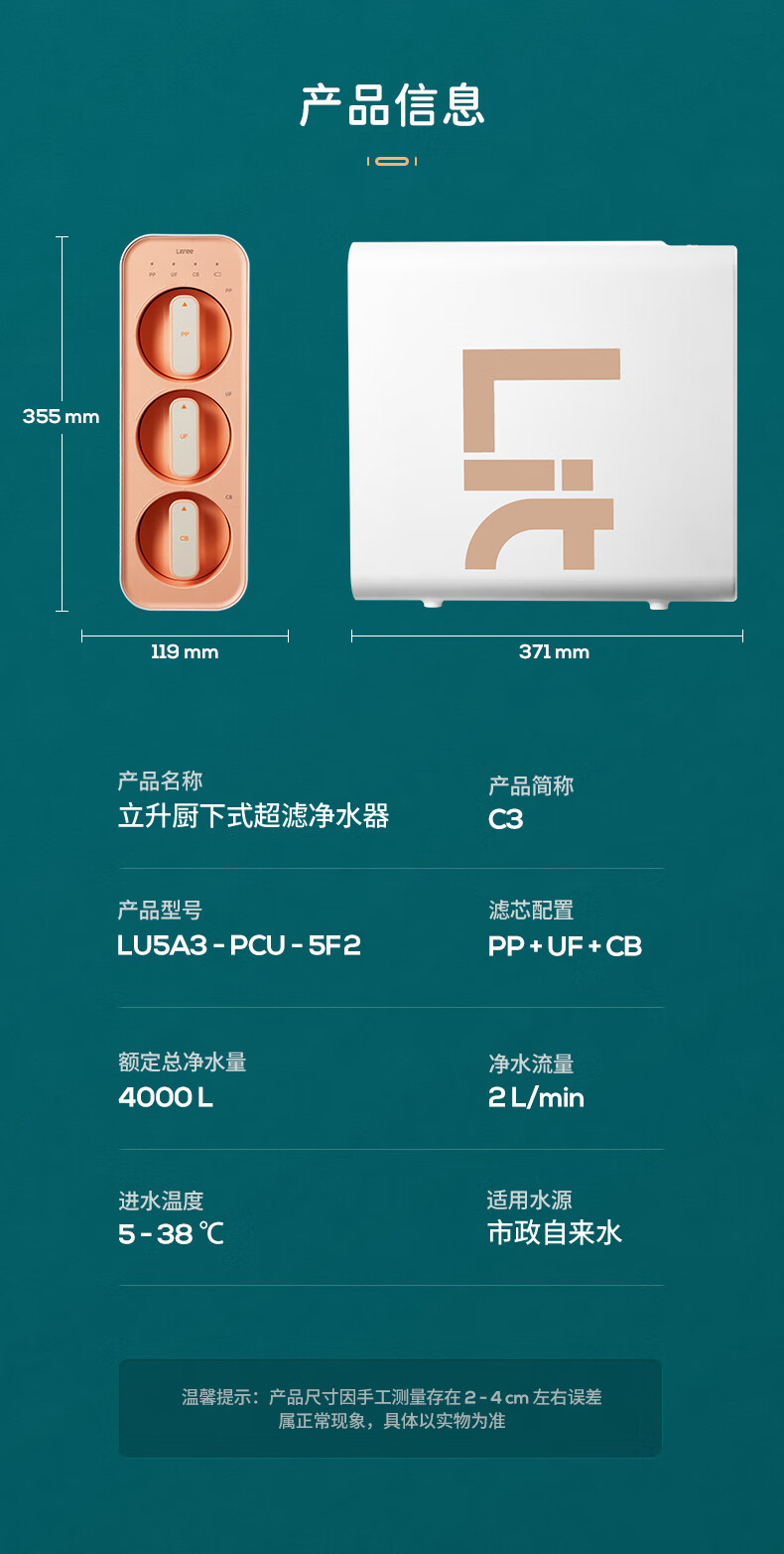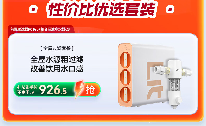 立升(LITREE)净水器家用直饮无废水不插电自来水超滤过滤器前置无桶饮水机矿物质复合净饮机 出水直饮|超滤机C3