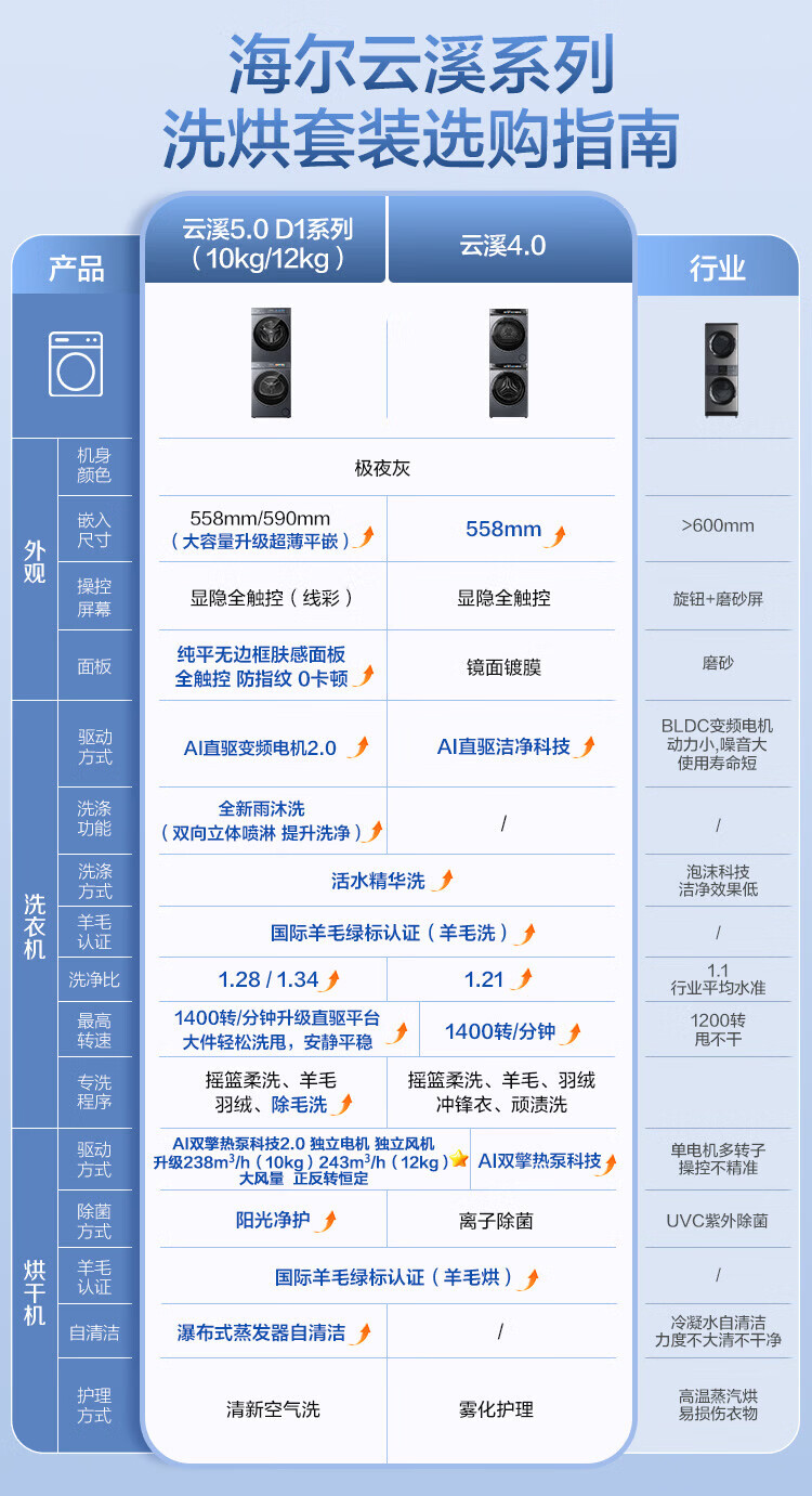 海尔(Haier)云溪5.0滚筒洗烘套装10/12公斤全自动滚筒洗衣机+双擎热泵烘干机A直驱双效除菌 10公斤洗烘套装【双擎热泵烘干+AI直驱】