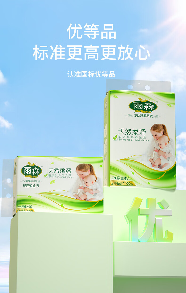 雨森妇婴悬挂式抽纸1400张面巾纸餐巾纸大包下拉抽纸厕纸卫生纸 5层 280抽*6提