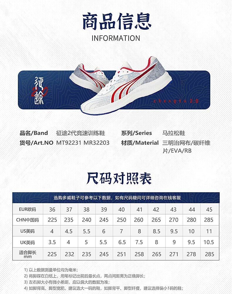 多威征途2男女跑步鞋中考体测专用鞋碳板运动鞋体育生田径训练跑鞋 白/黑 MR32203C 42
