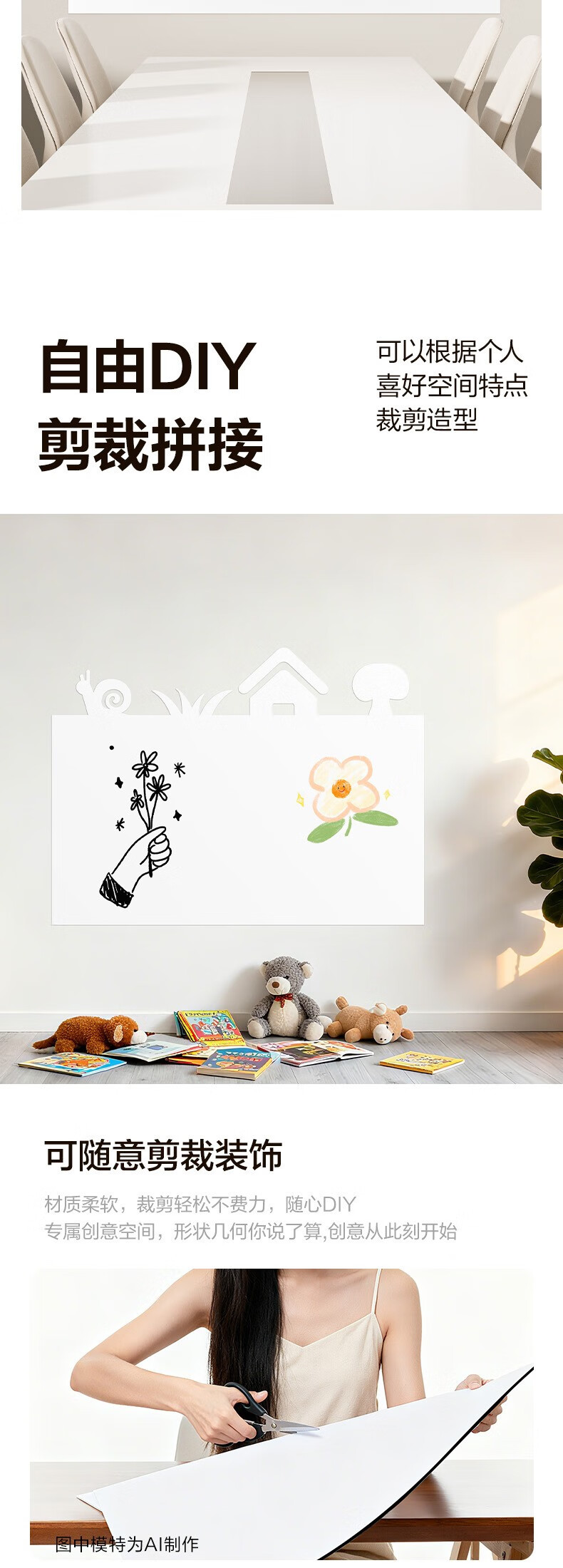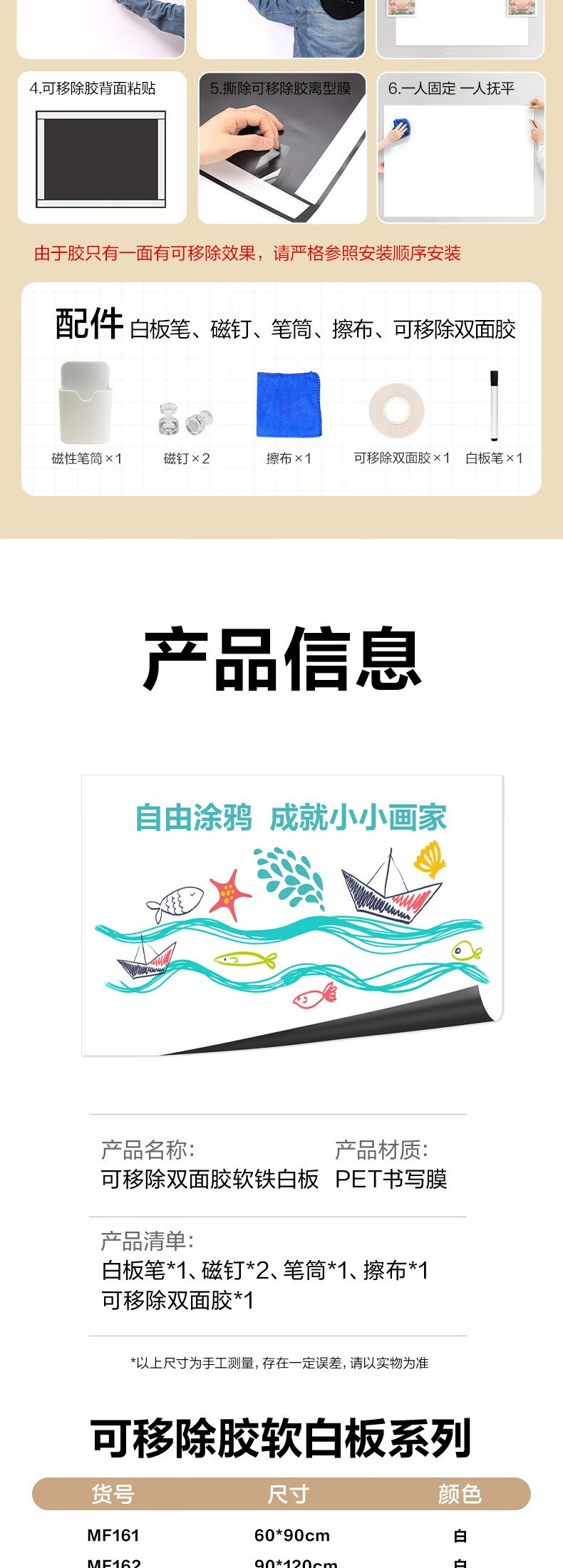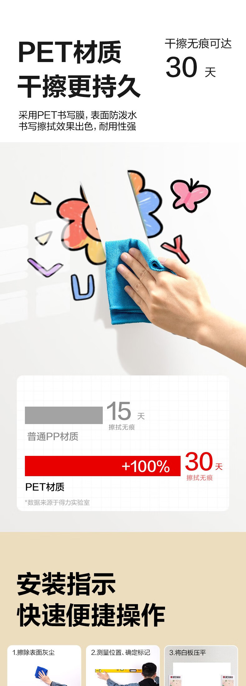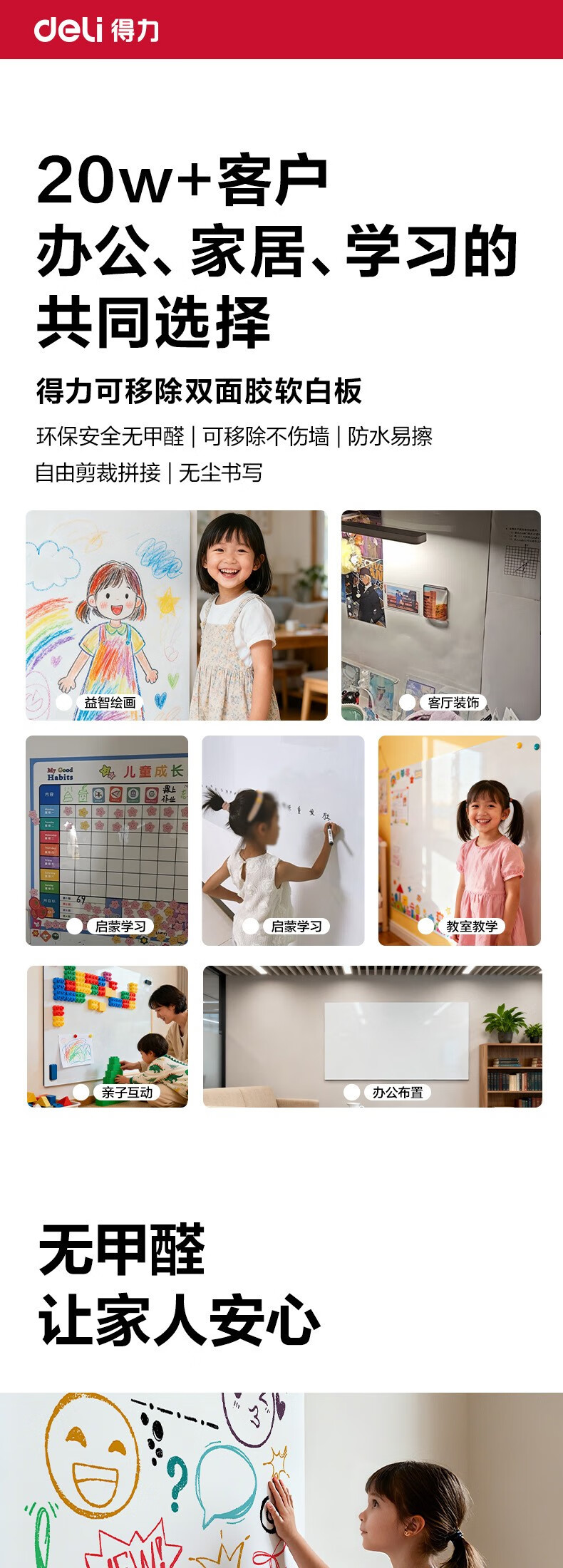 得力120*90cm软白板墙贴不伤墙可移除磁性办公会议教学家用小写字板挂式磁力黑板家用可擦儿童涂鸦墙纸