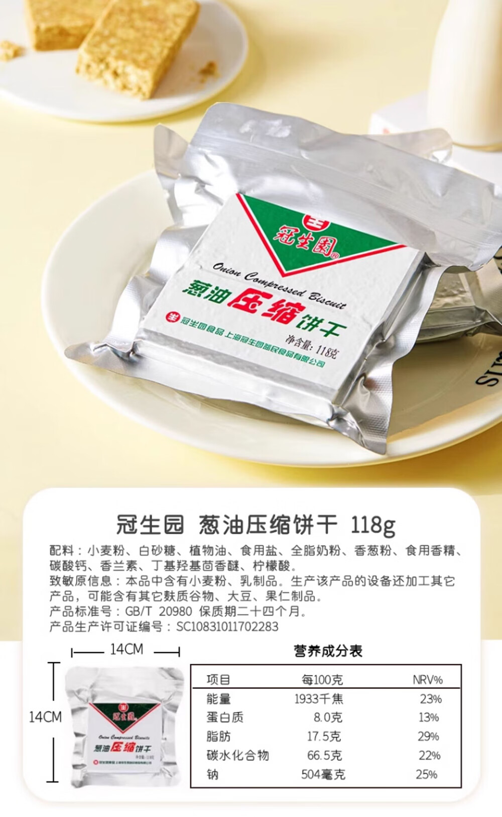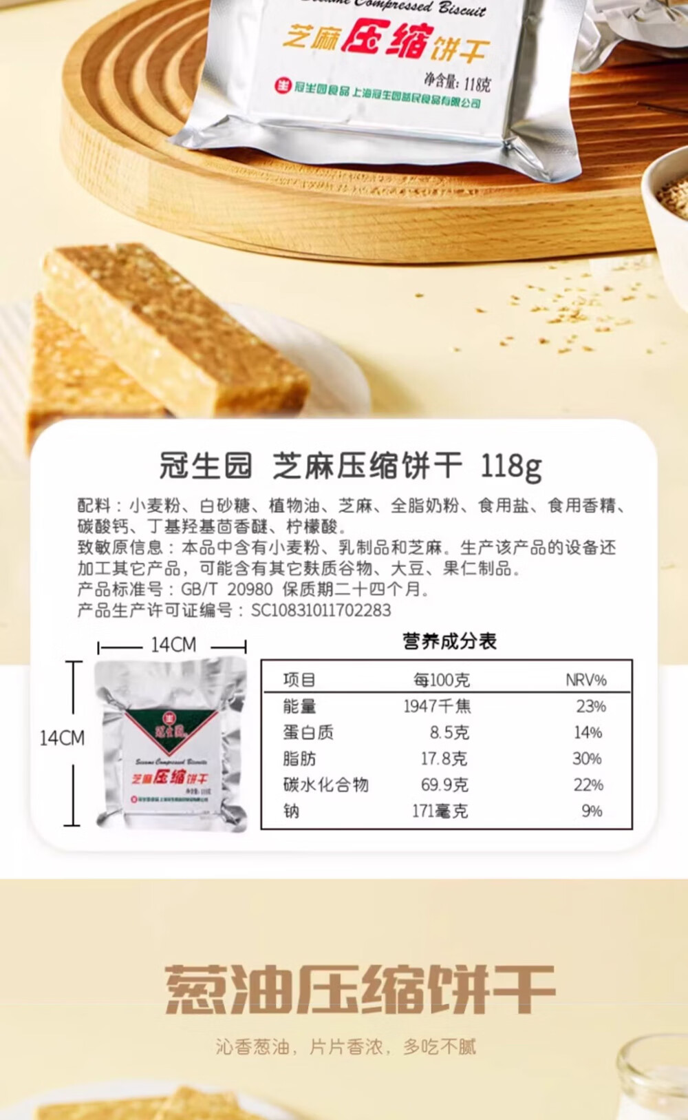 冠生园 葱油味压缩饼干118g 节日户外营养饱腹干粮徒步露营应急即食品