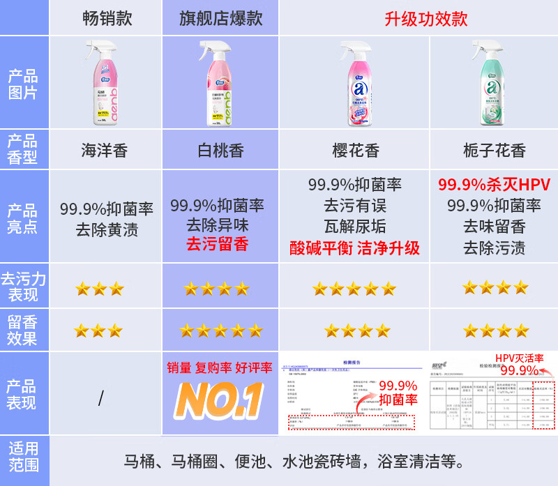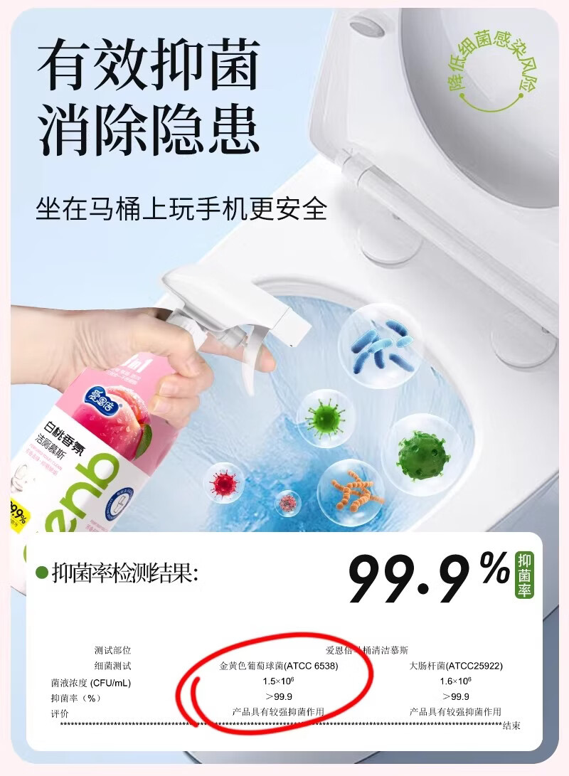 爱恩倍马桶泡泡慕斯清洁剂香氛抑菌卫生间厕所除垢去黄渍洁厕灵 【白桃味】 500g 2瓶 +1个喷头