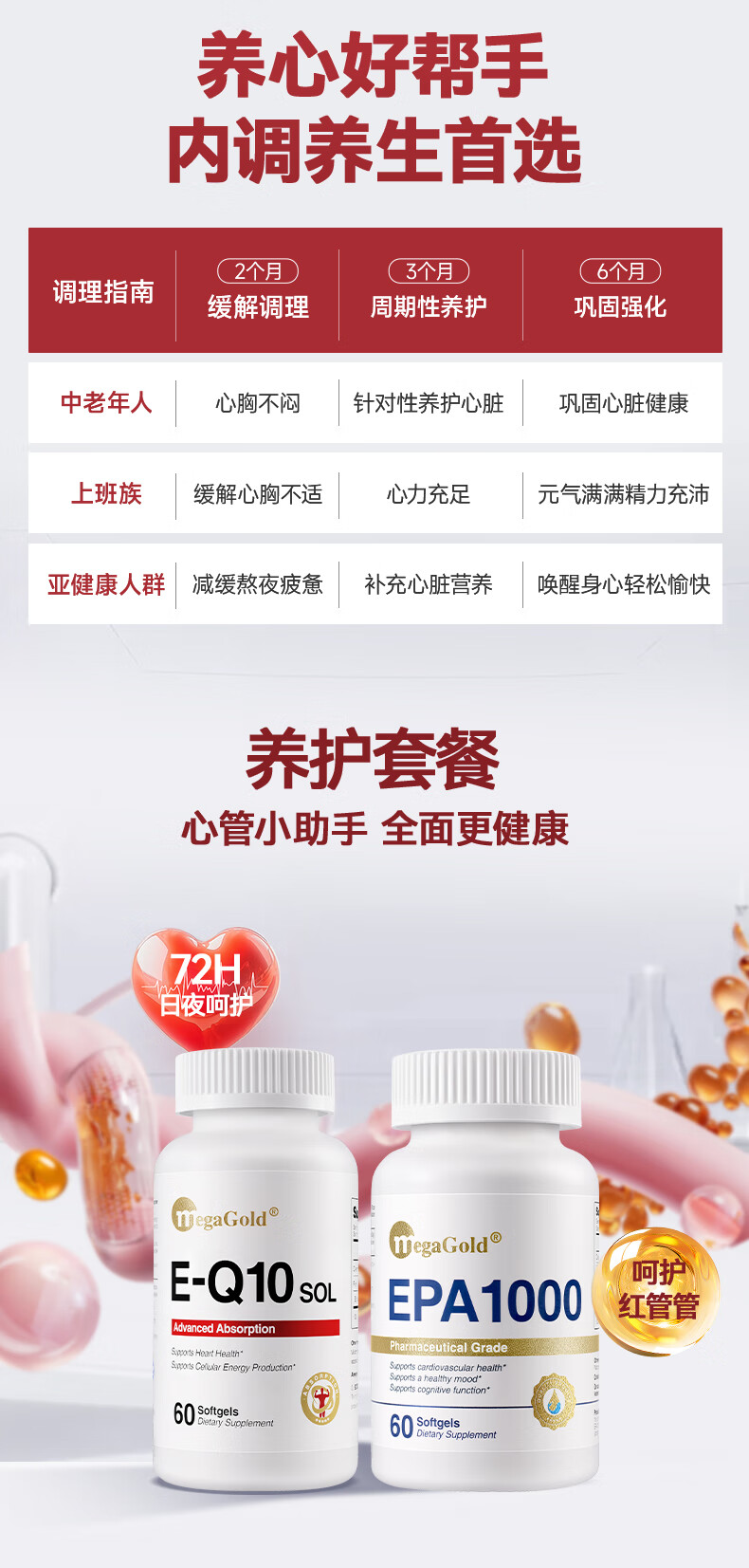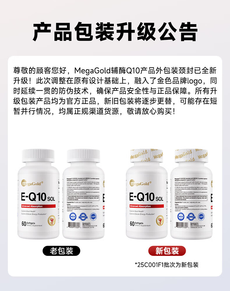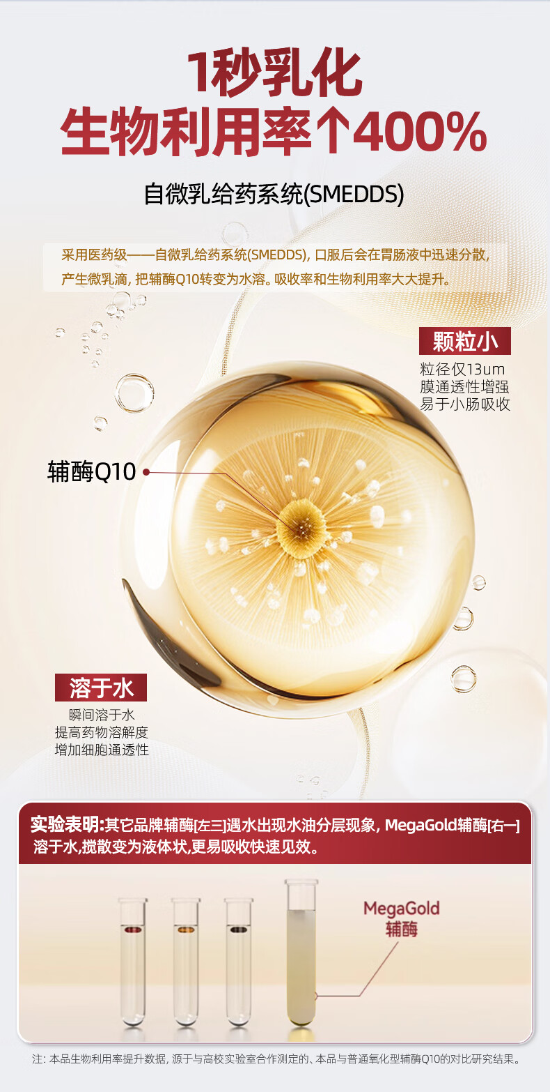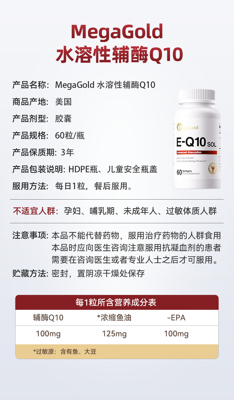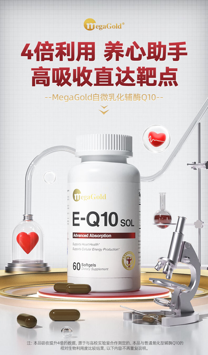 MegaGold美嘉高辅酶Q10水溶性软胶囊 复配高纯EPA成人呵护心肌降血脂60粒