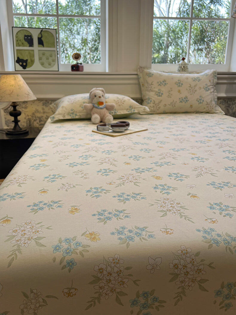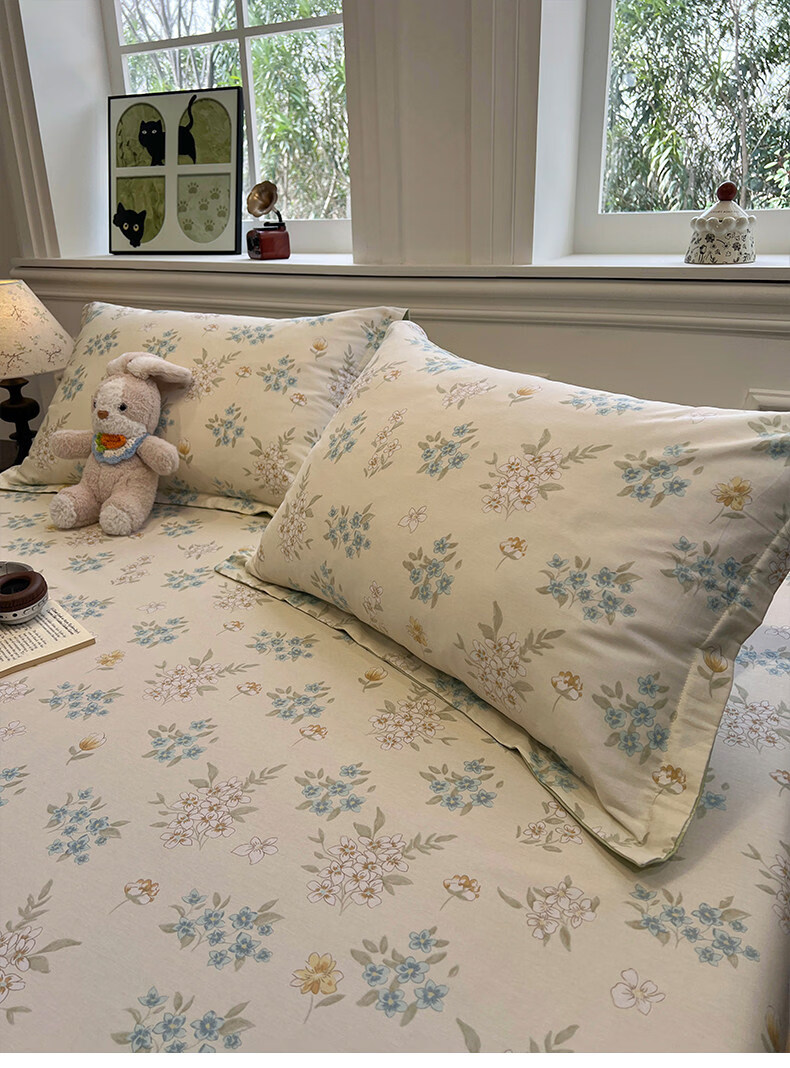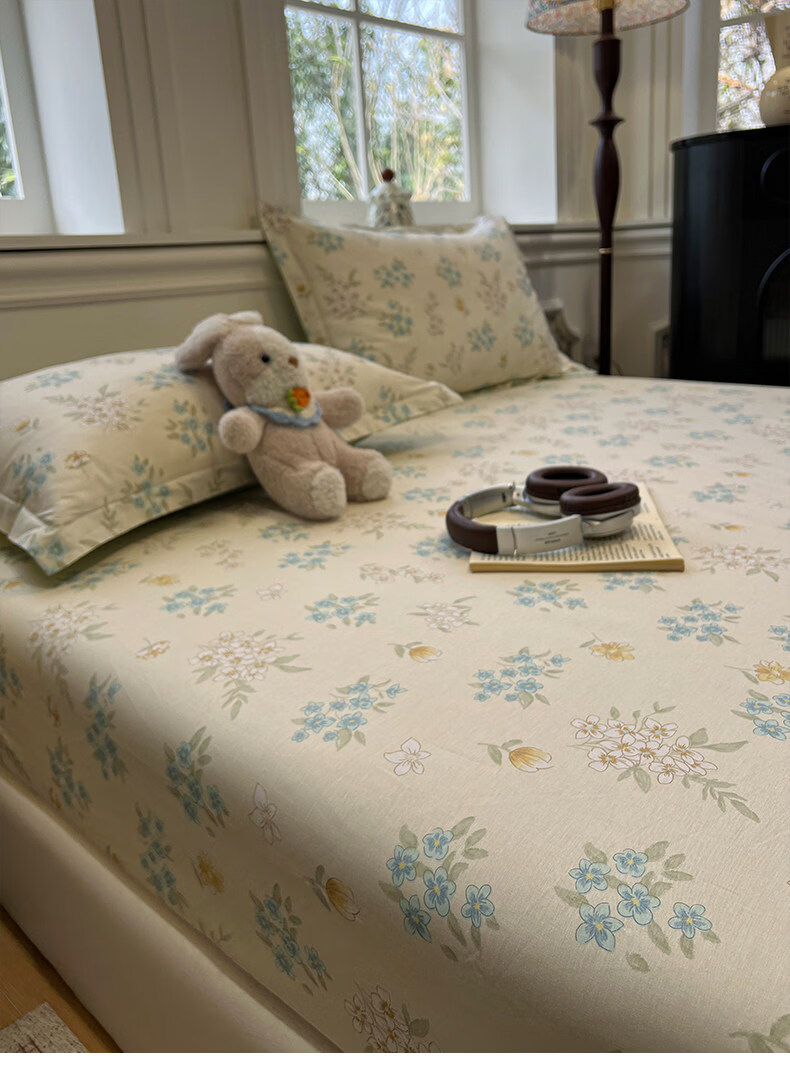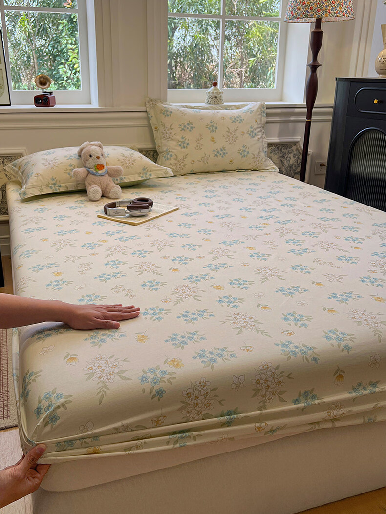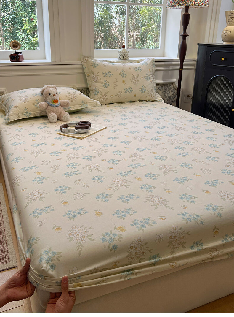 苏萱清新碎花纯棉床笠单件100全棉宿舍防滑床罩席梦思床垫保护罩床套3 欢乐碰碰熊 200x220cm床笠+枕套一对