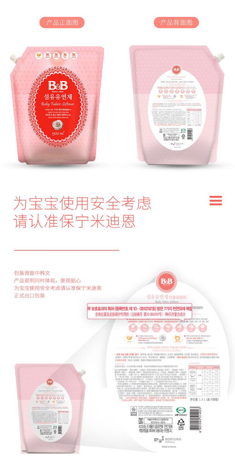 保宁(B&B)婴幼儿宝宝专用衣物护理柔顺剂去除静电植物留香【2.6斤袋装】