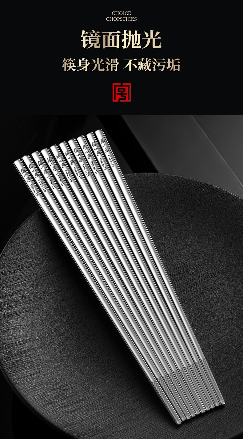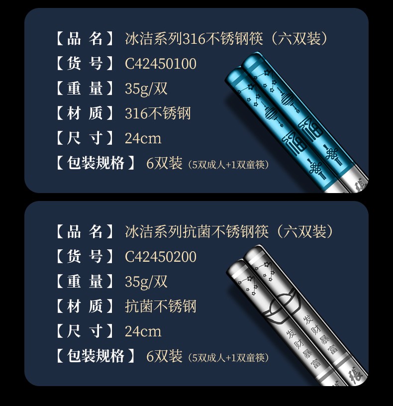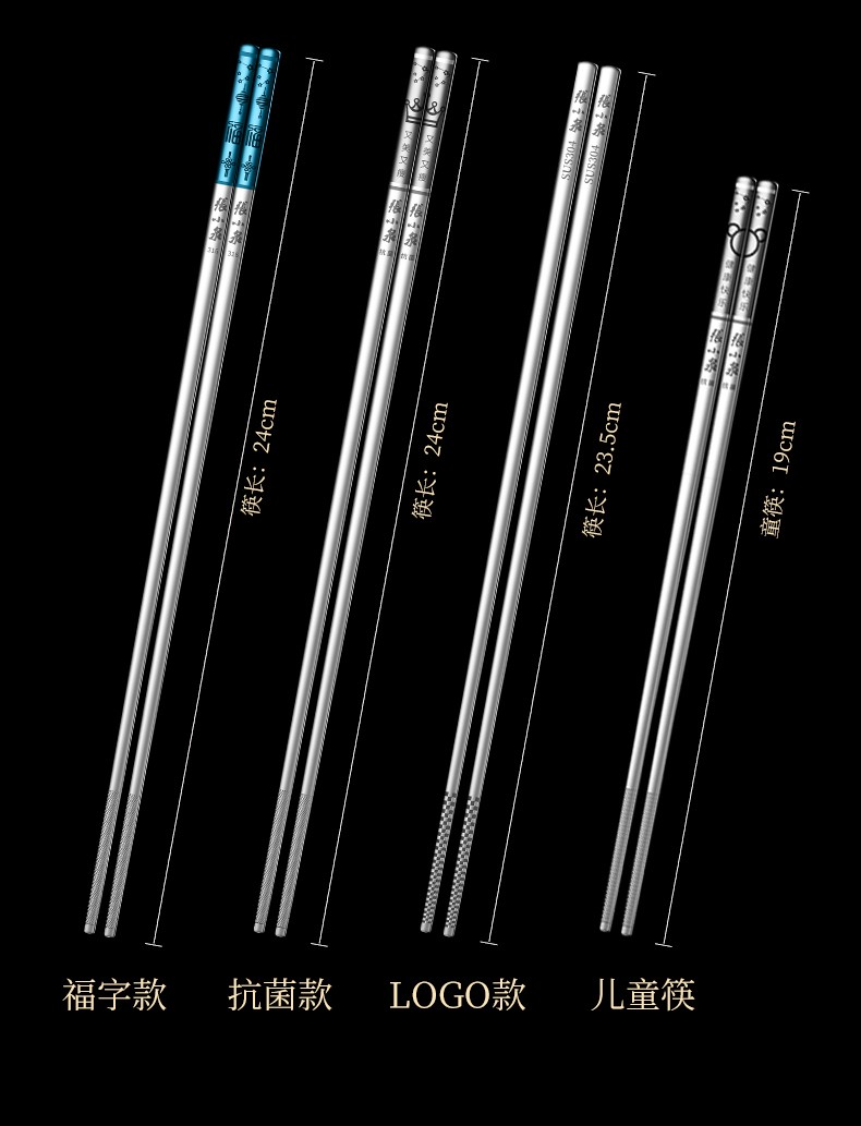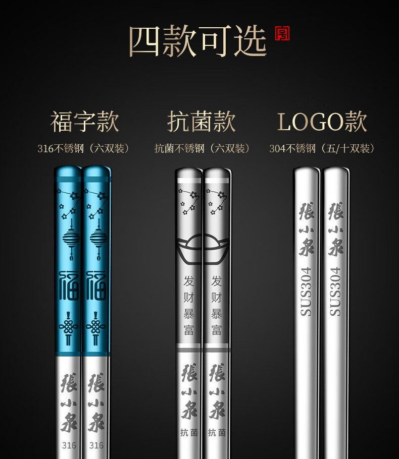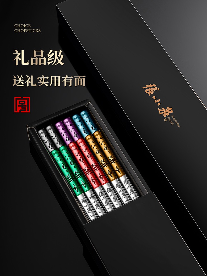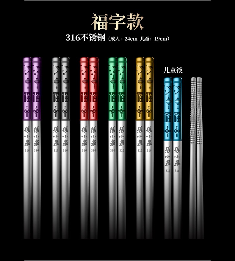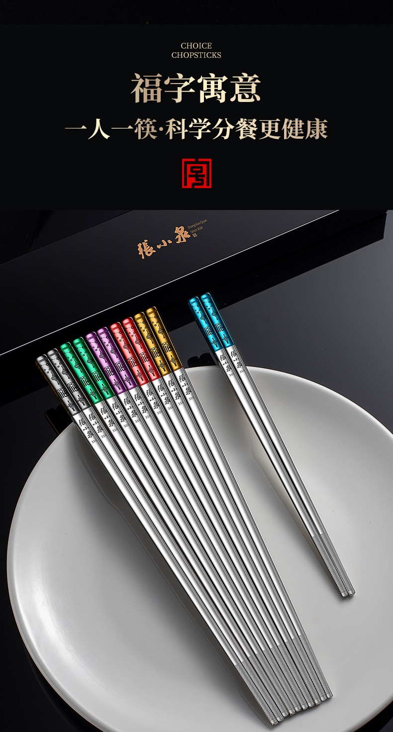 张小泉冰洁系列食品级不锈钢防滑筷子家用分食筷316\/304不锈钢 6双 316福字款装C42450100