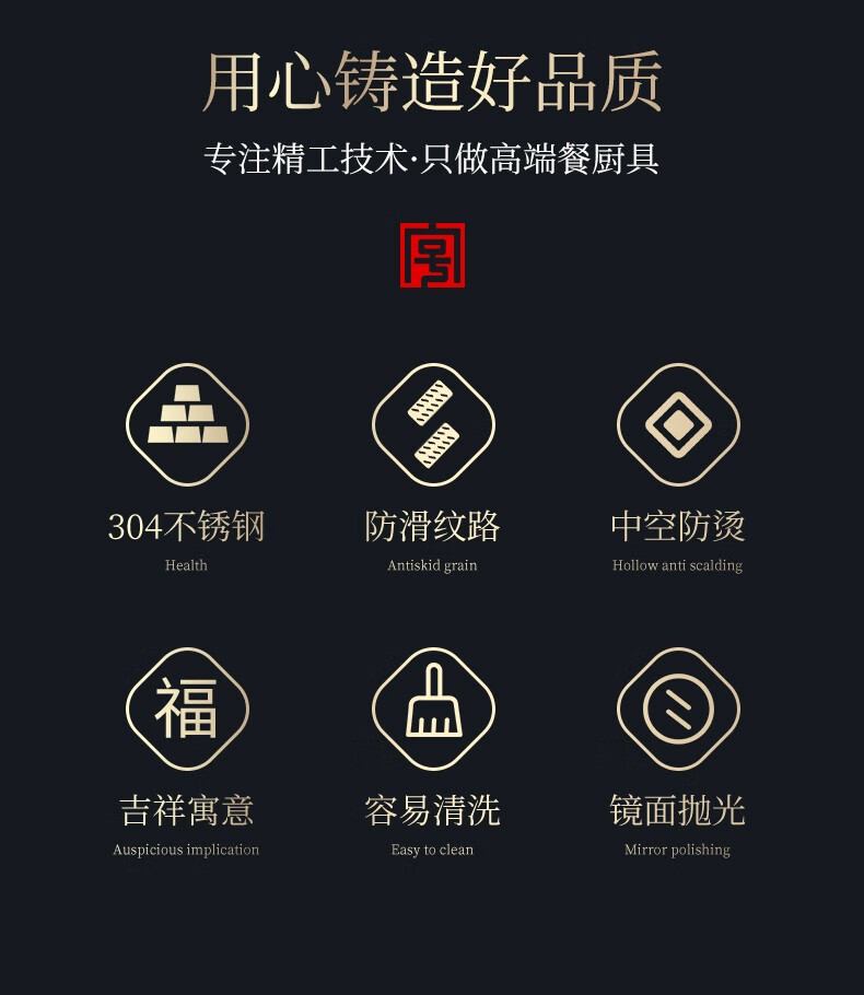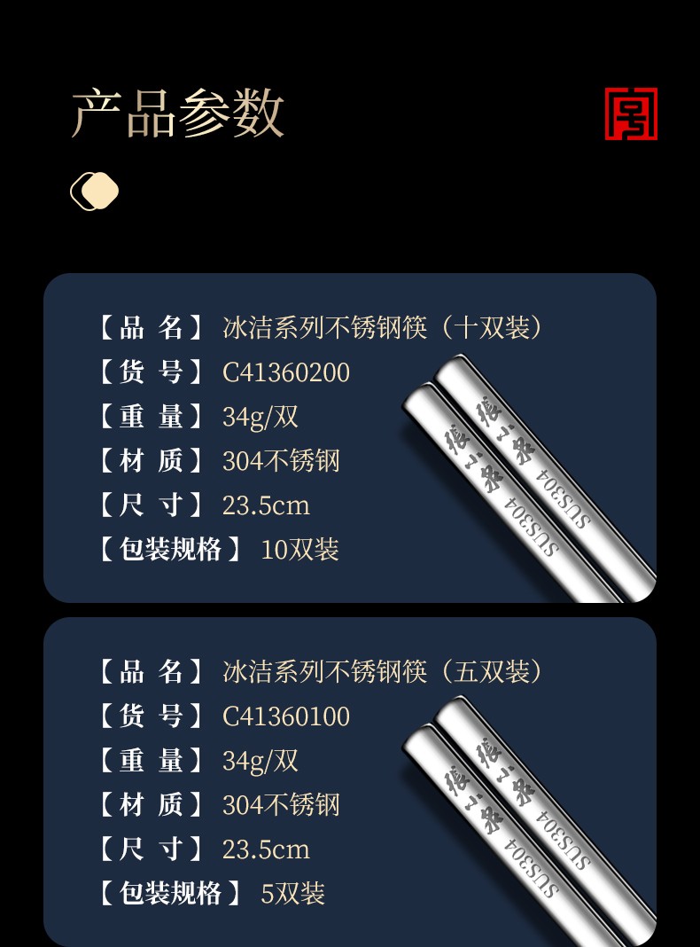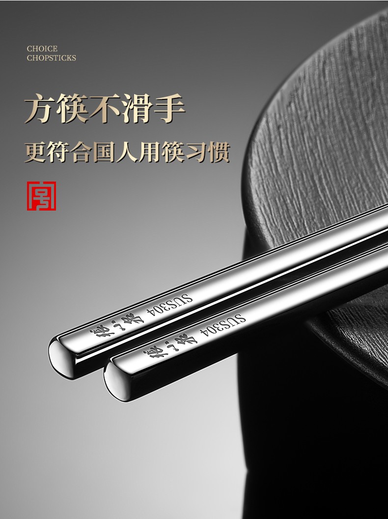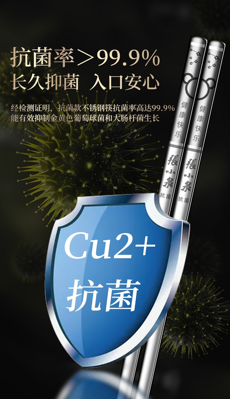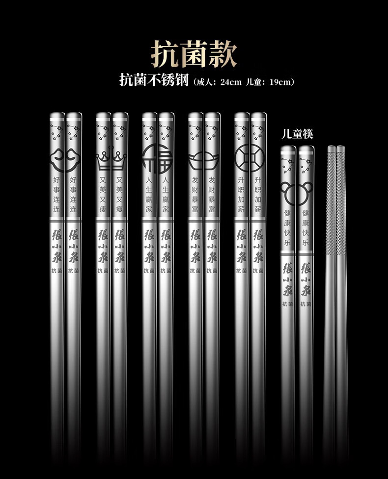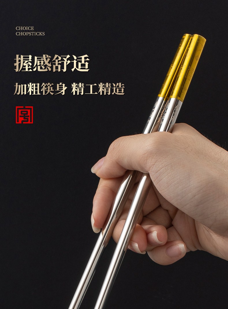 张小泉冰洁系列食品级不锈钢防滑筷子家用分食筷316\/304不锈钢 6双 316福字款装C42450100