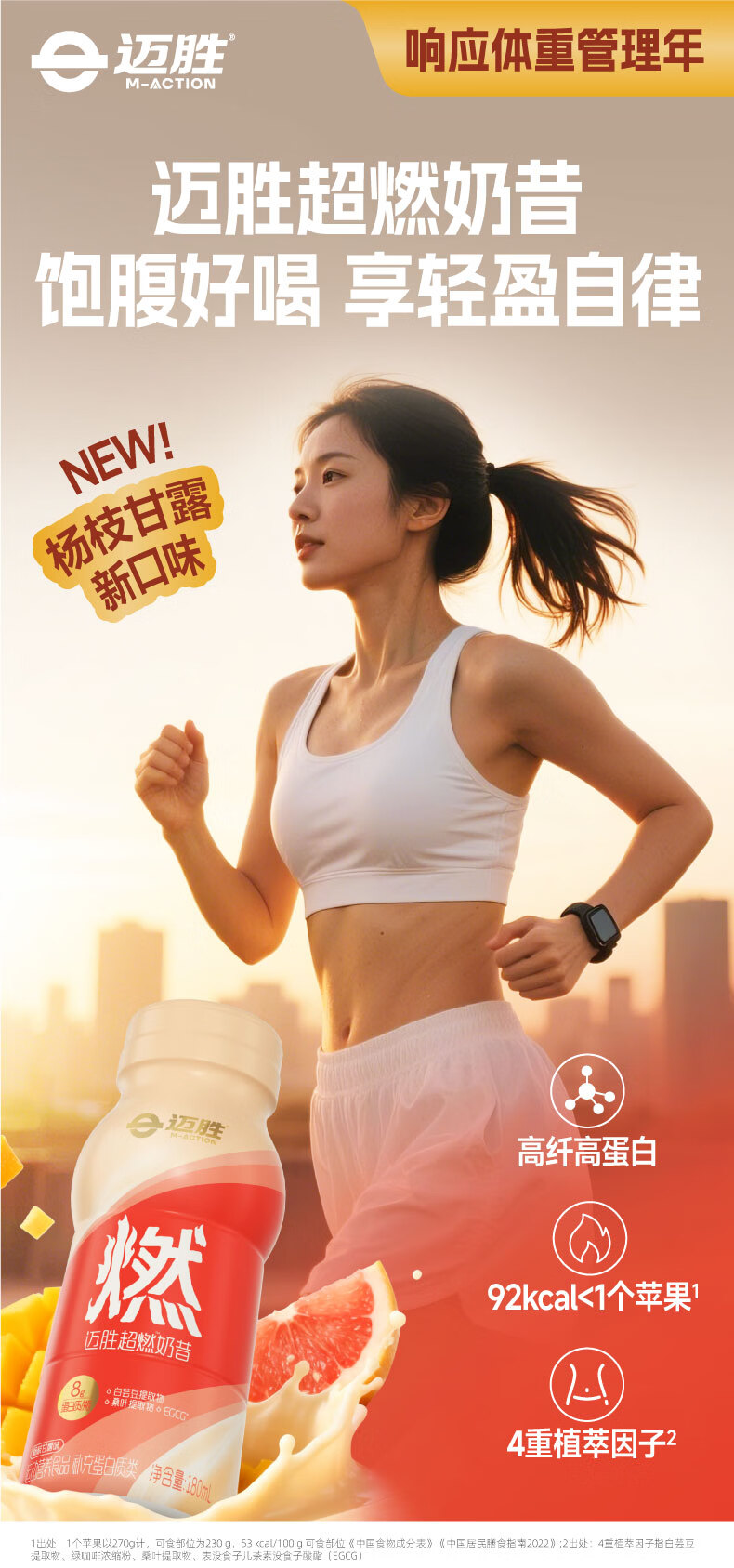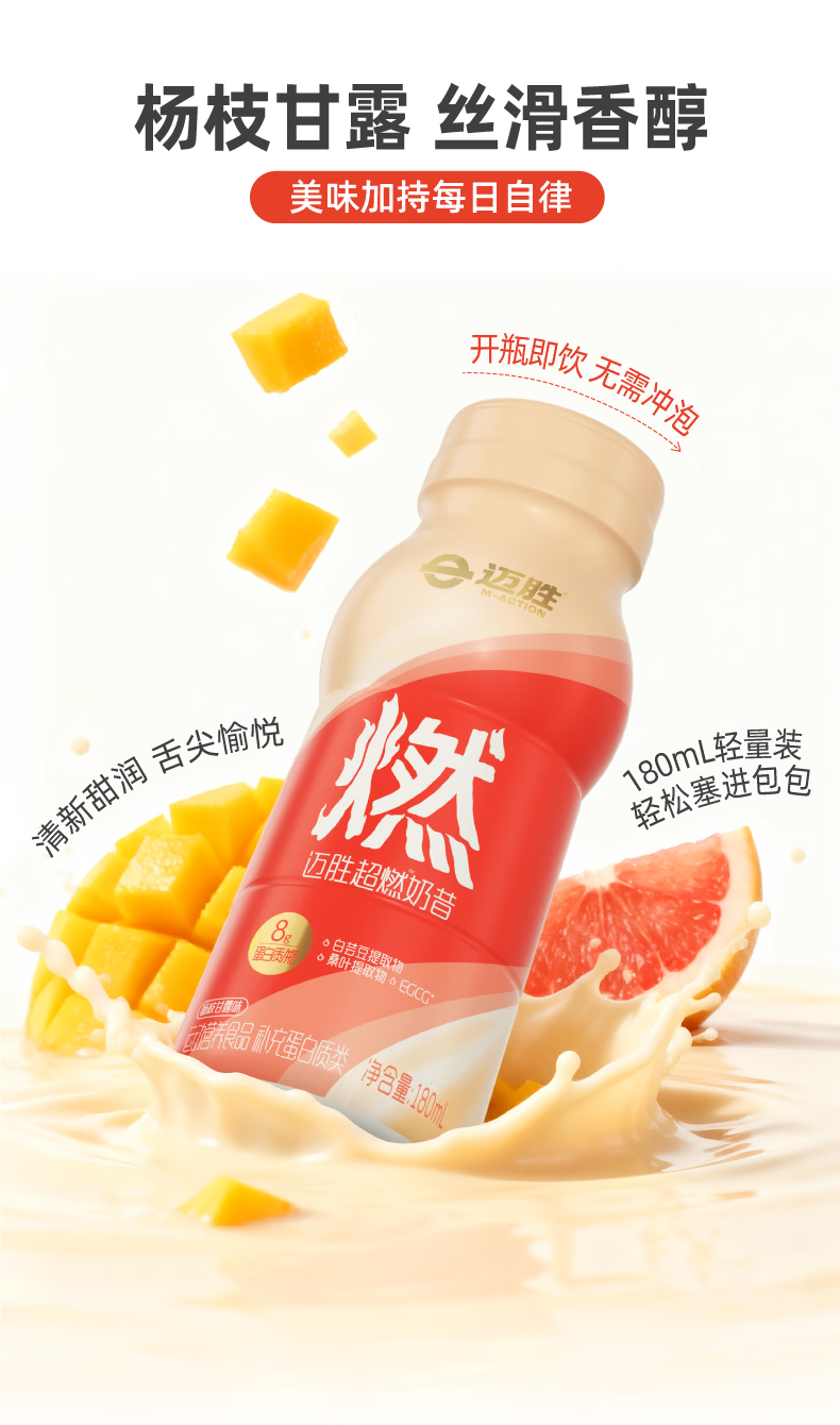 迈胜超燃奶昔蛋白饮杨枝甘露代餐饱腹低卡运动健身控卡高纤高蛋白质 超燃奶昔杨枝甘露味 15瓶*3箱